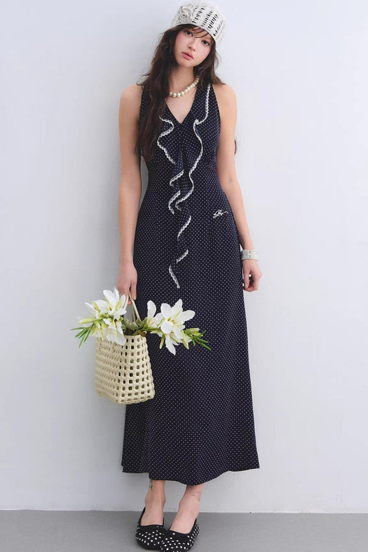 Navy Ruffled Lace Dress