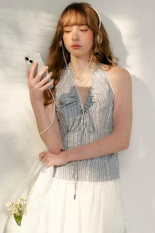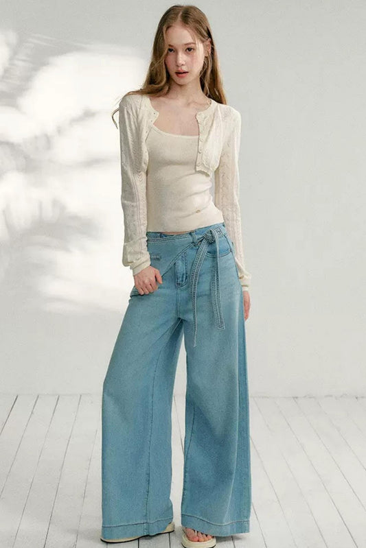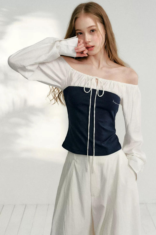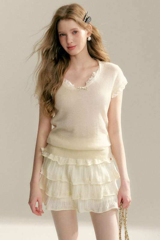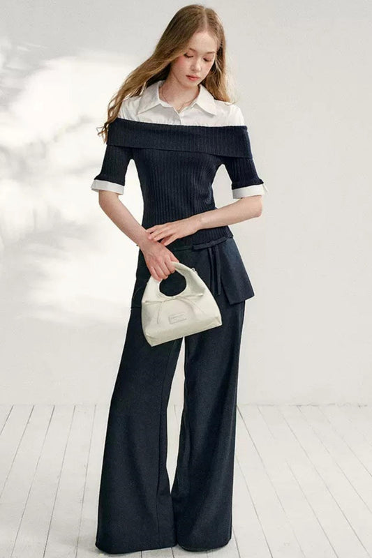Lace-Up Off-Shoulder Knitted Sweater Set-Up