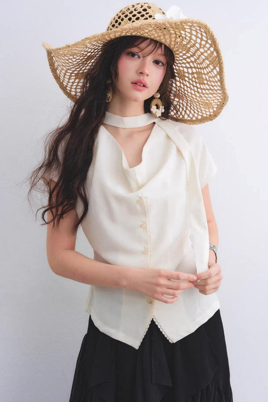 Linen Ribbon Lace Top