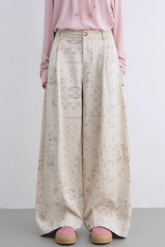 Lyocell Paisley Wide-Leg Pants