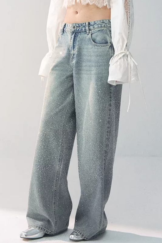 High-Waisted Rhinestone Wide-Leg Jeans