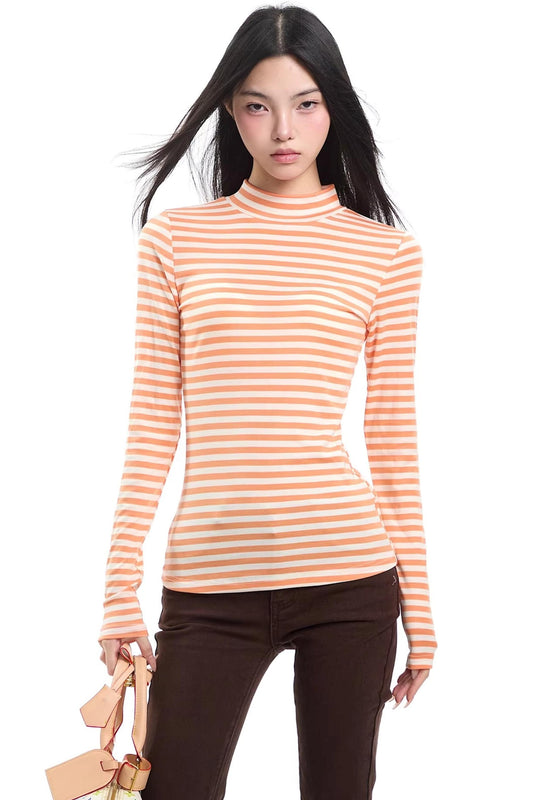 Preppy Puff Sleeve Striped Skirt Set-Up