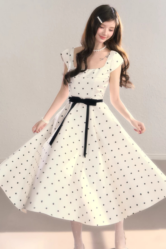 French Polka Dot A-Line Dress