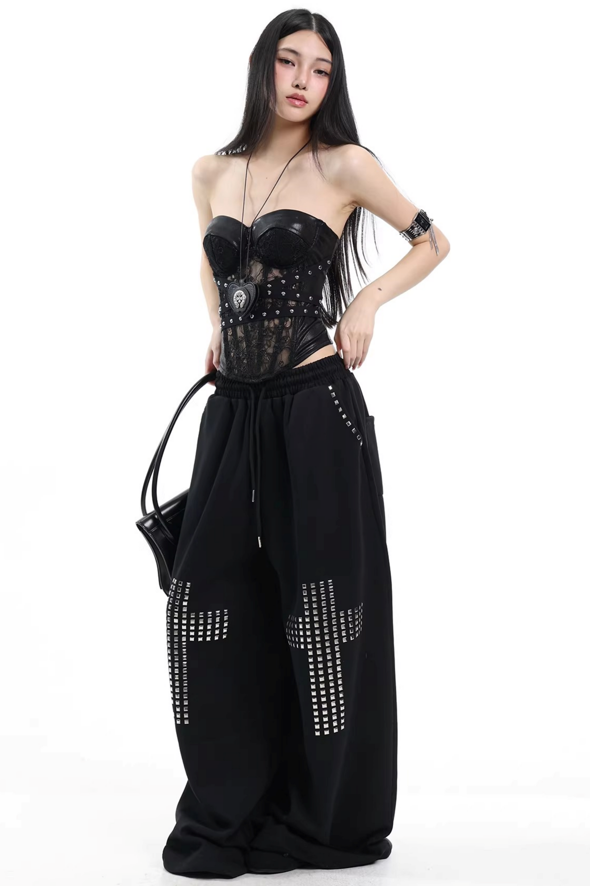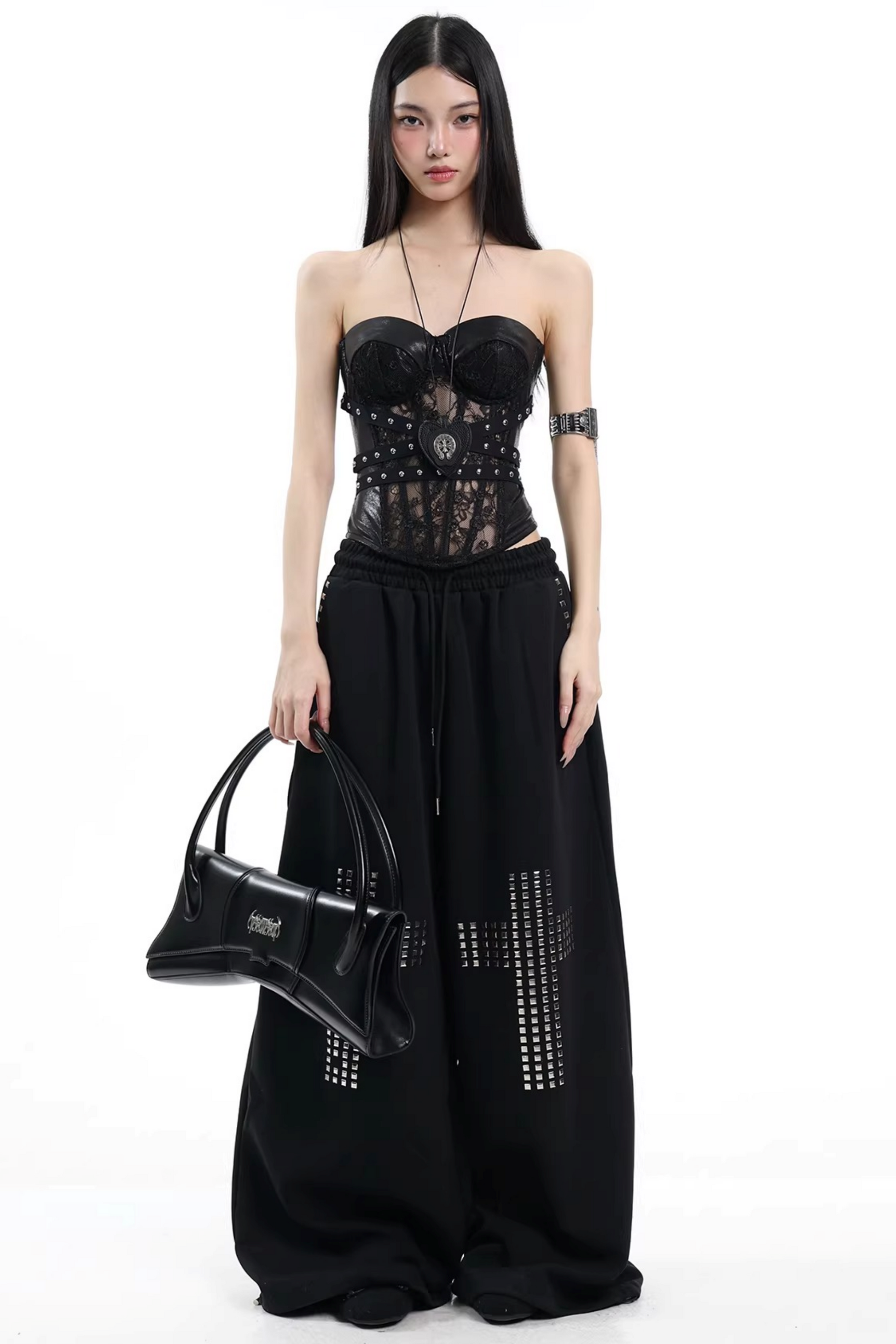 Schwarze Weste mit Spitze und Nieten