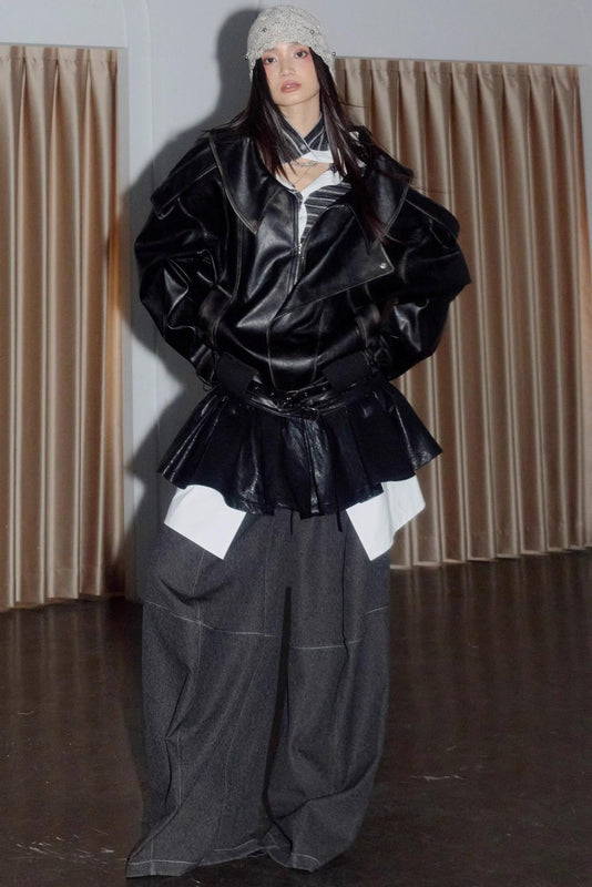 Dark Rock Distressed Leather Jacket