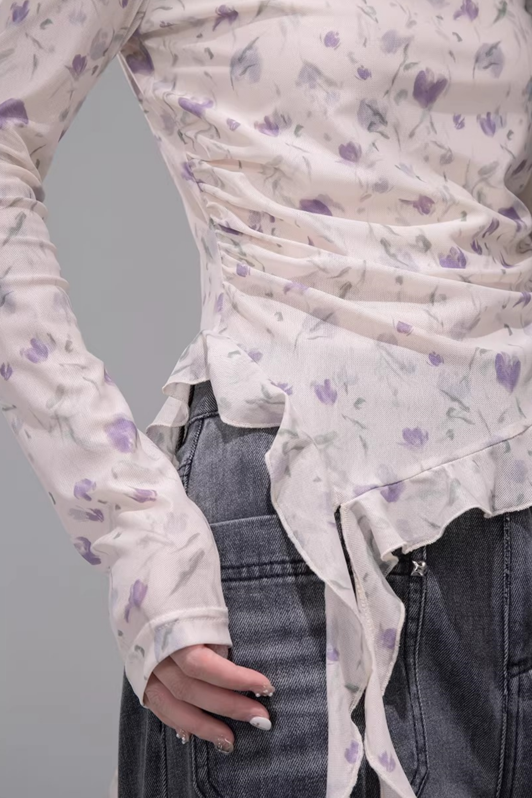 Flatternde-Frühlingsblumen-Bluse