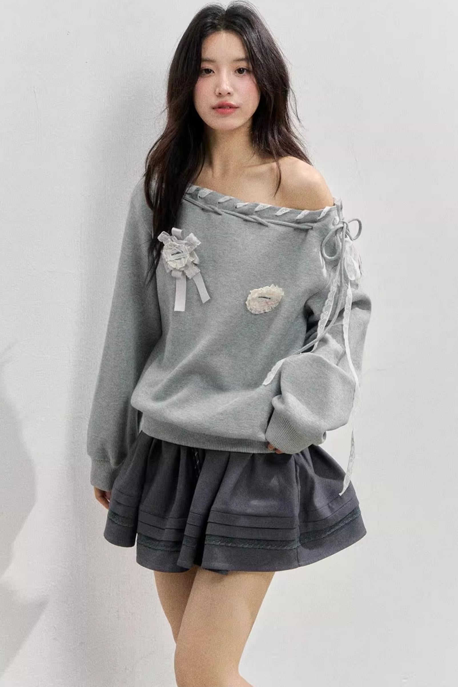 Gray Shoulder Sweatshirt
