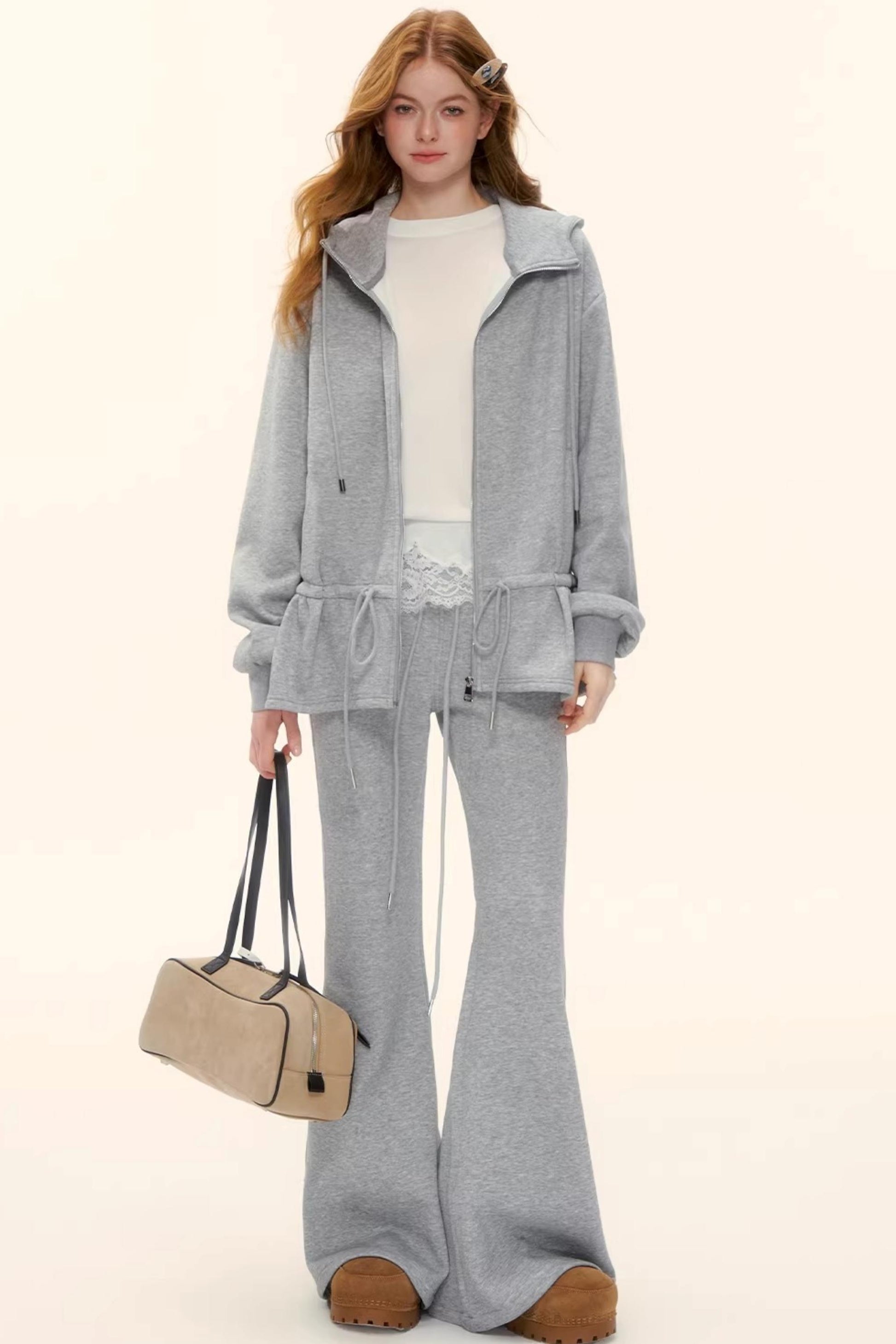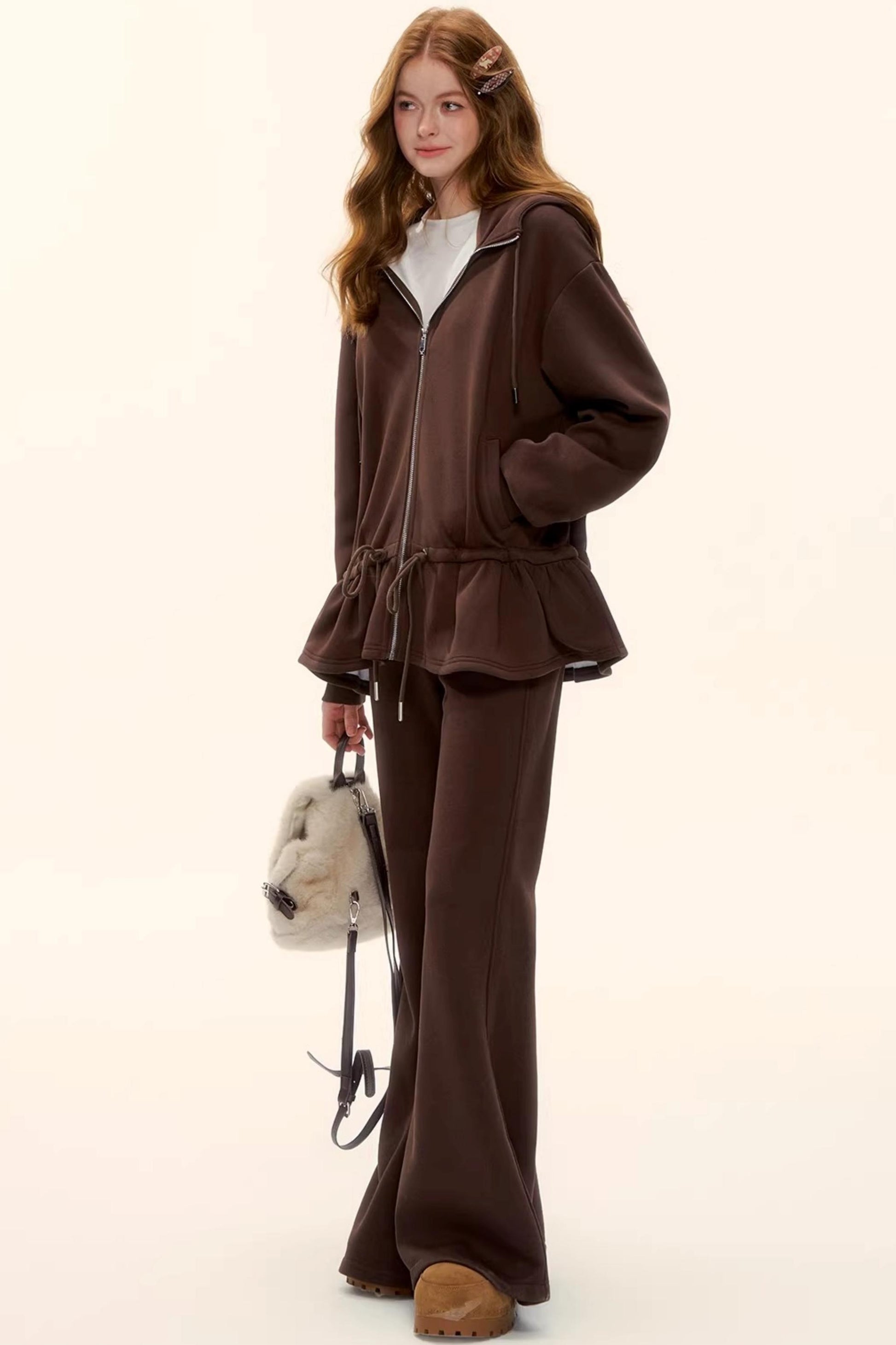 Hooded Drawstring Fleece Jacket Set-Up