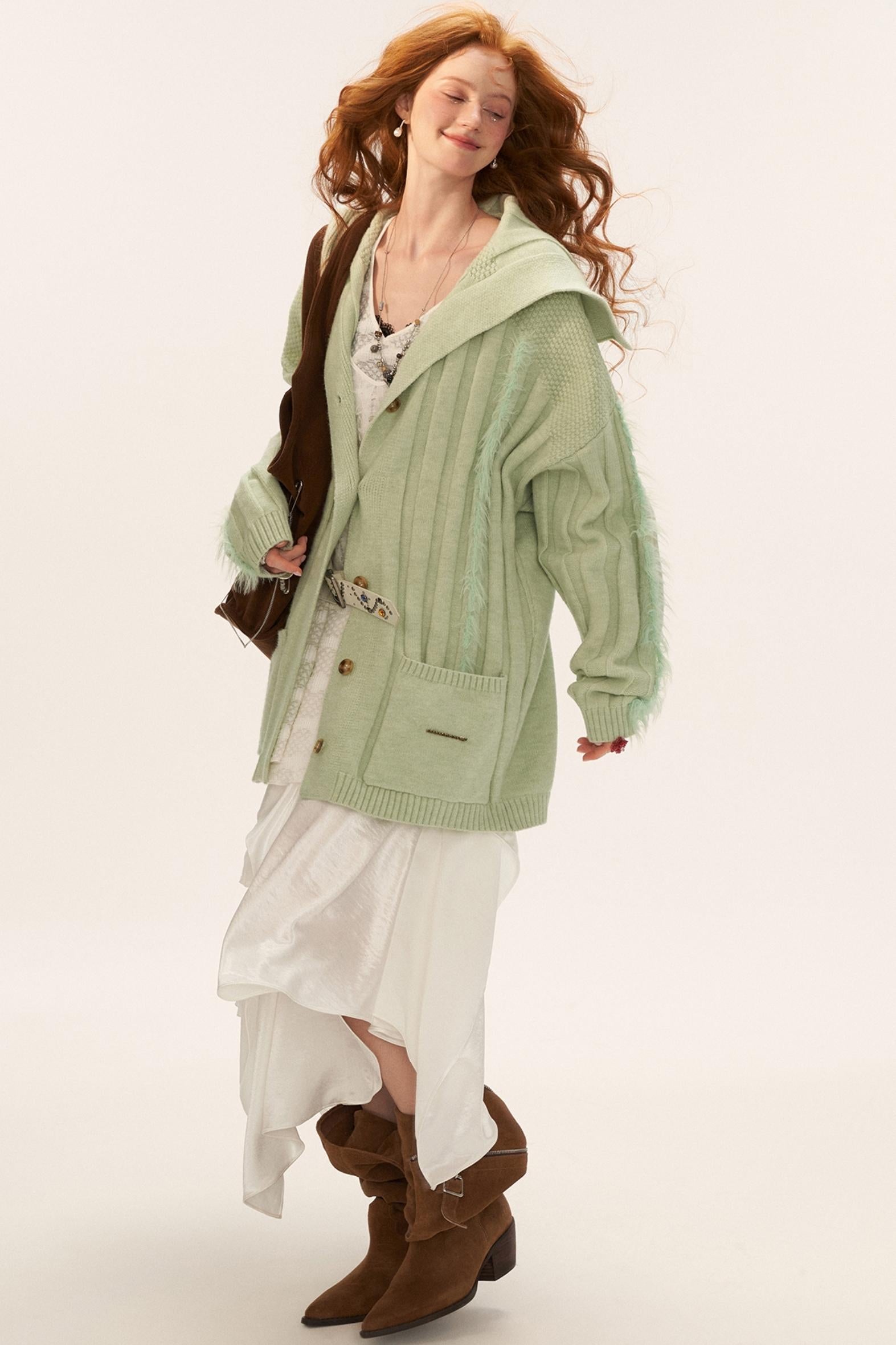 Lapel Knitted Loose Sweater Jacket