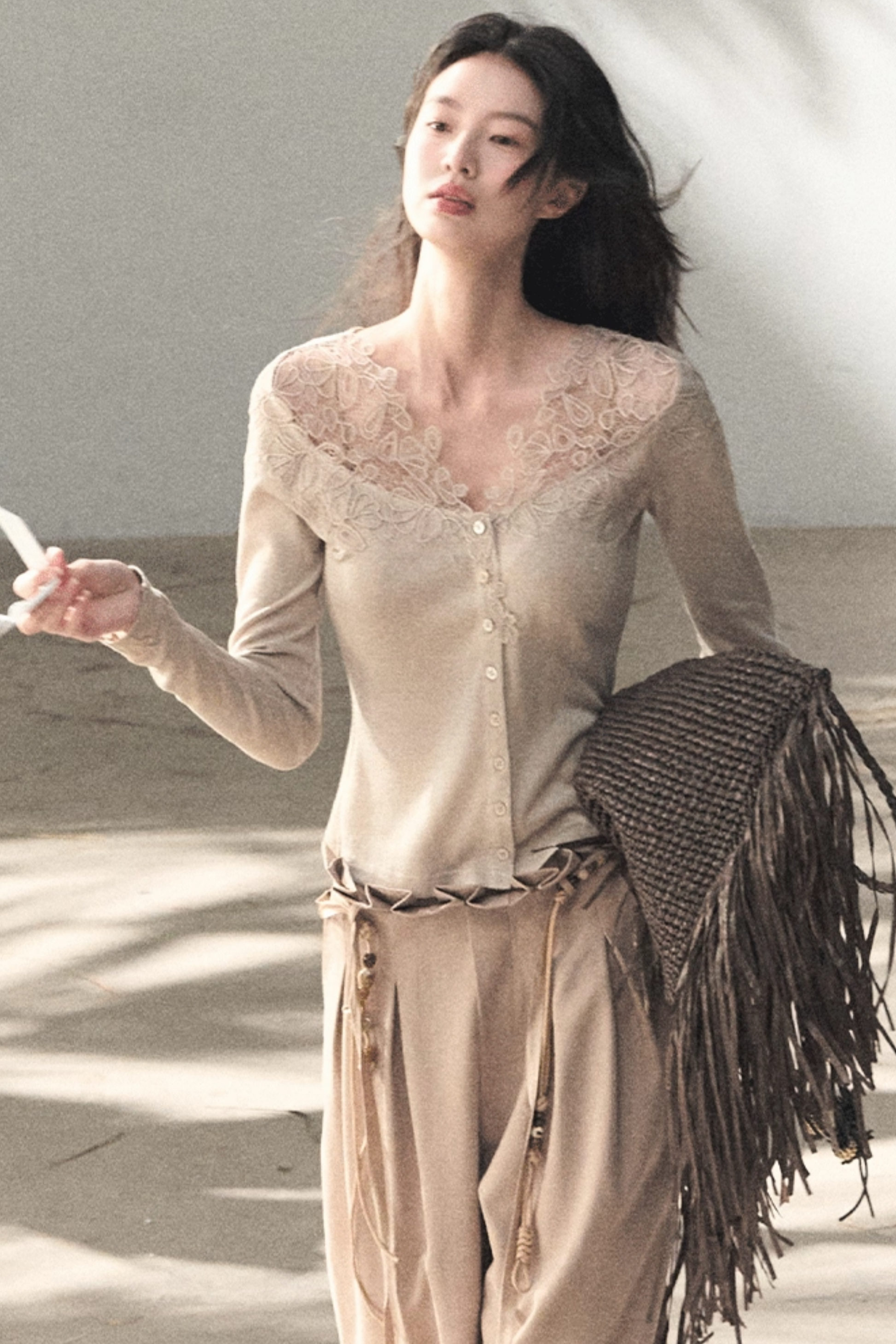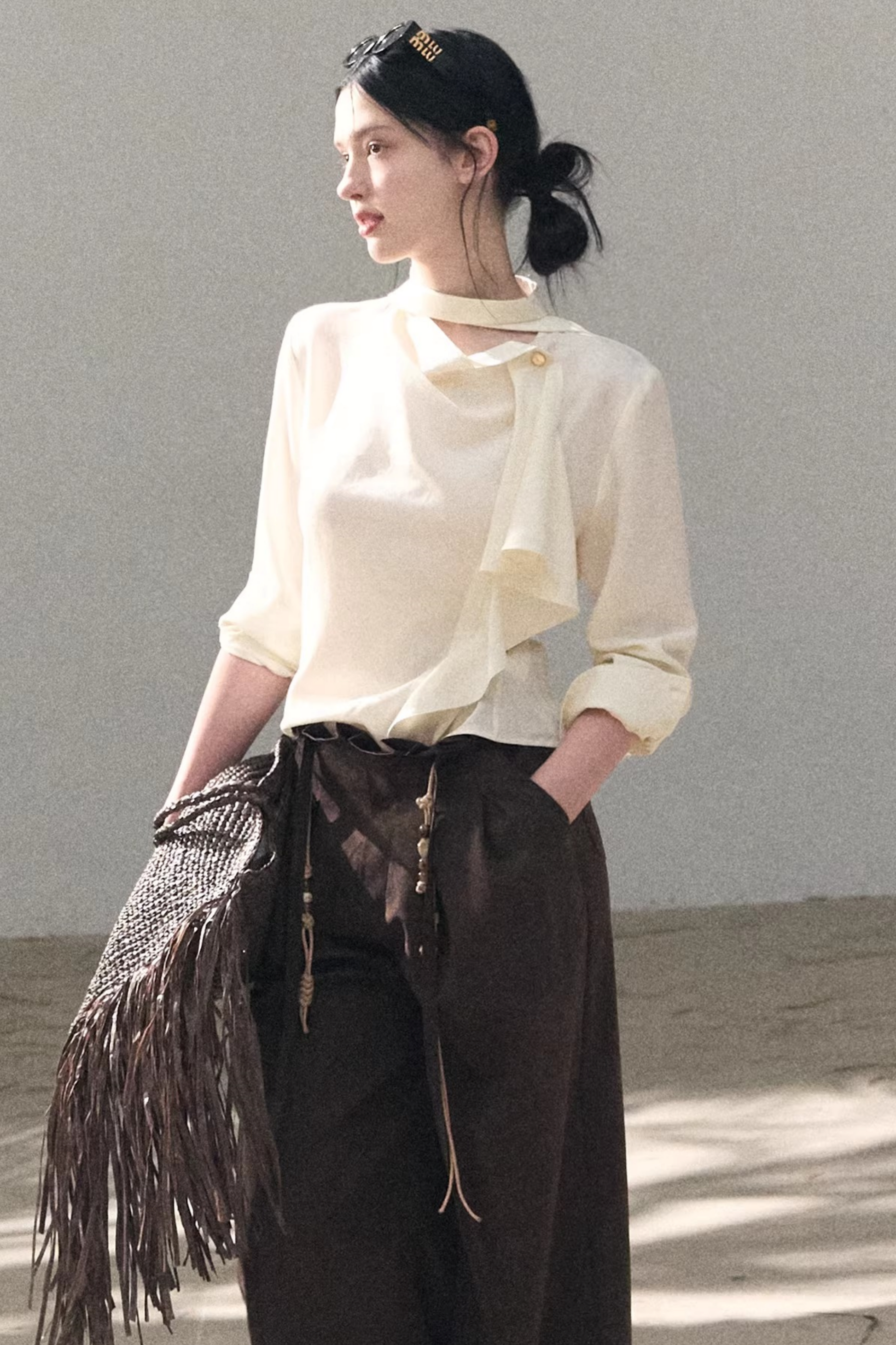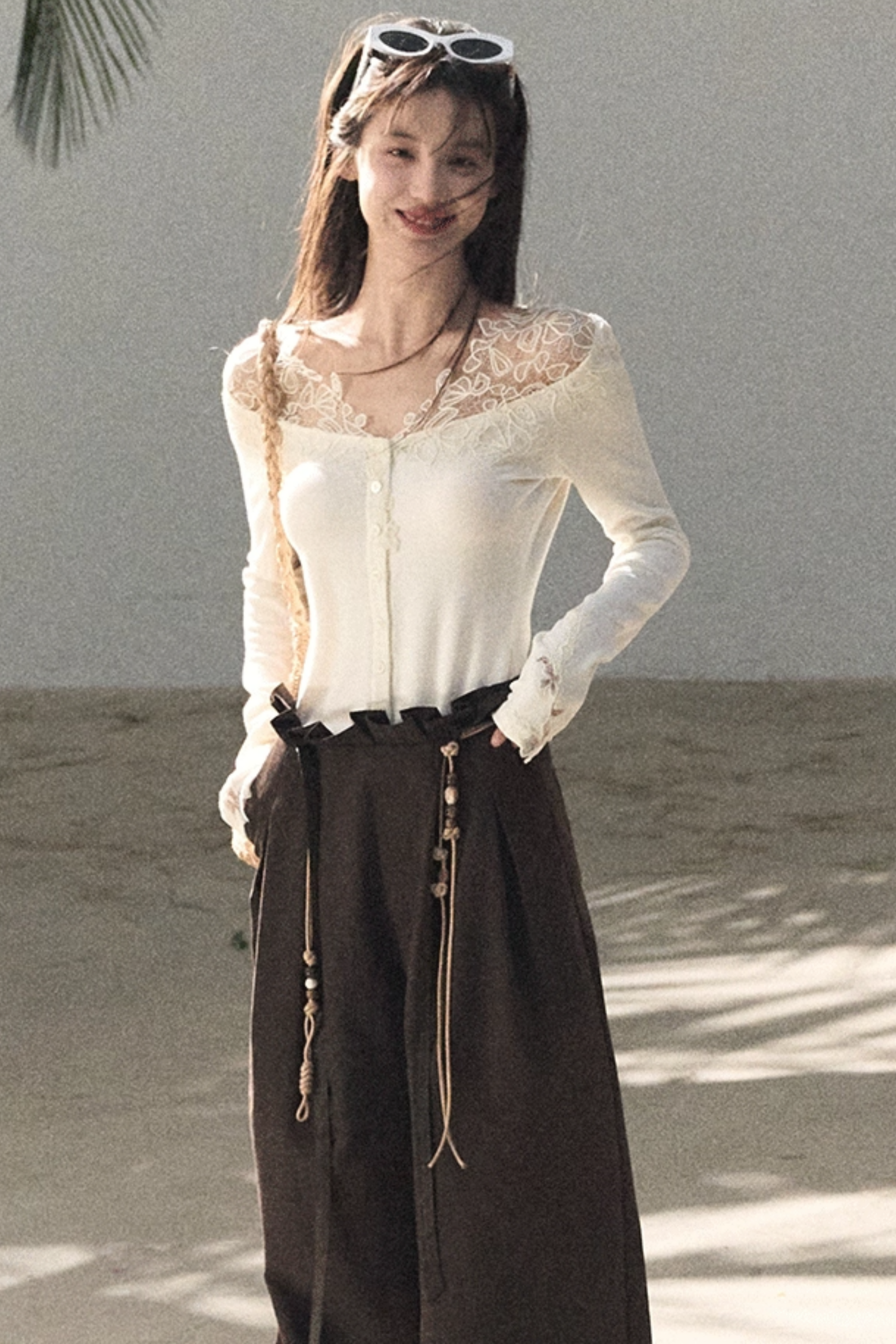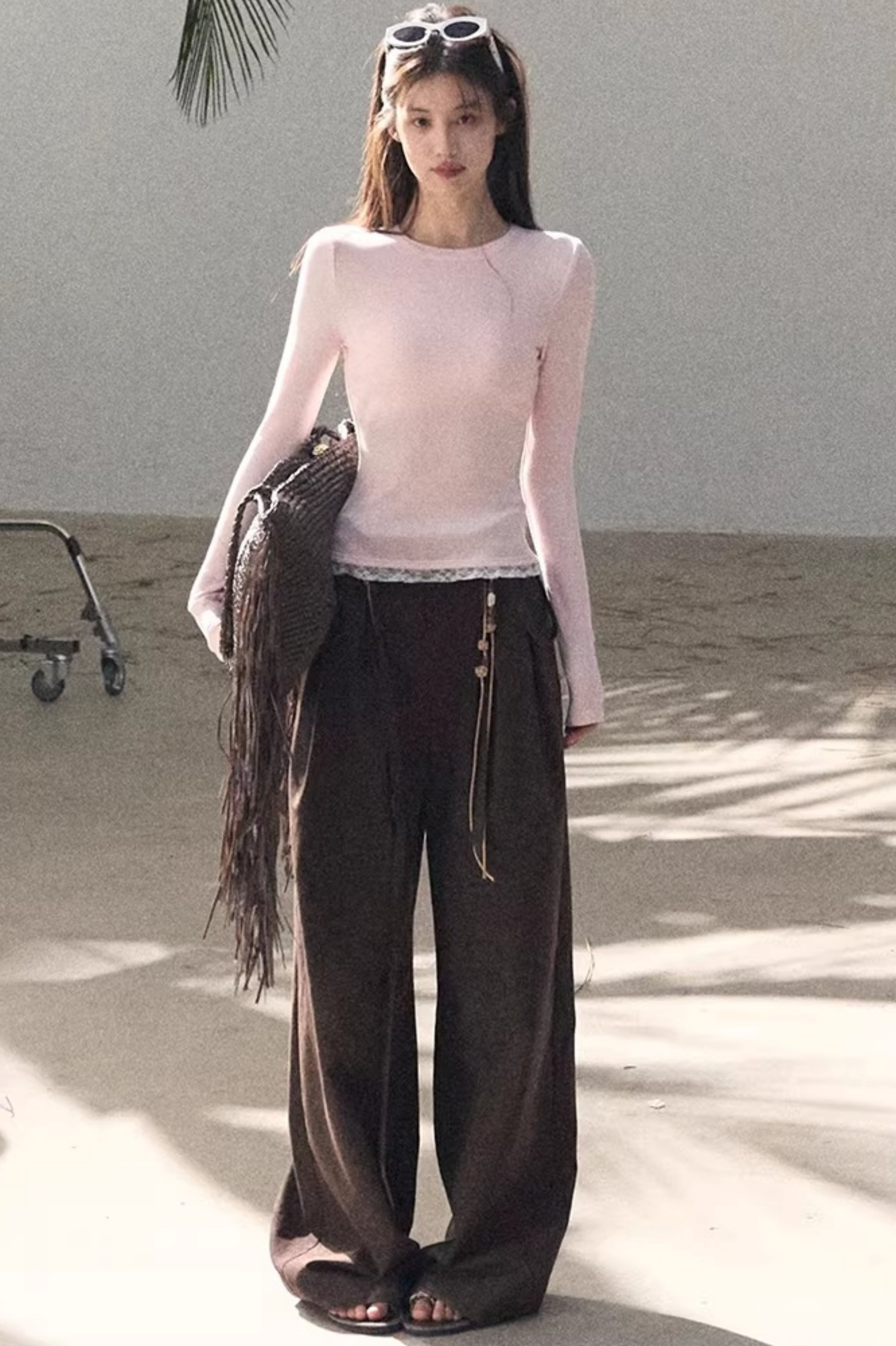 Lange Hose aus plissiertem Mikro-Samt