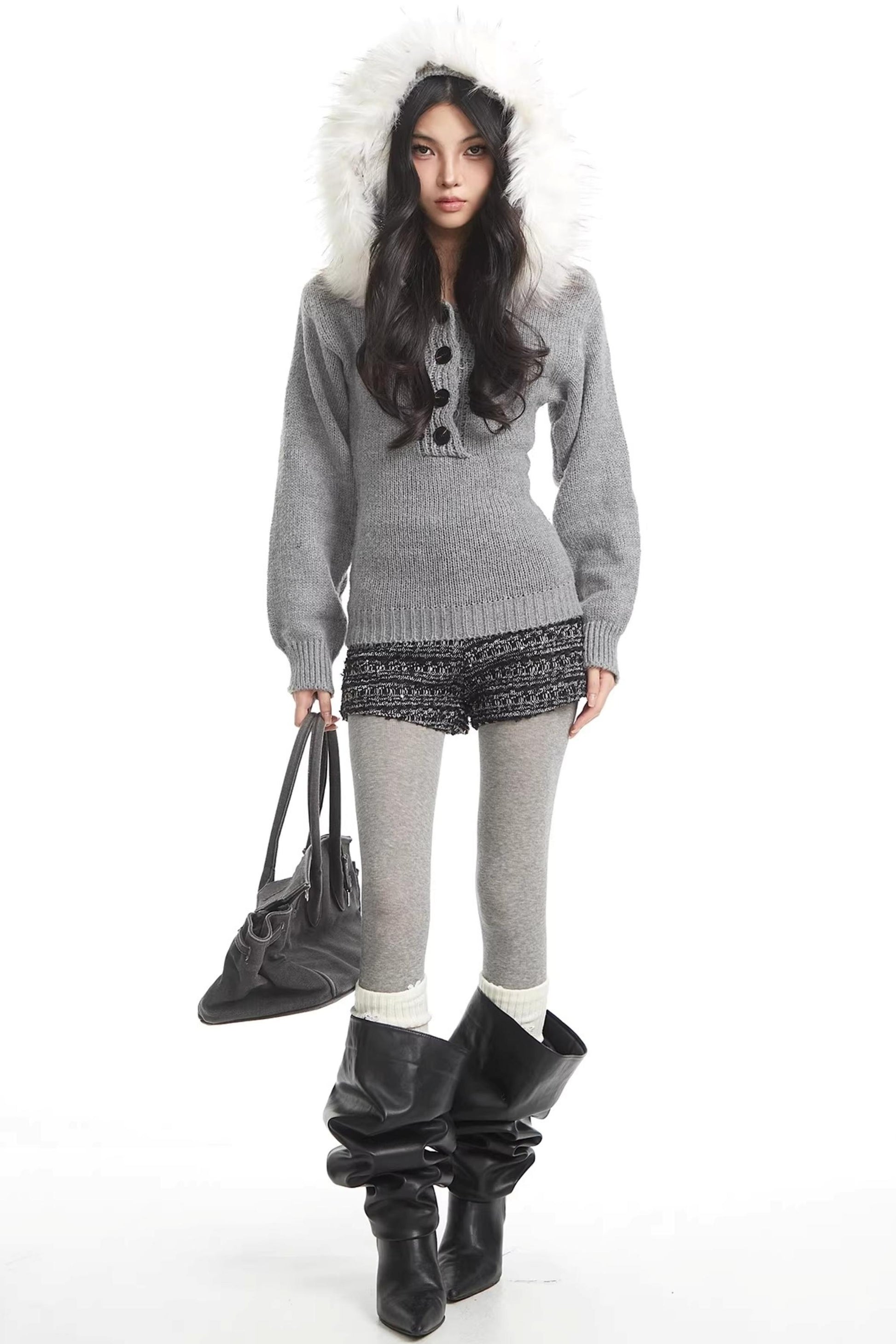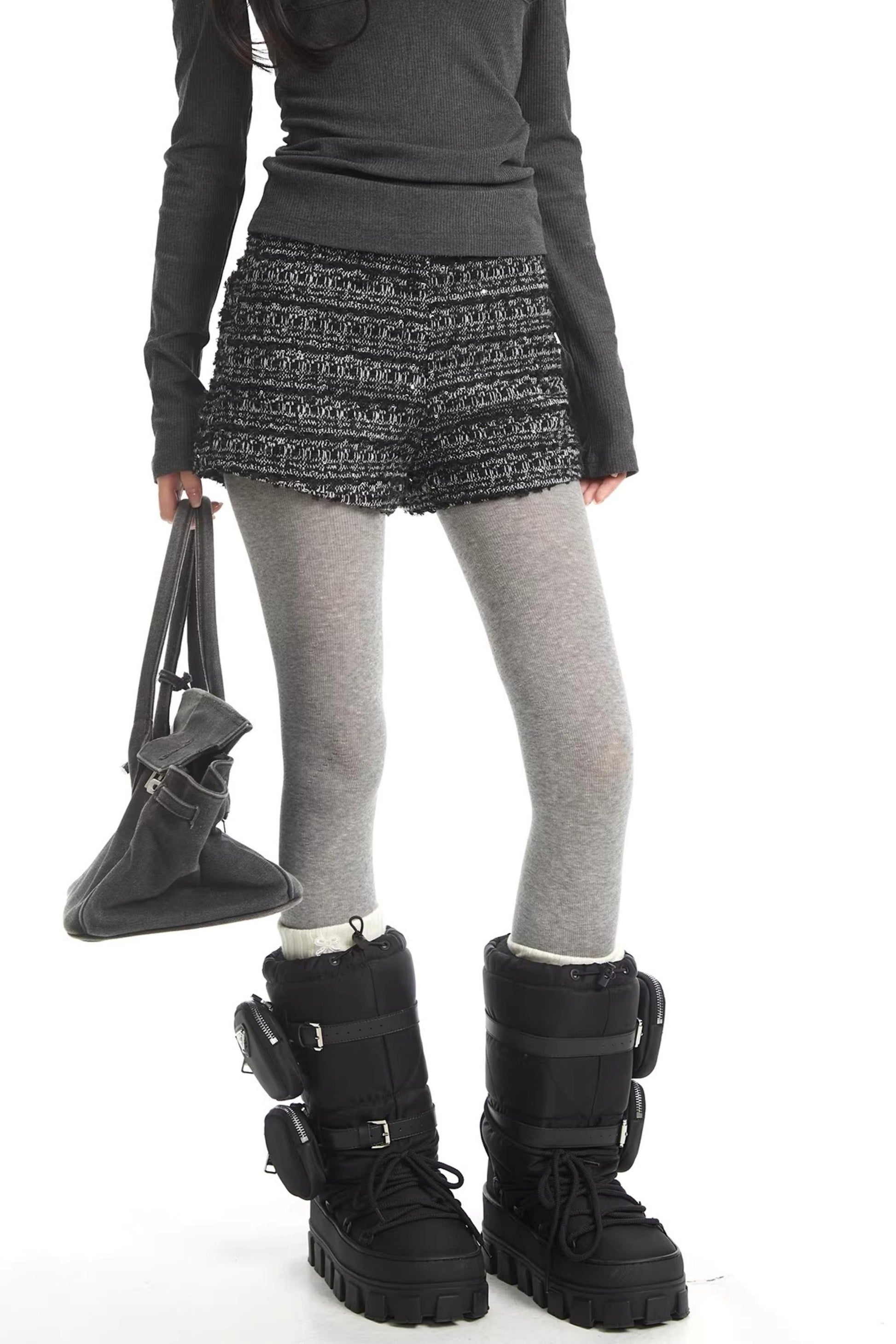 Retro Pailletten Tweed Kurze Hose