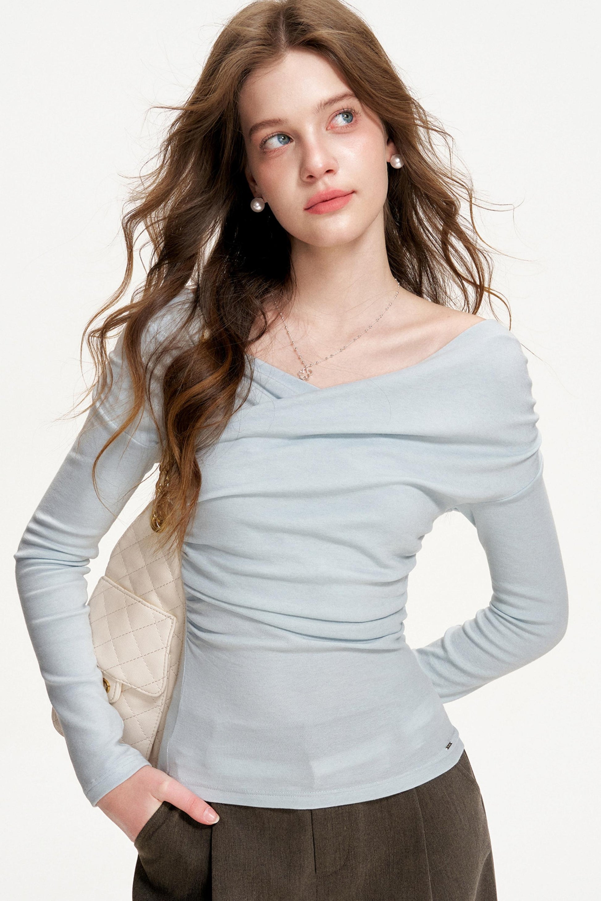Romantisches Woll-Falten-Top