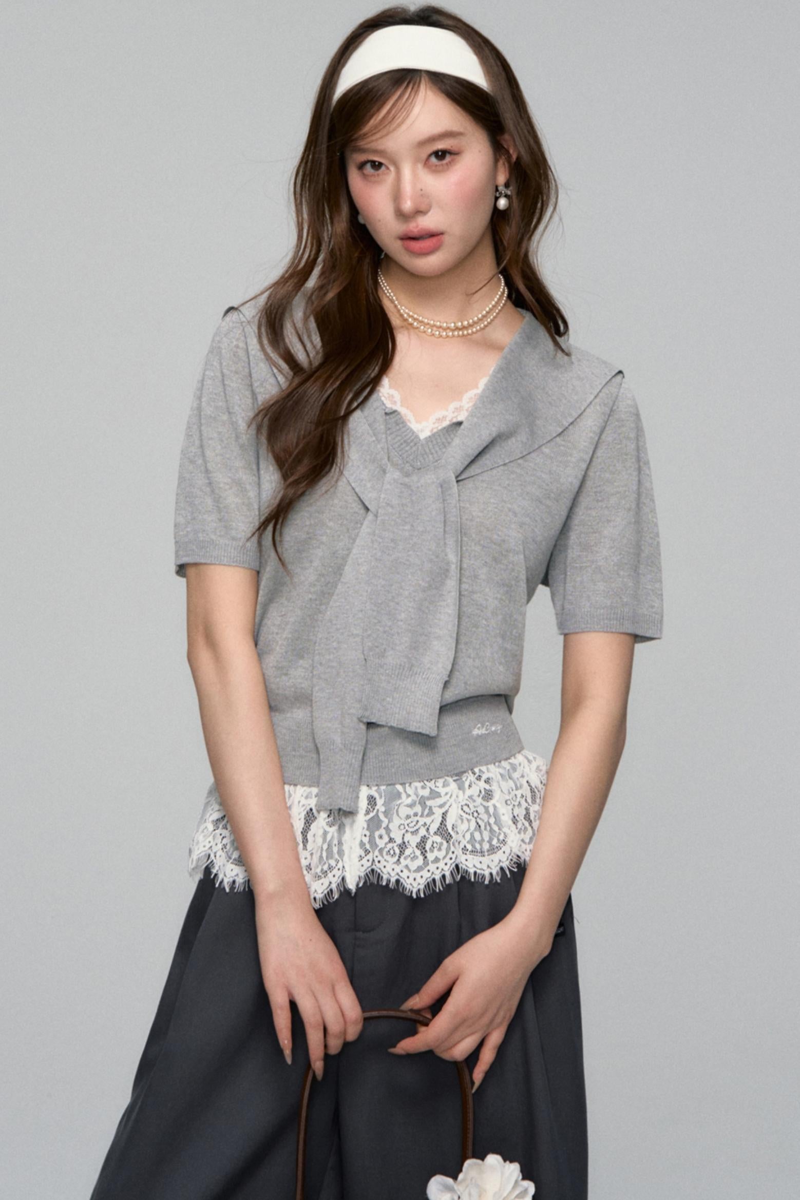 Short-Sleeved Lounge Knit Slacks Set-Up