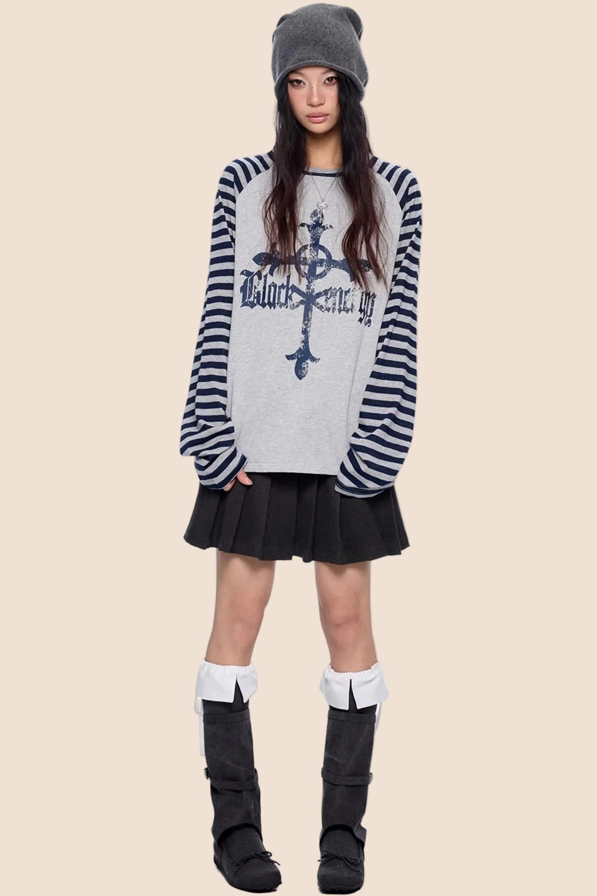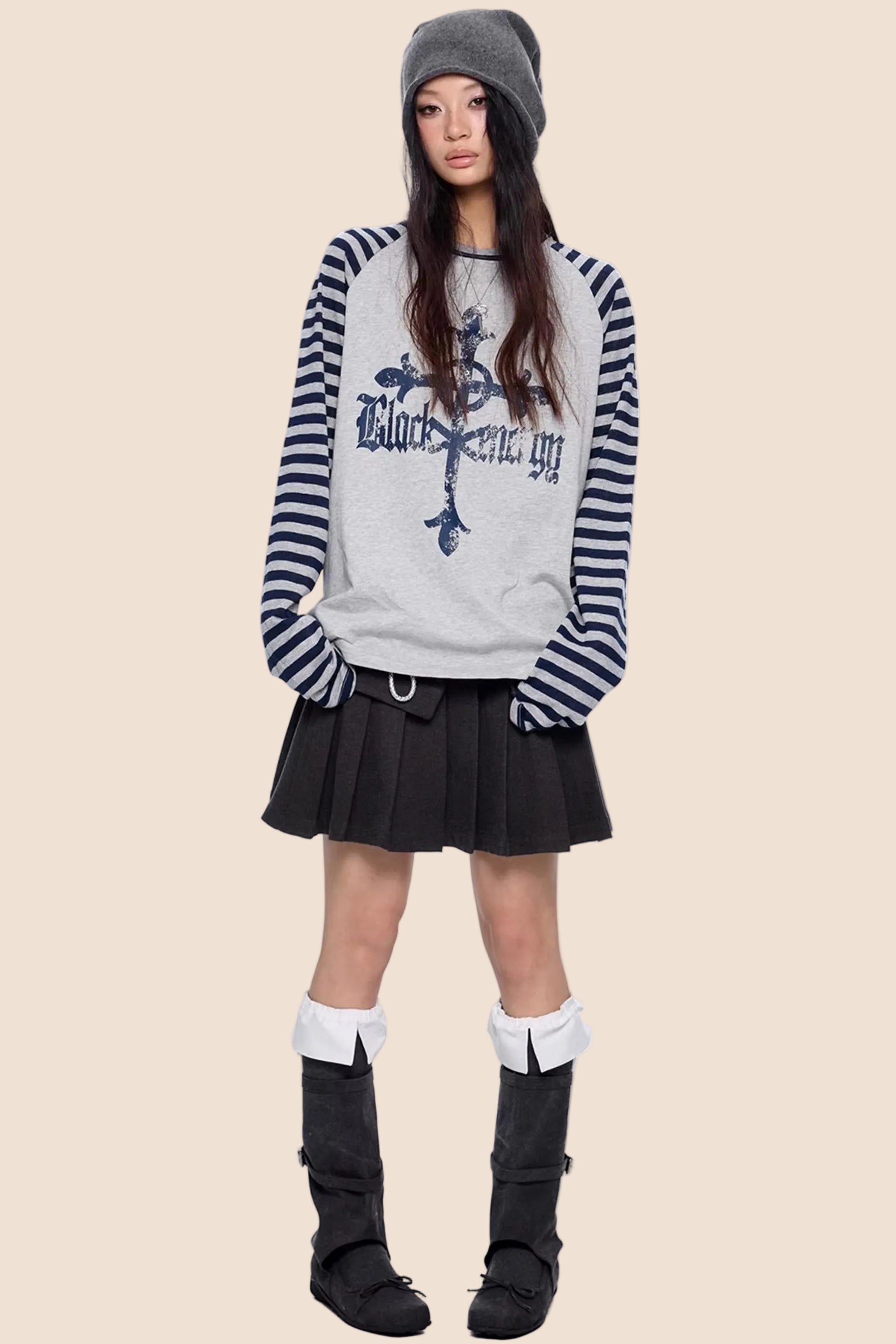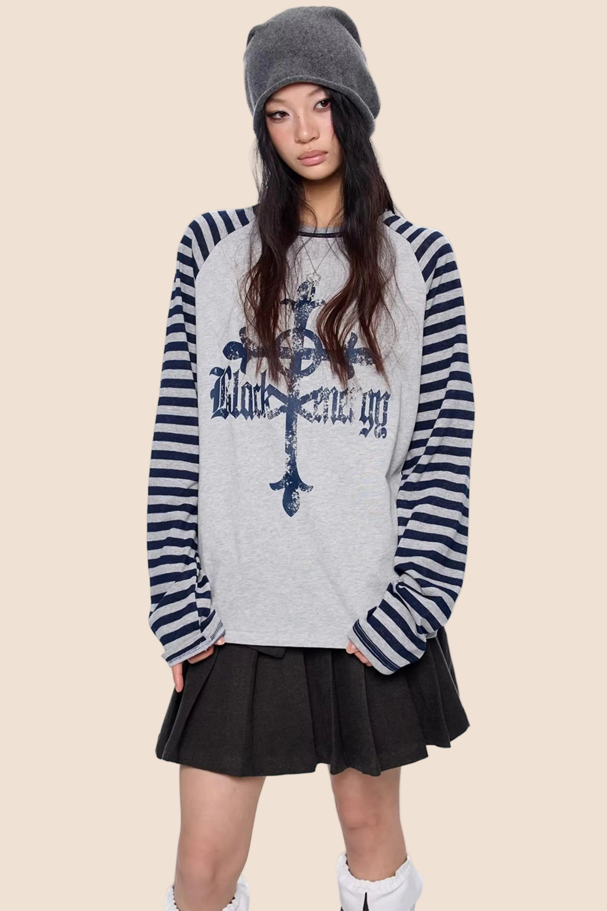 Gestreiftes Retro-Top mit Drop-Shoulder