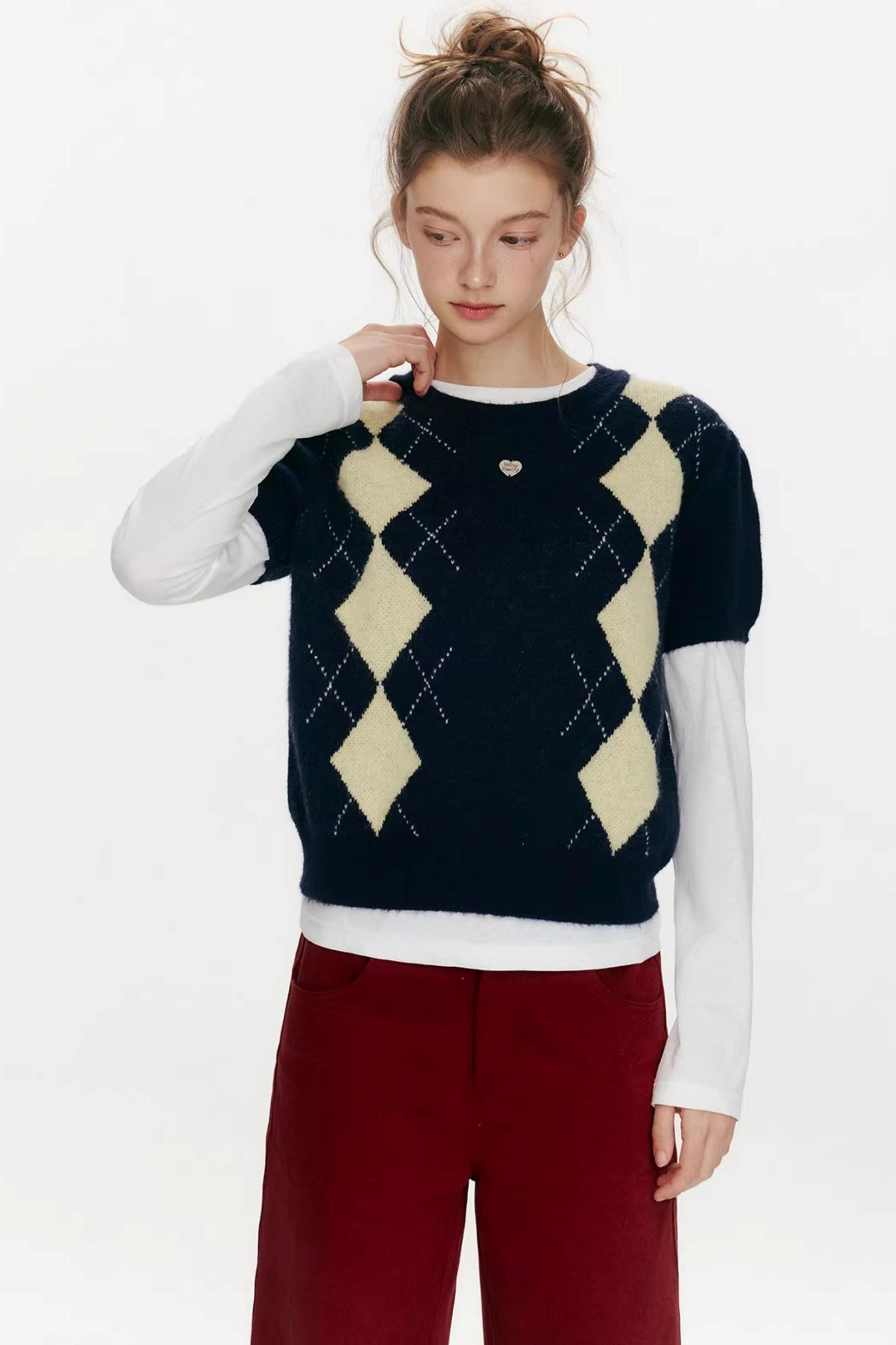 Gestepptes Strickoberteil mit Twilight-Blumenmuster