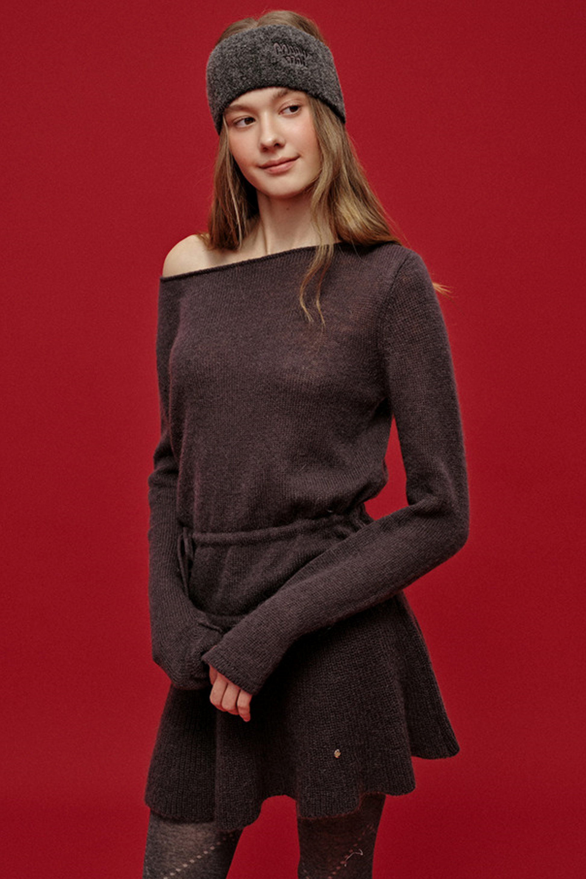 Jacquard-Haarband aus Wolle mit breiter Krempe