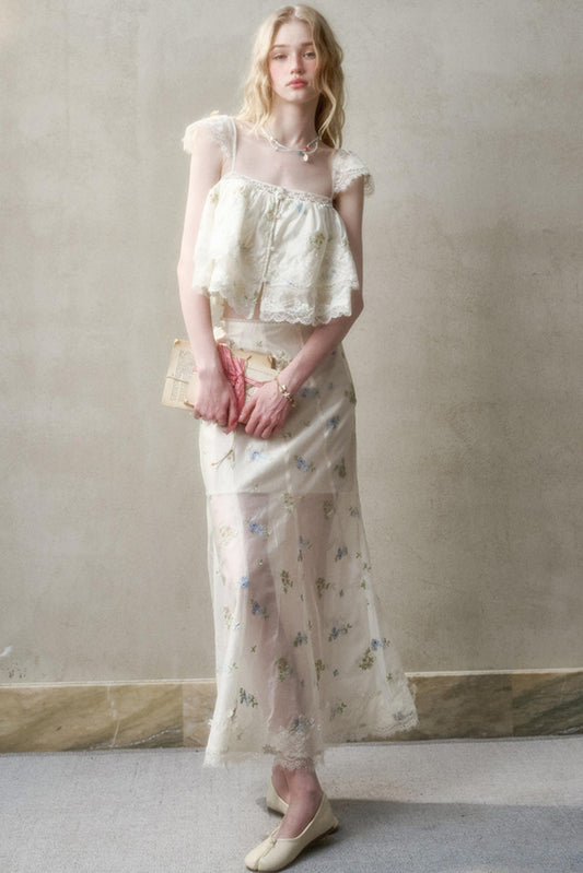 Preppy Puff Sleeve Striped Skirt Set-Up