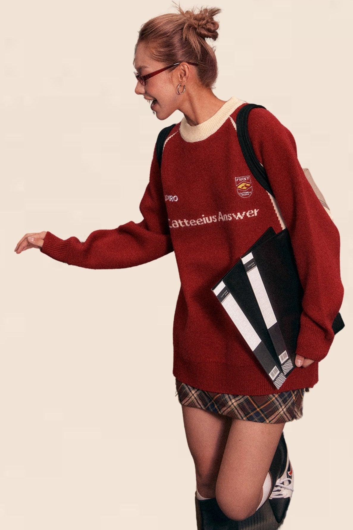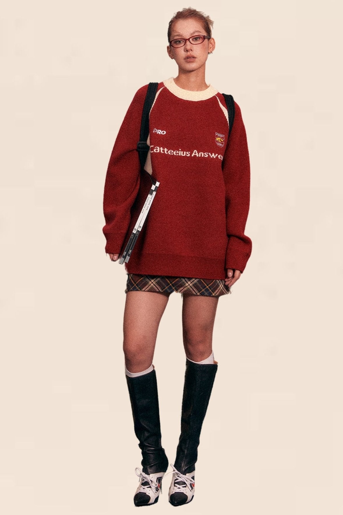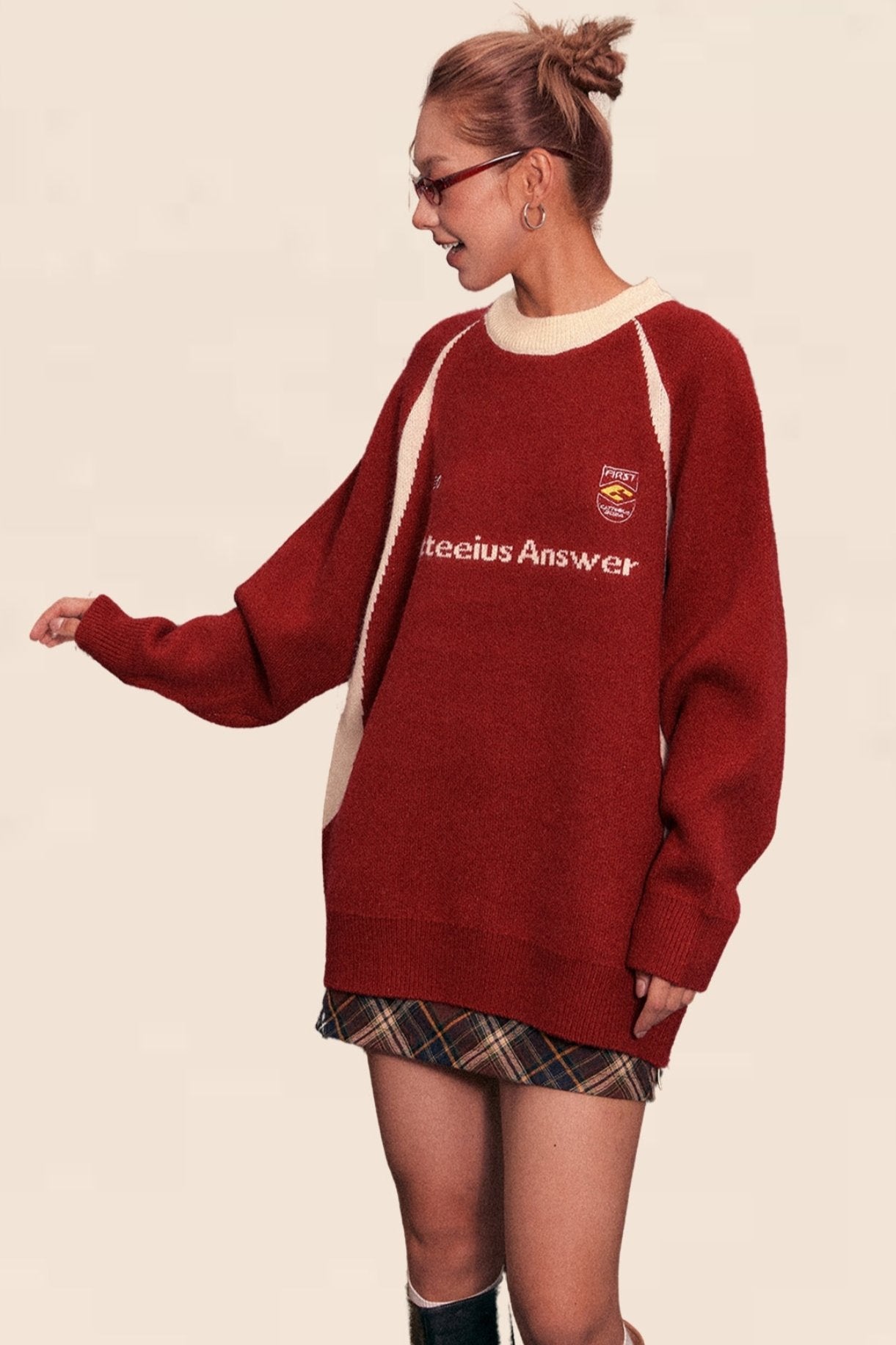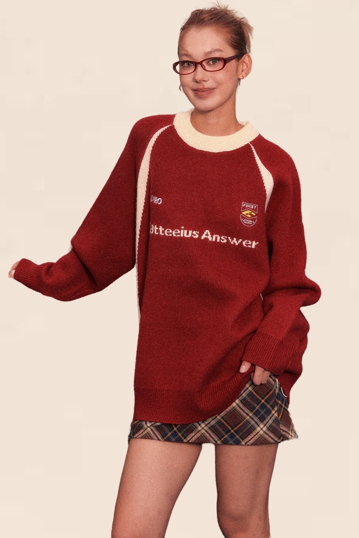 American Retro Raglan Sleeve Crew Neck Sweater