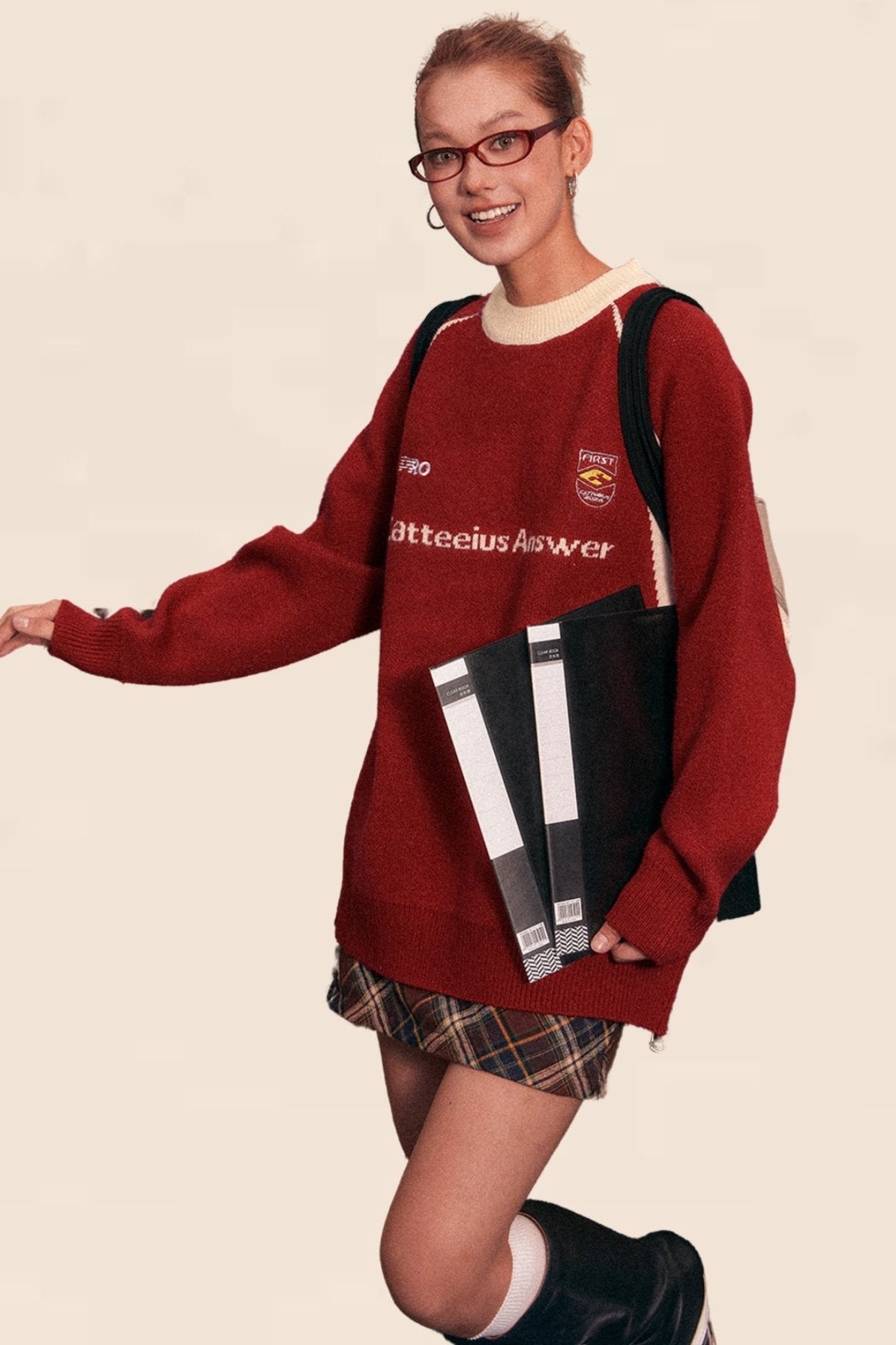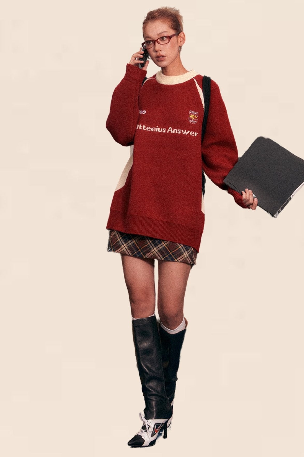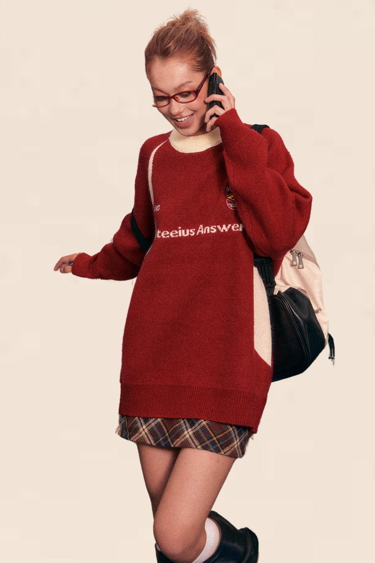 American Retro Raglan Sleeve Crew Neck Sweater