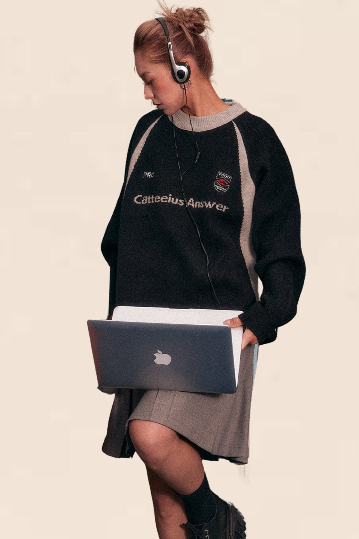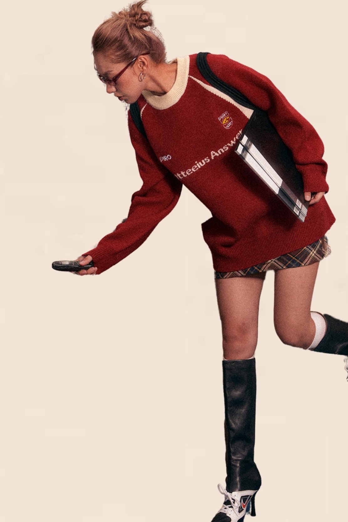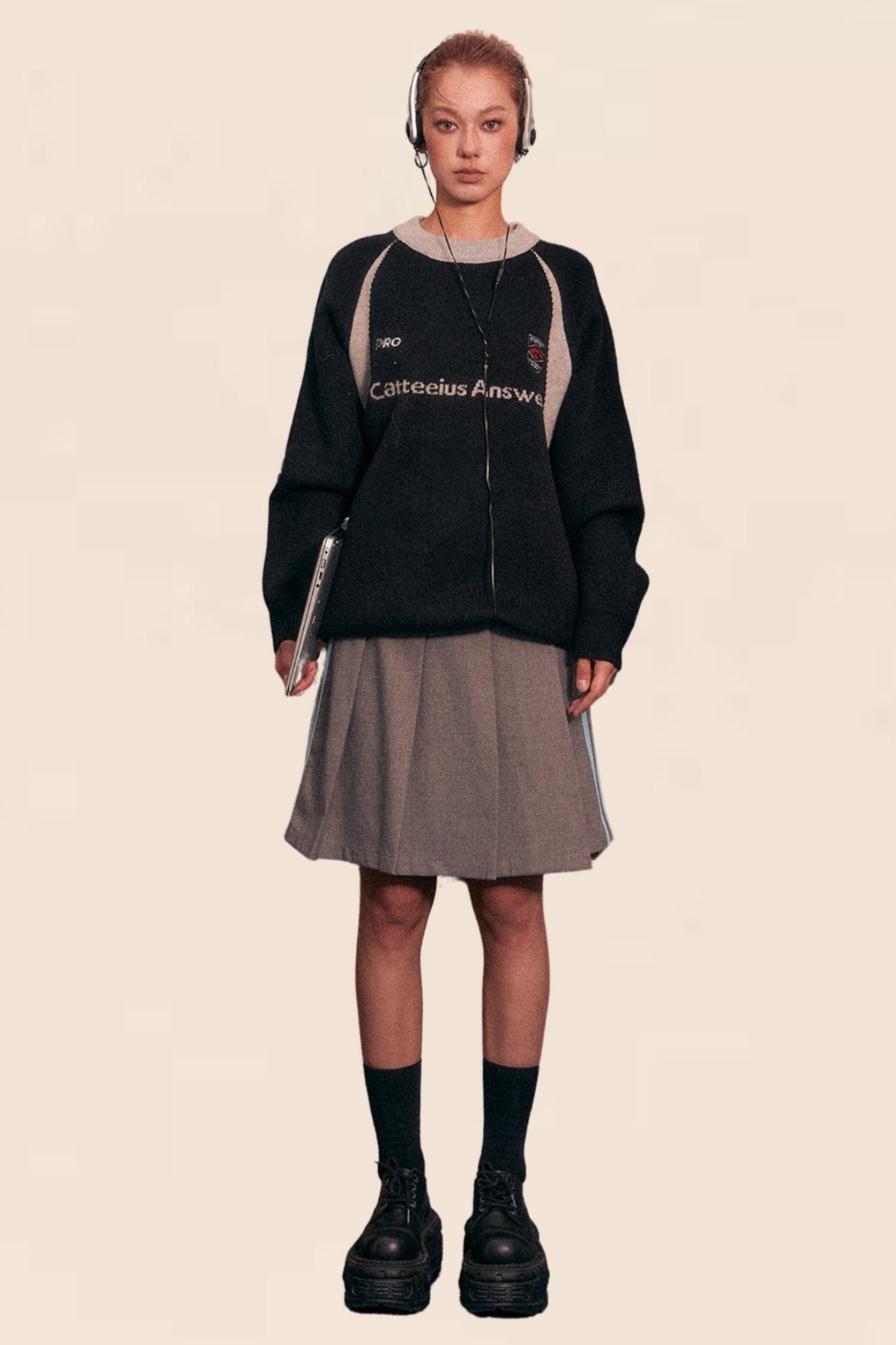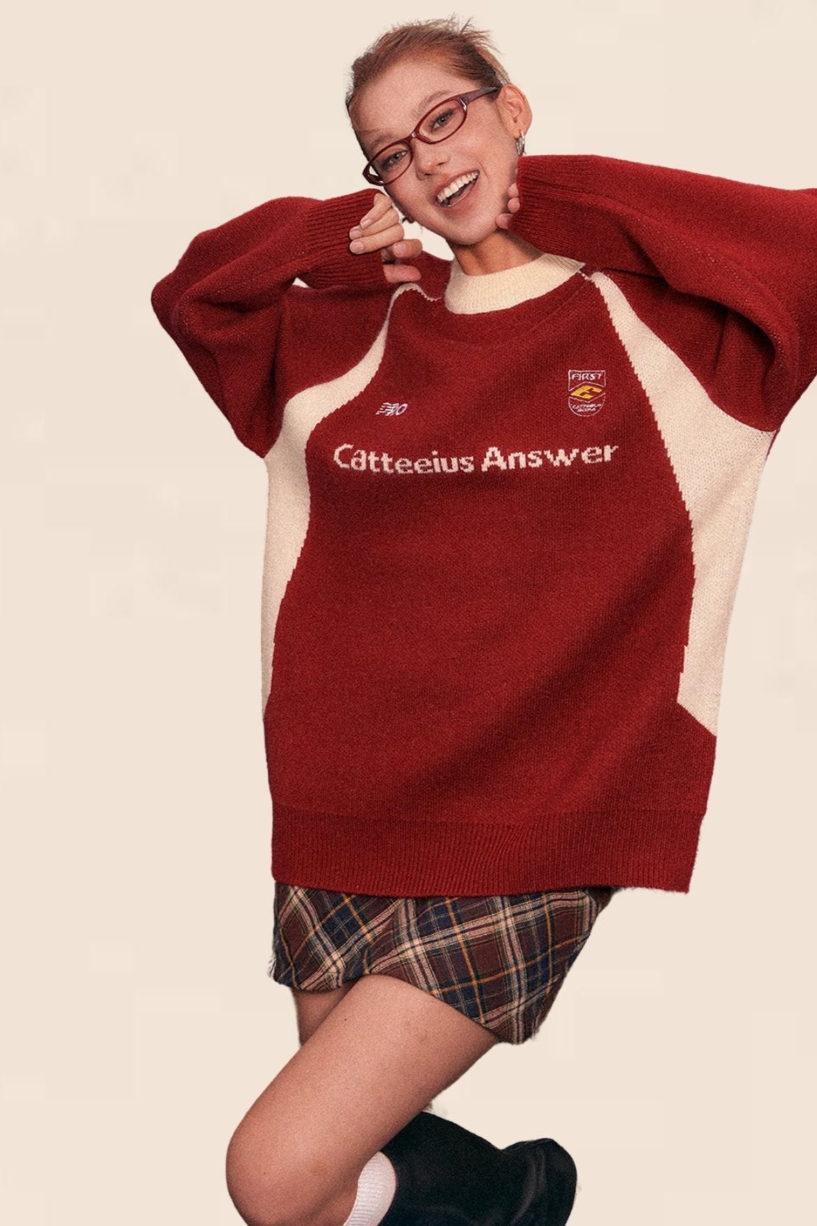 American Retro Raglan Sleeve Crew Neck Sweater