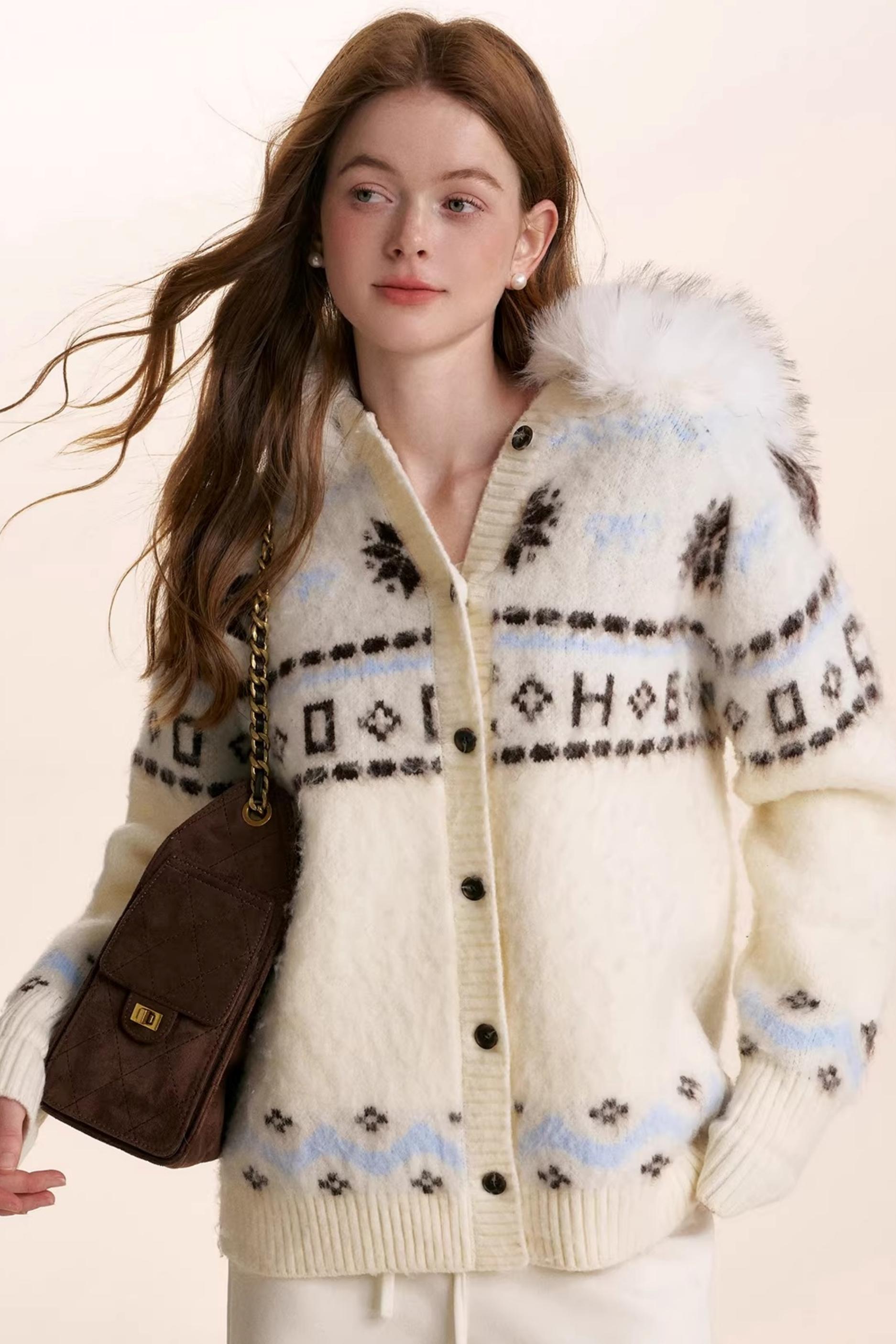 Fair Isle Wool Hooded Cardigan