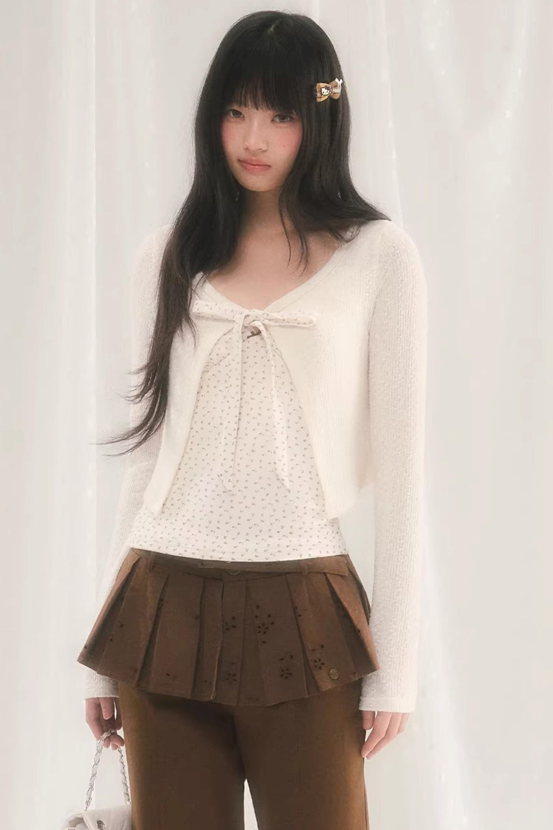 Floral Bow Tie Cardigan Matching Set