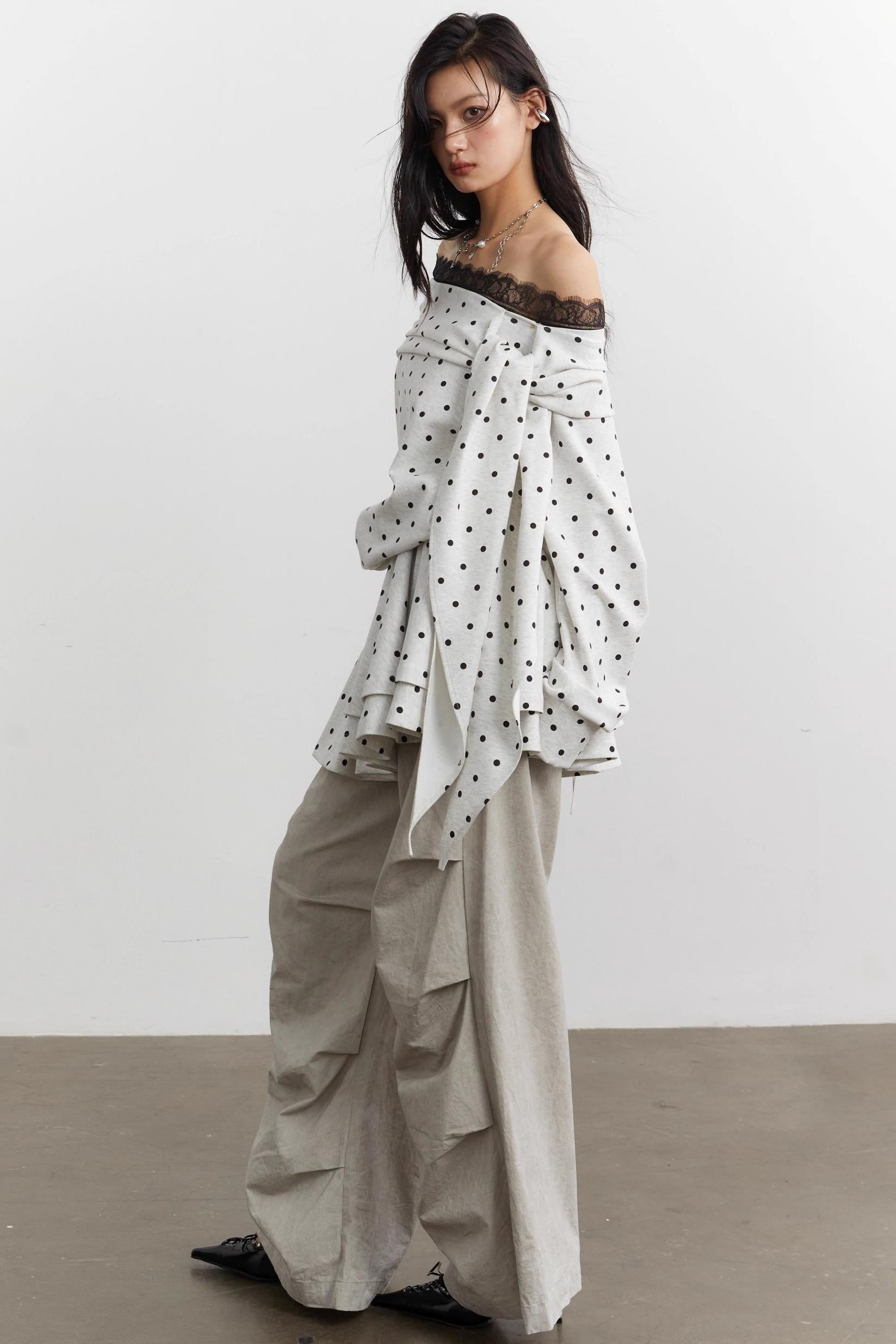 Lace-Up Polka Dot Sweatshirt Set-Up