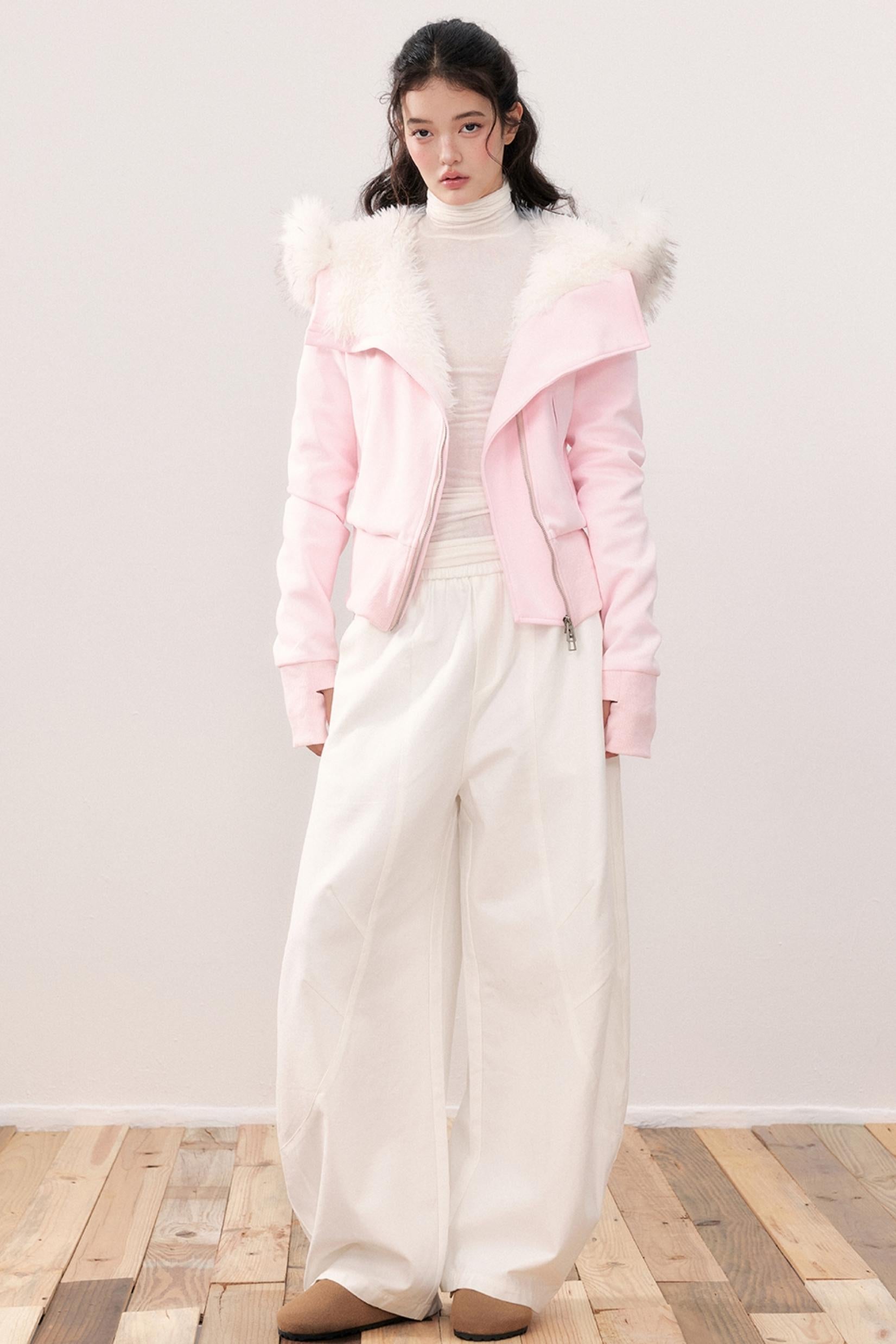 Lapel Fur Collar Fleece Jacket & Pants Set-Up