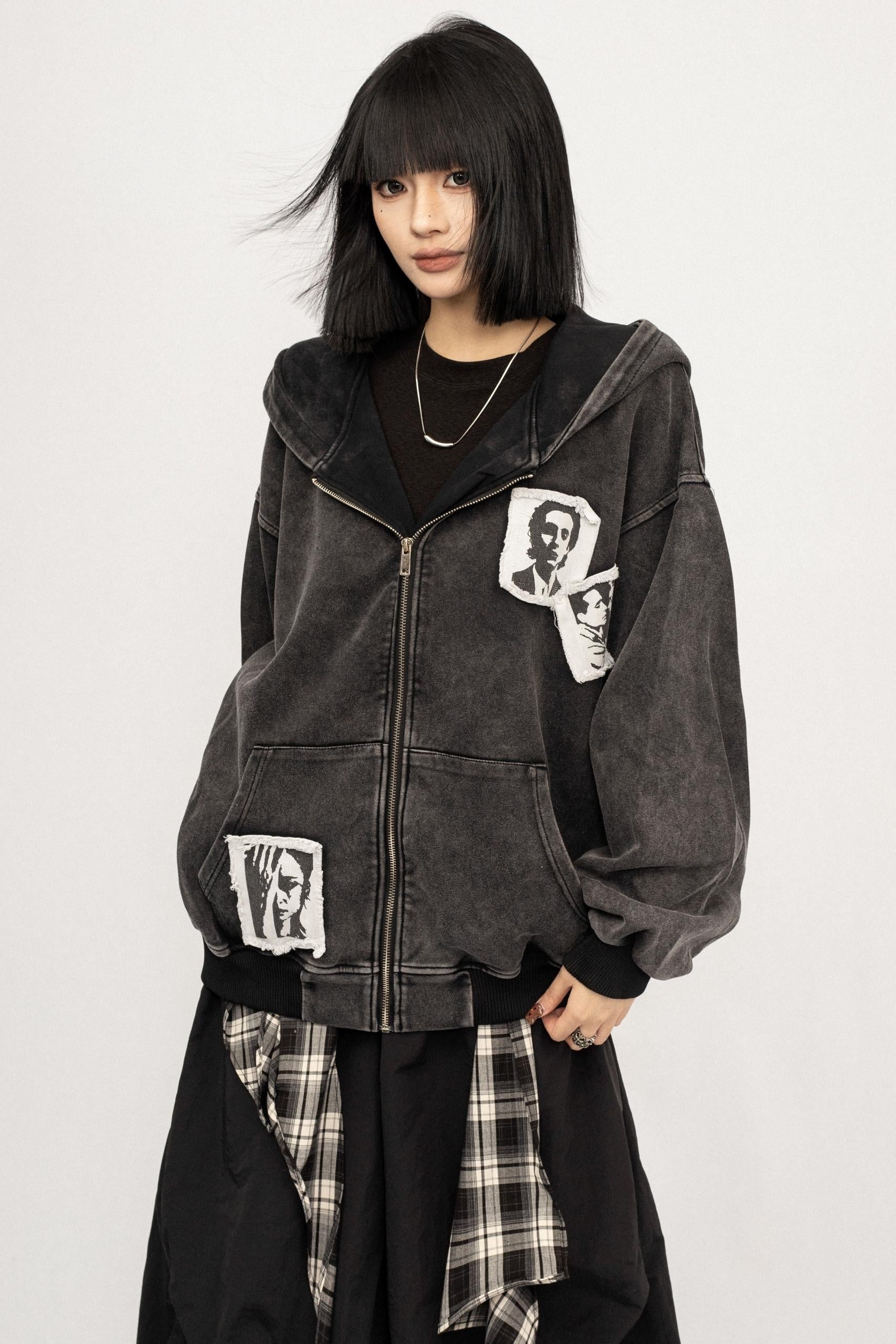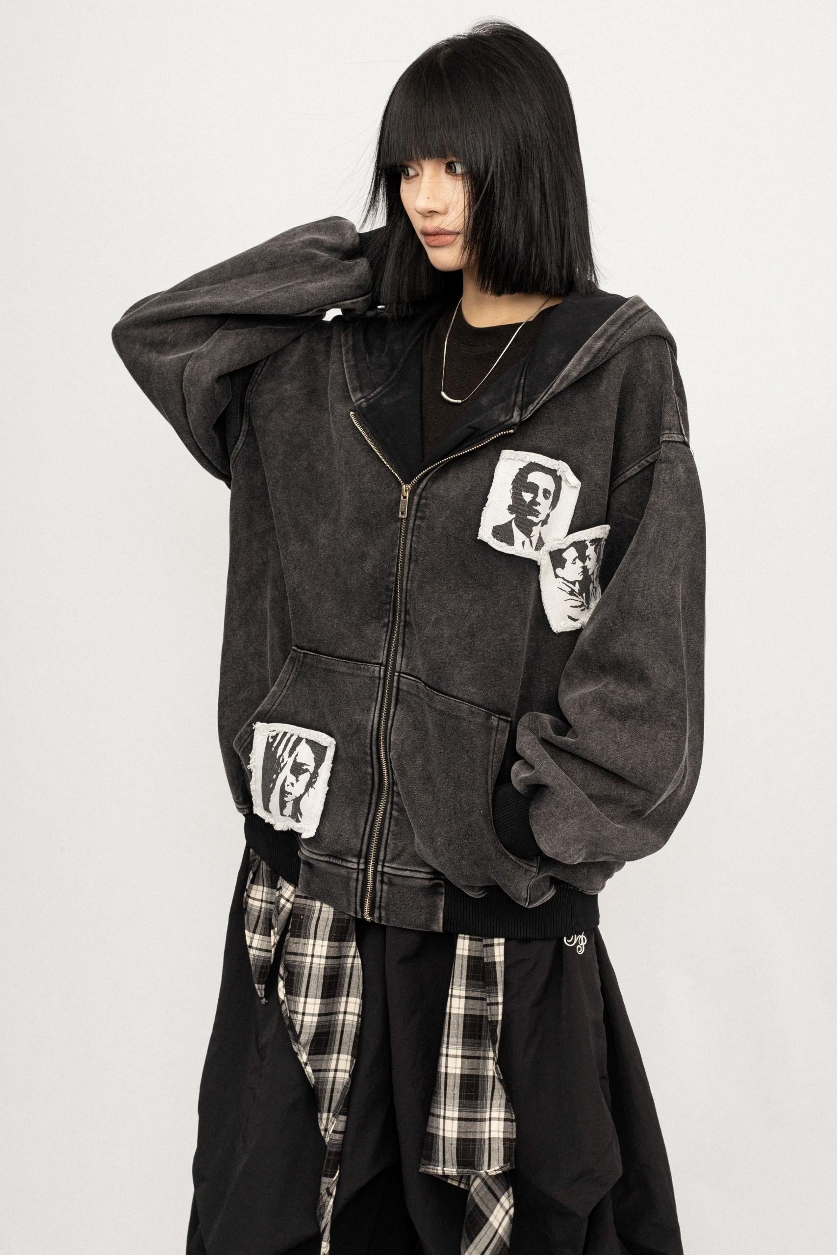 Loose Hooded Sweatshirt Jacket