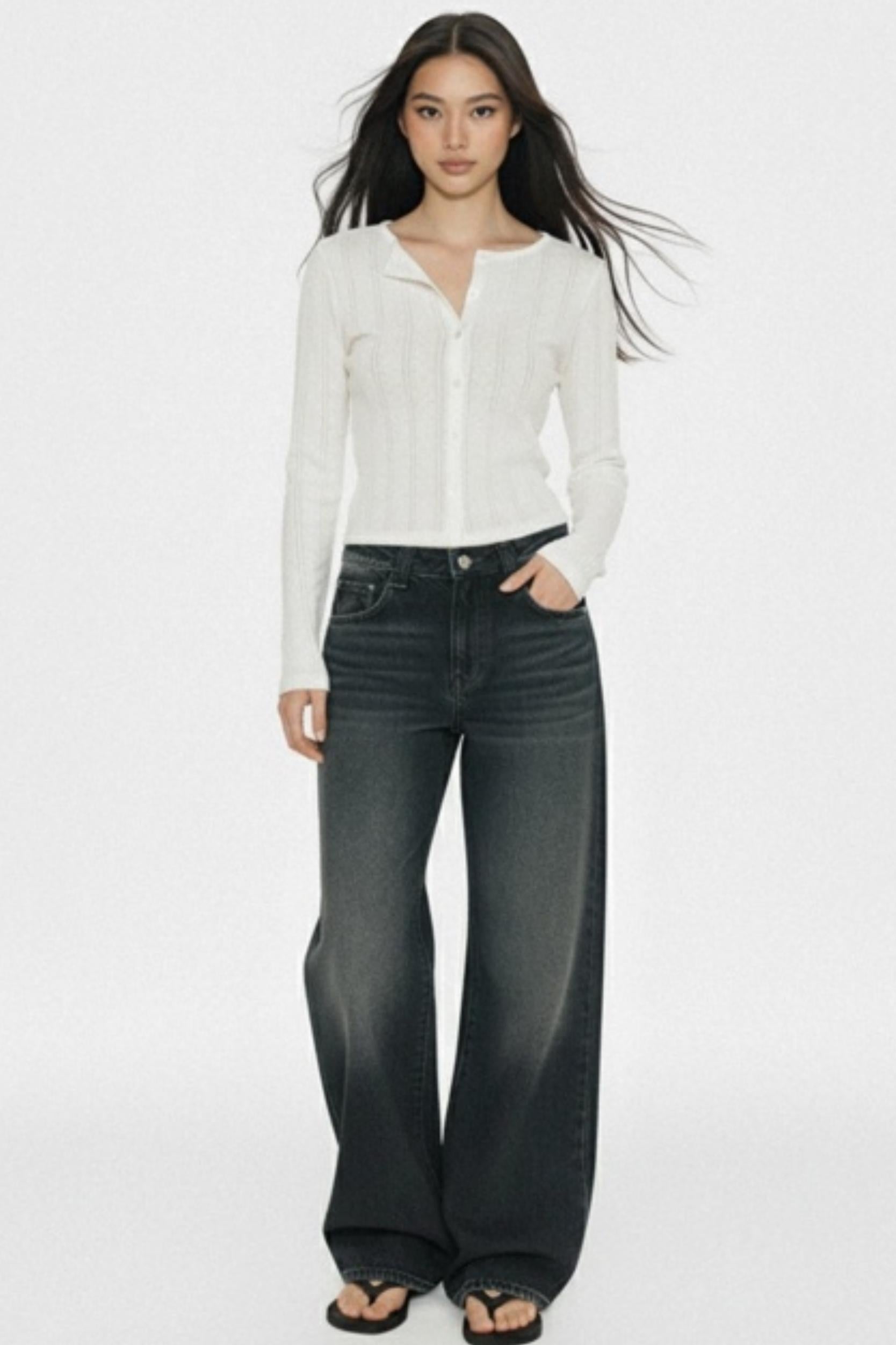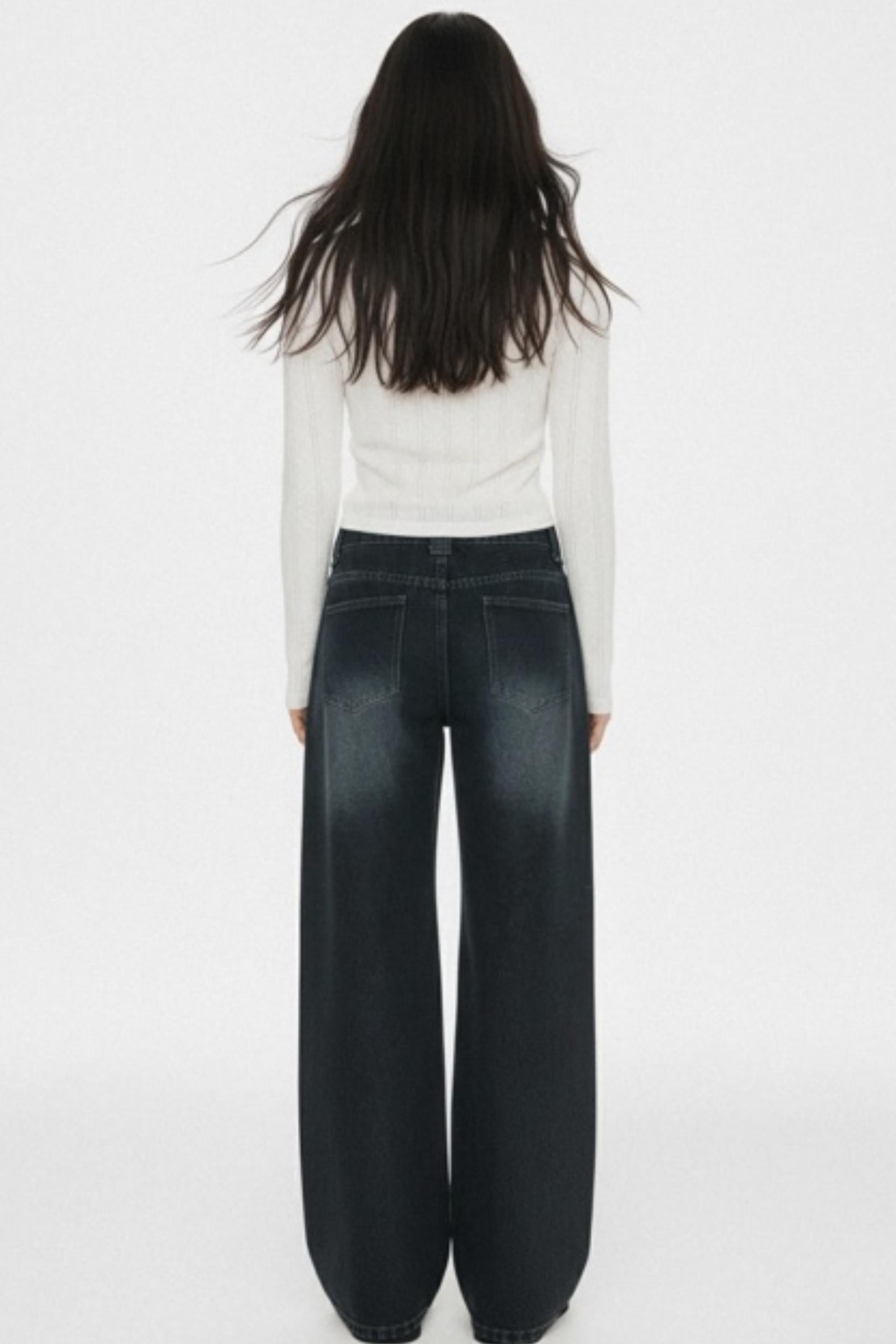 Retro Dark Blue Wide-Leg Jeans