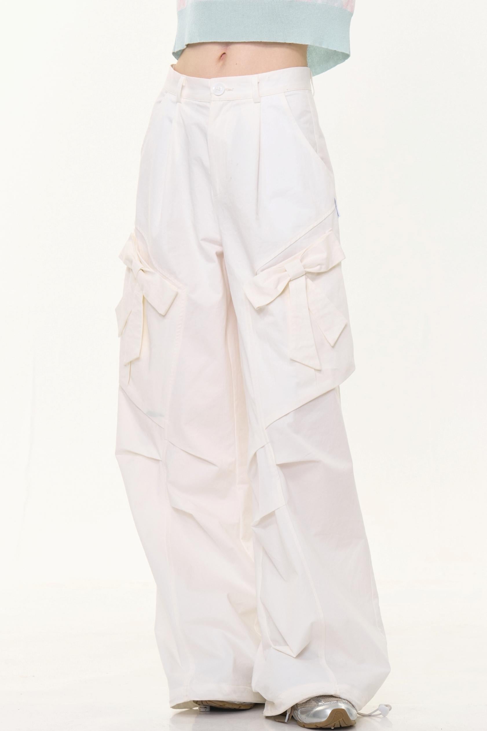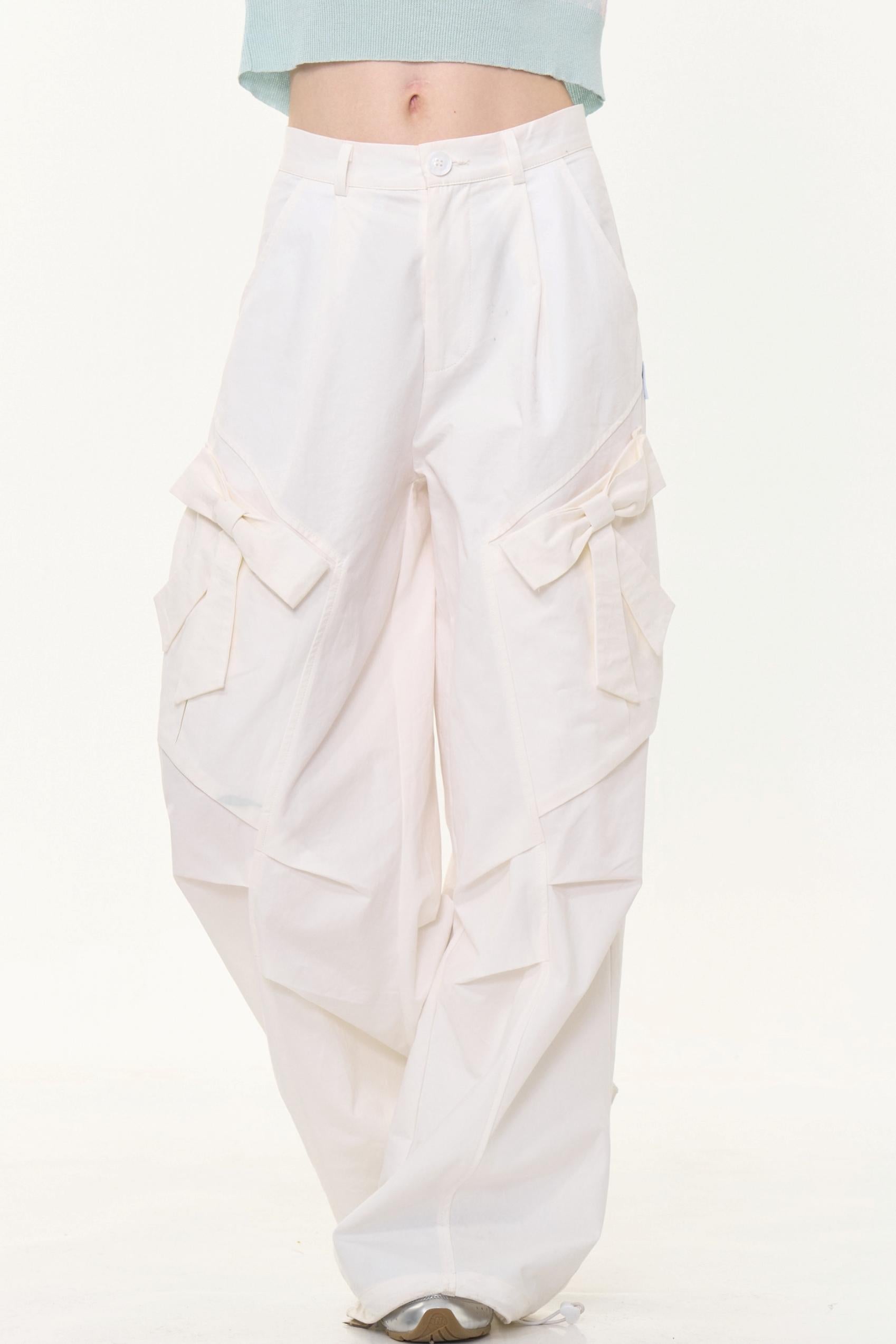 Retro White High-Waist Wide-Leg Pants