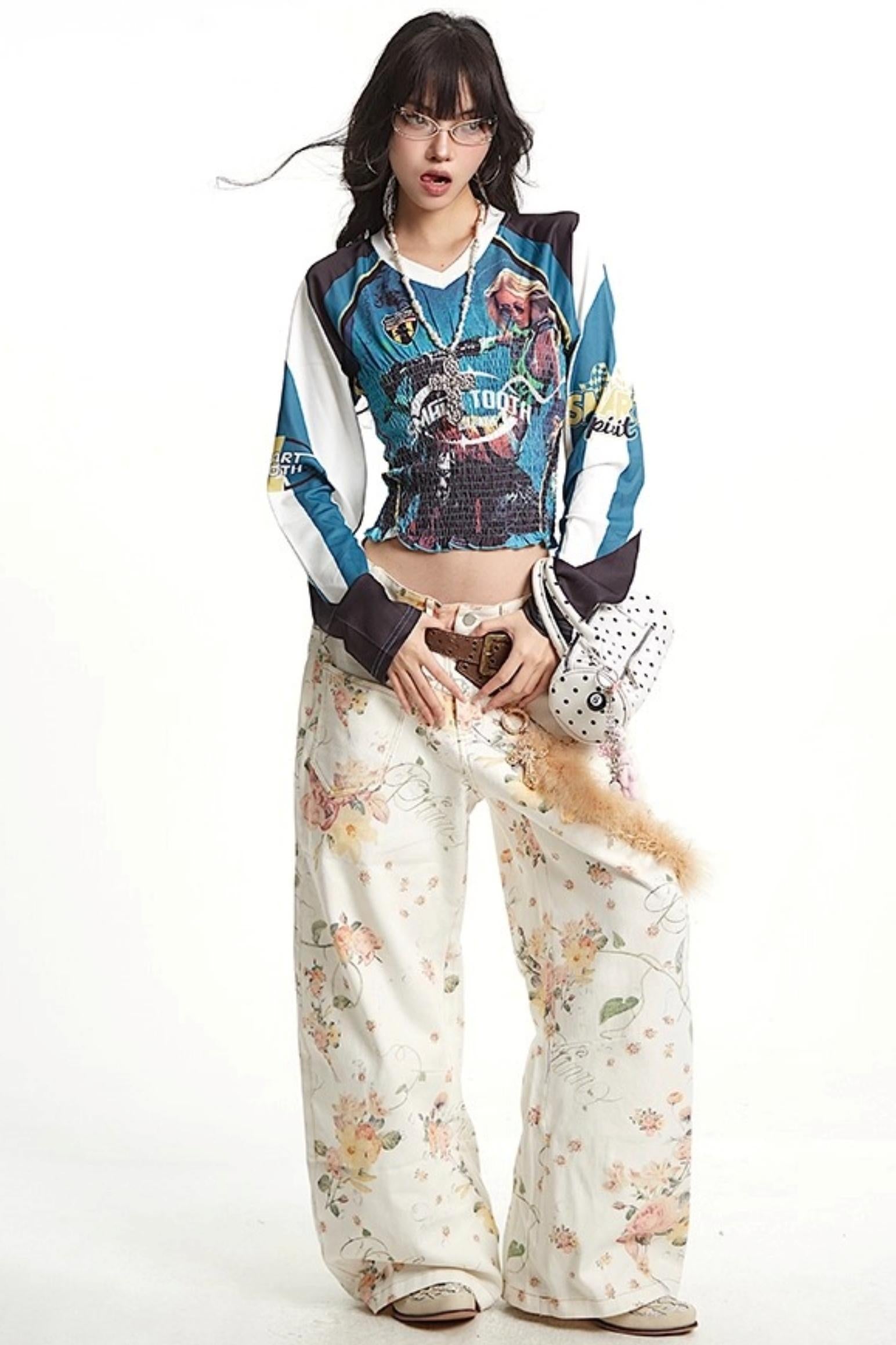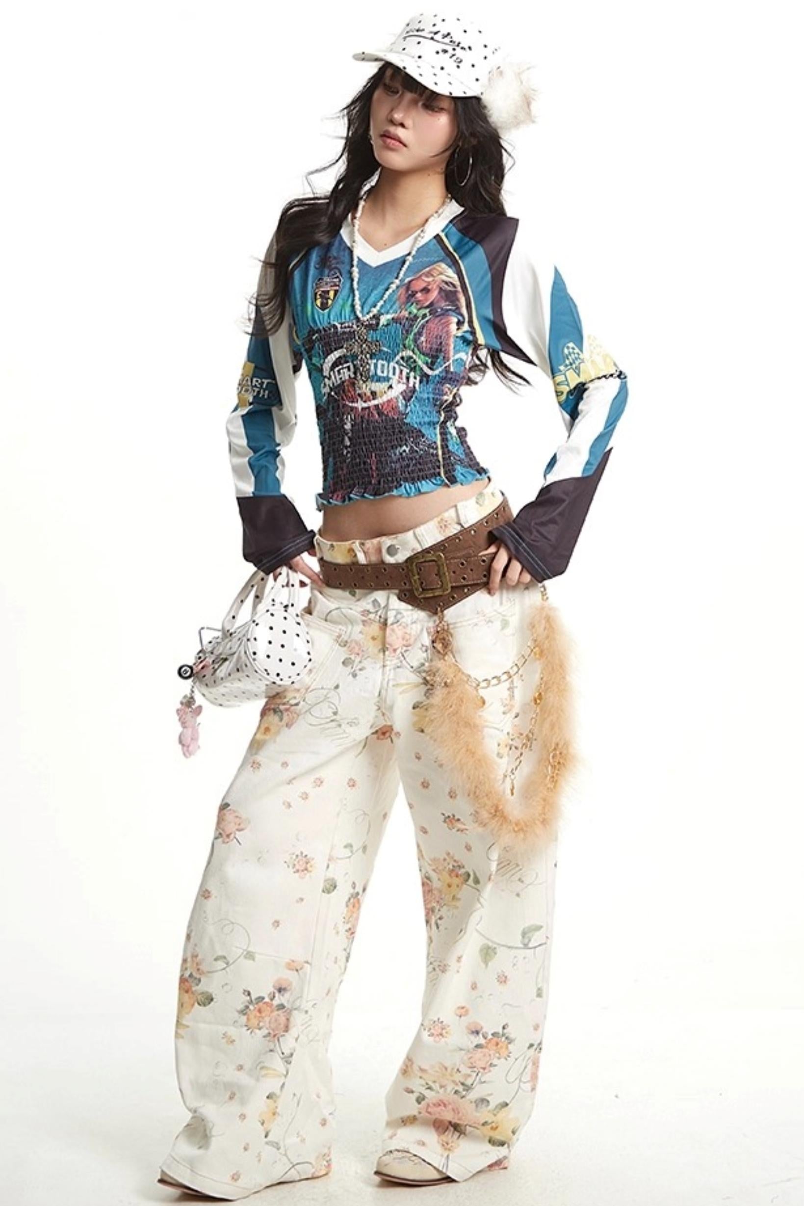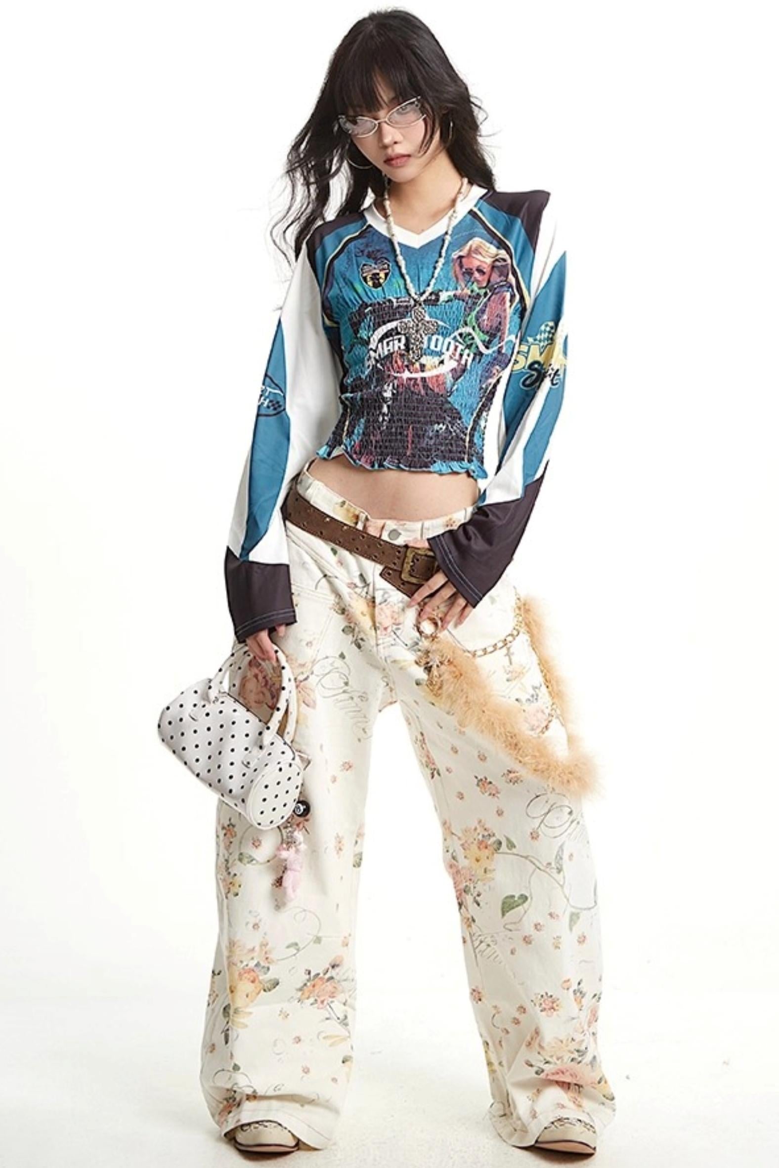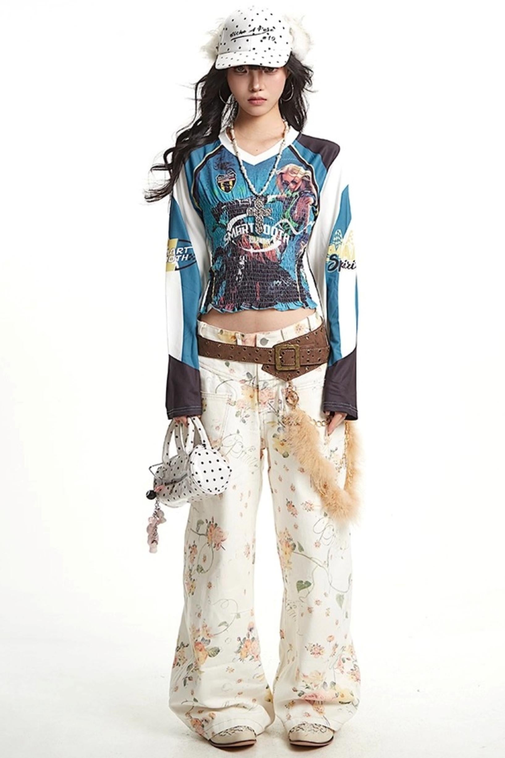 Vintage Pleated Jersey Long Sleeve T-Shirt