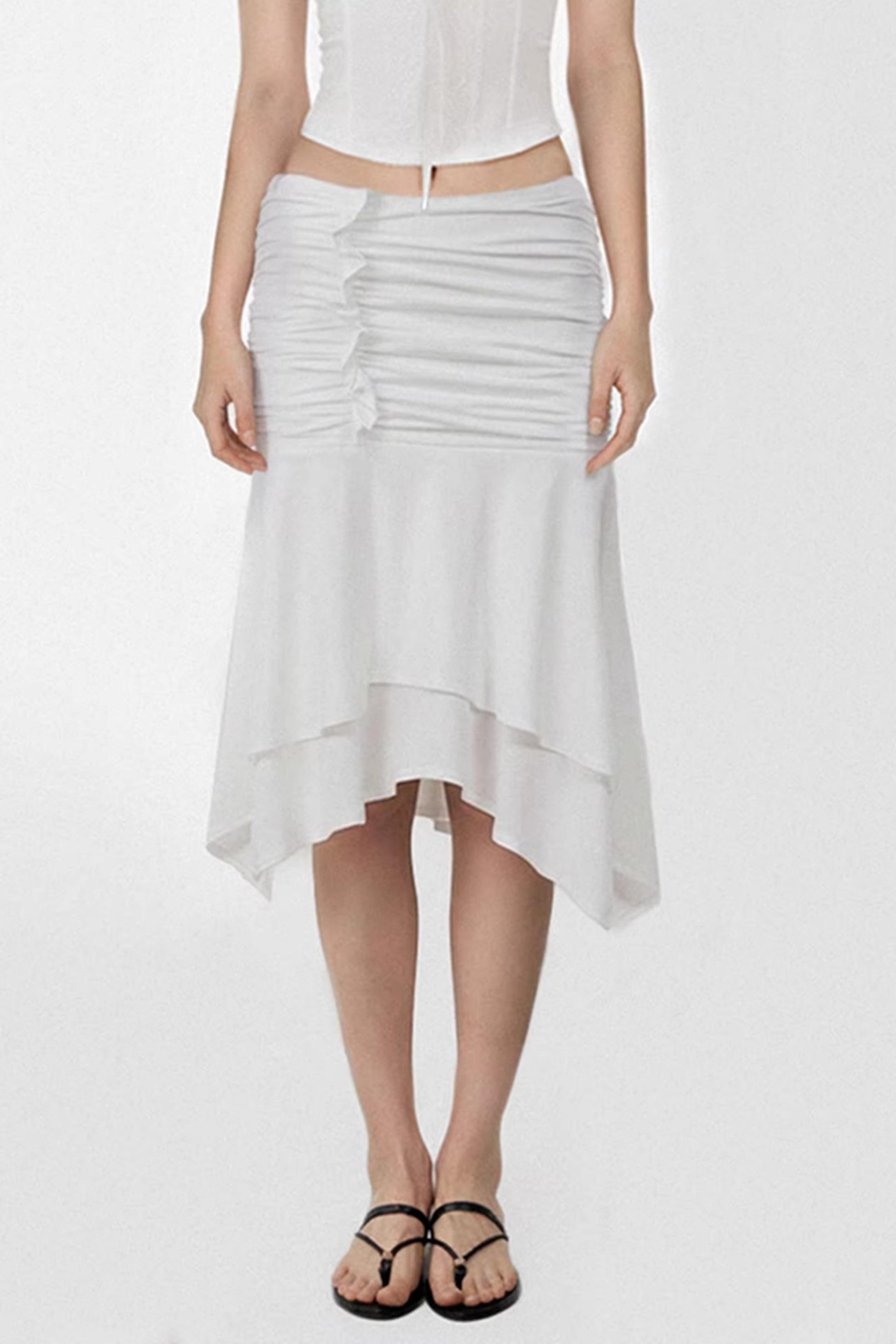 White Pleated Asymmetrical Skirt
