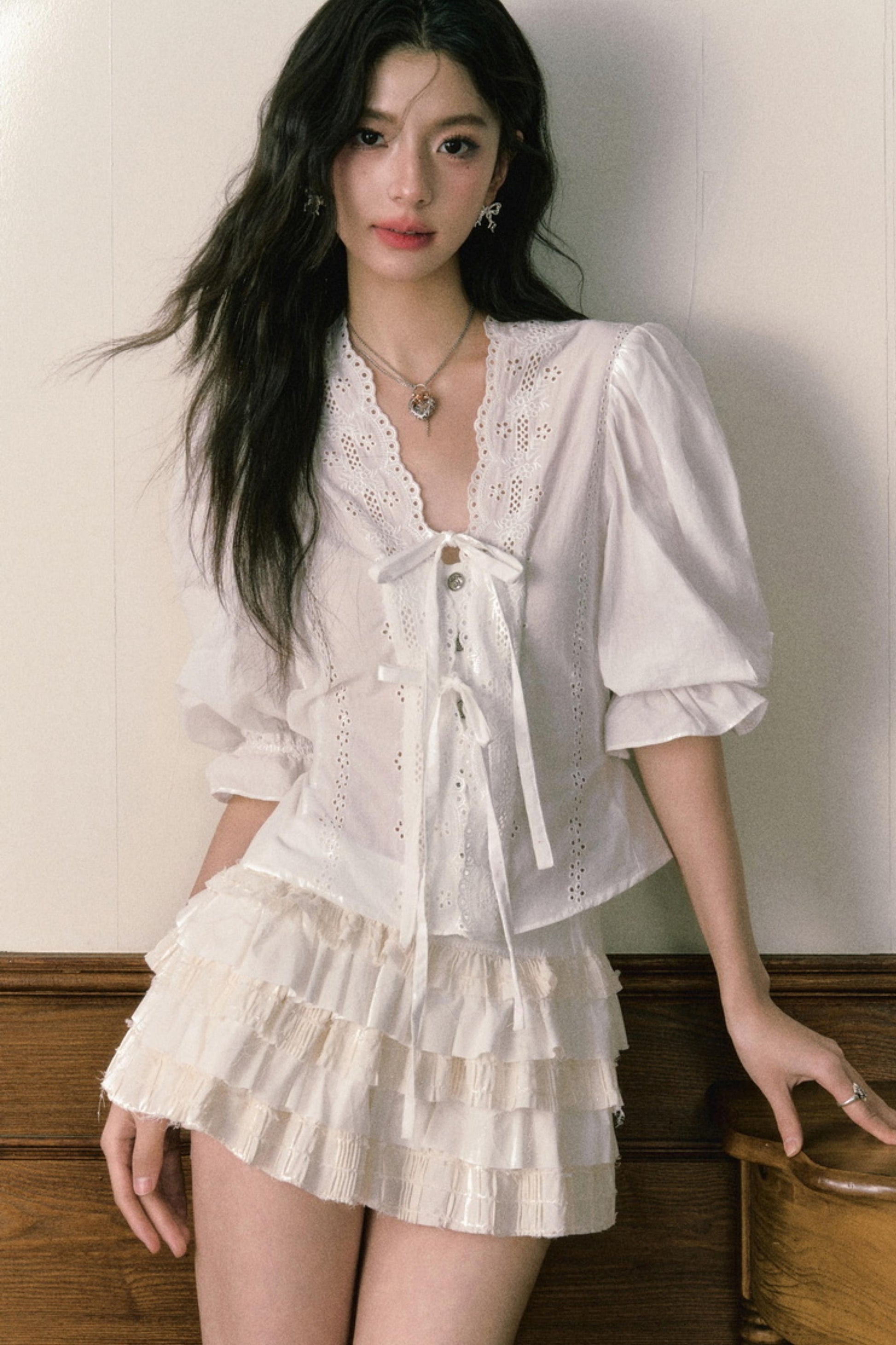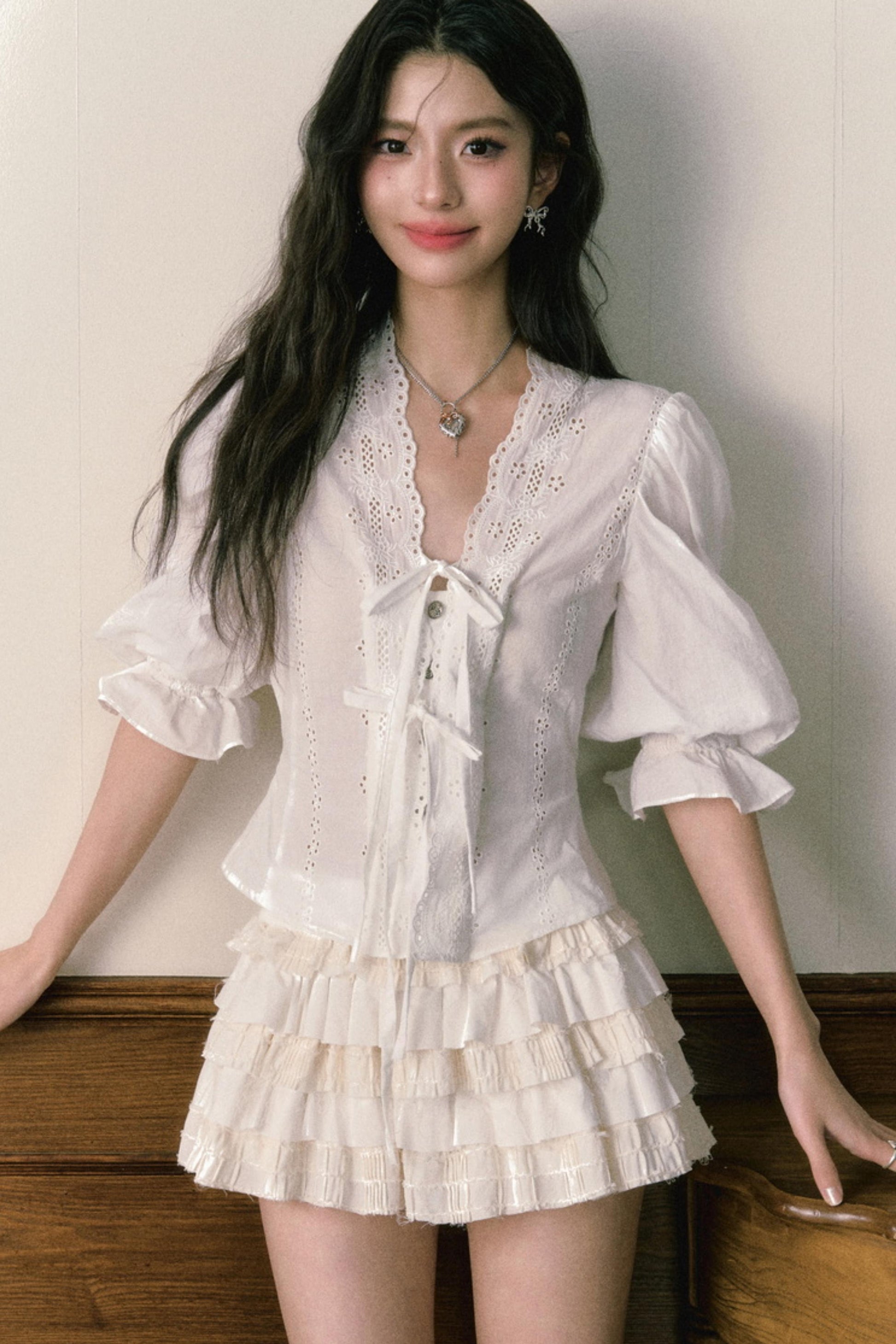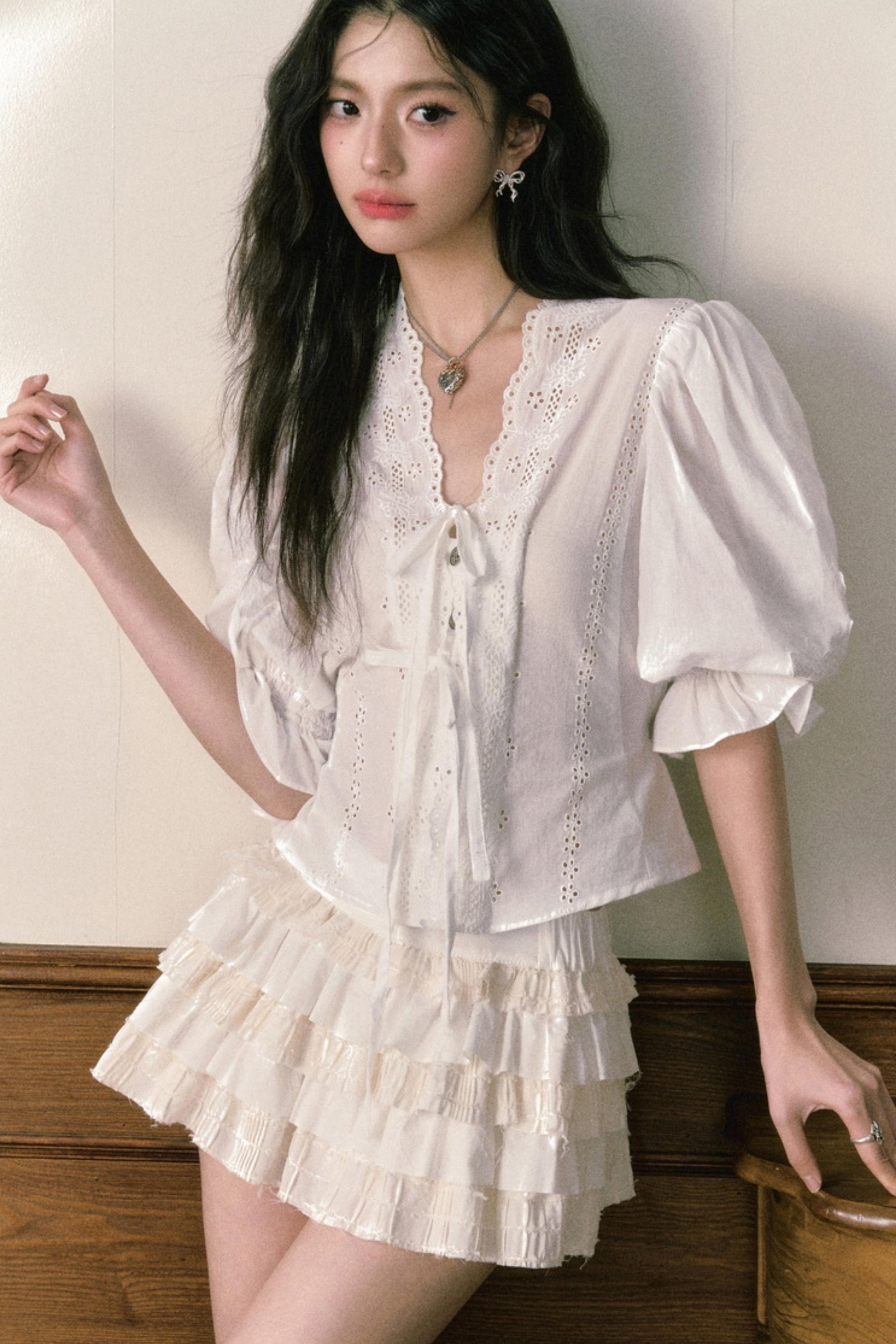 Bubble Sleeve Two Piece Cake Skirt Set-Up