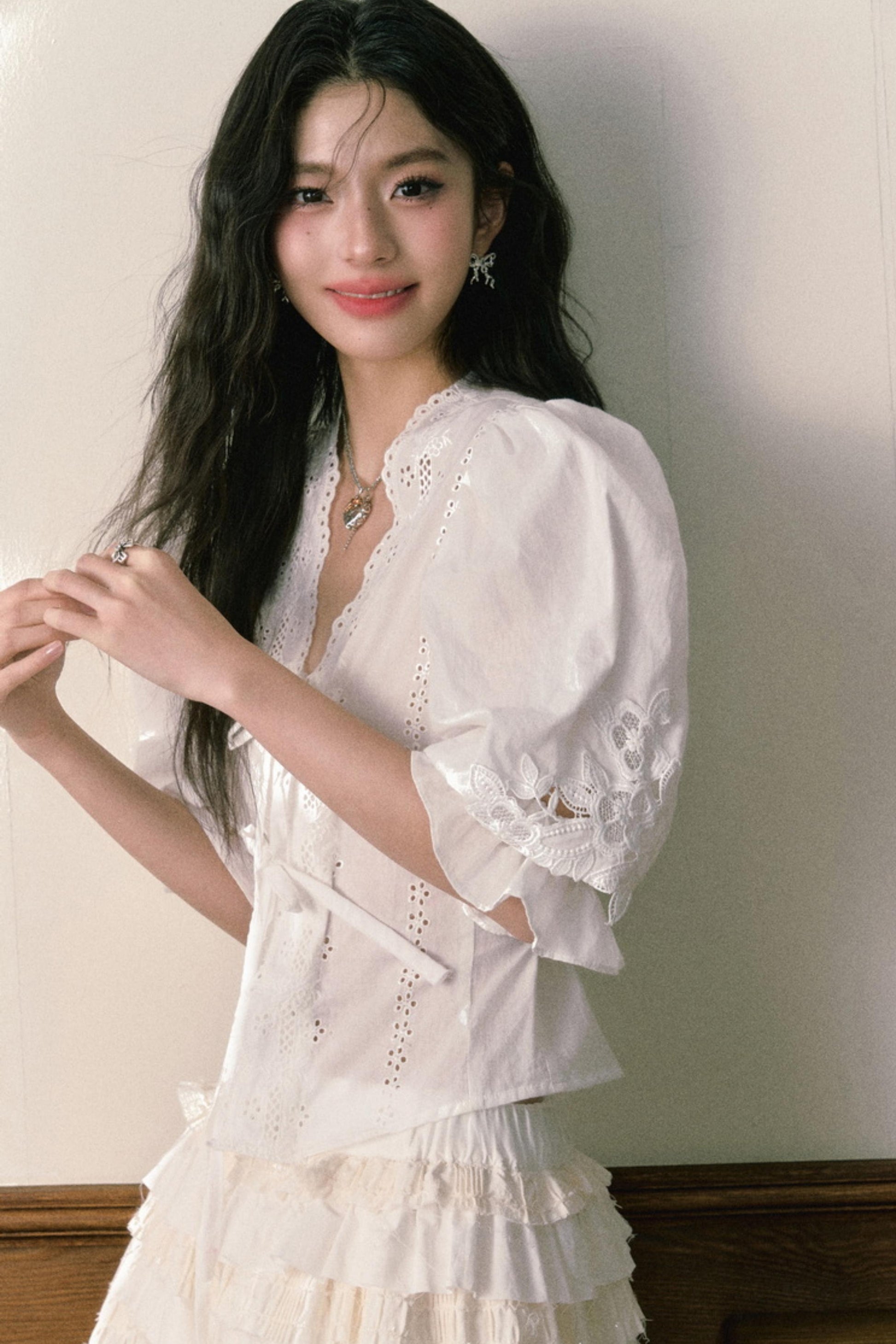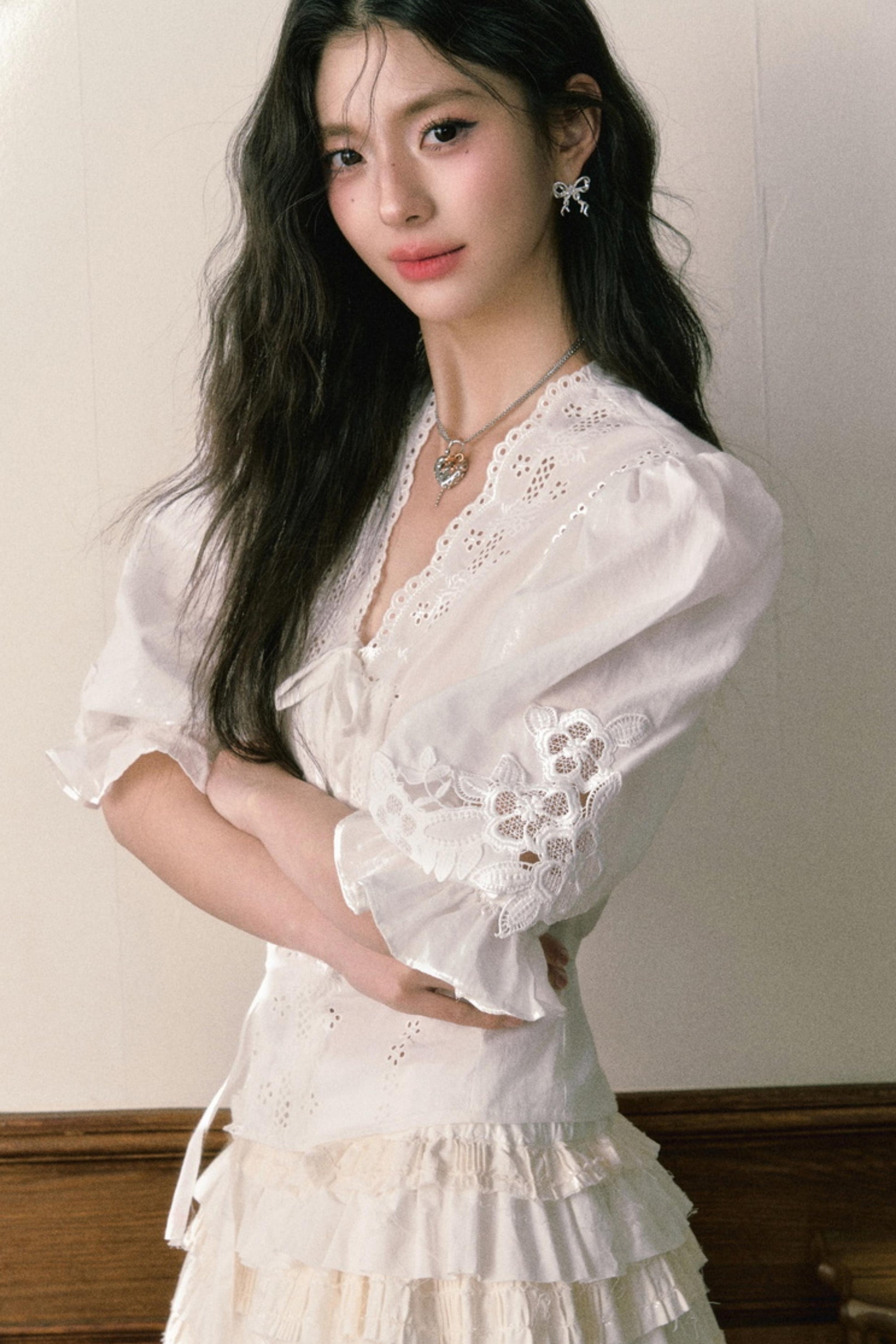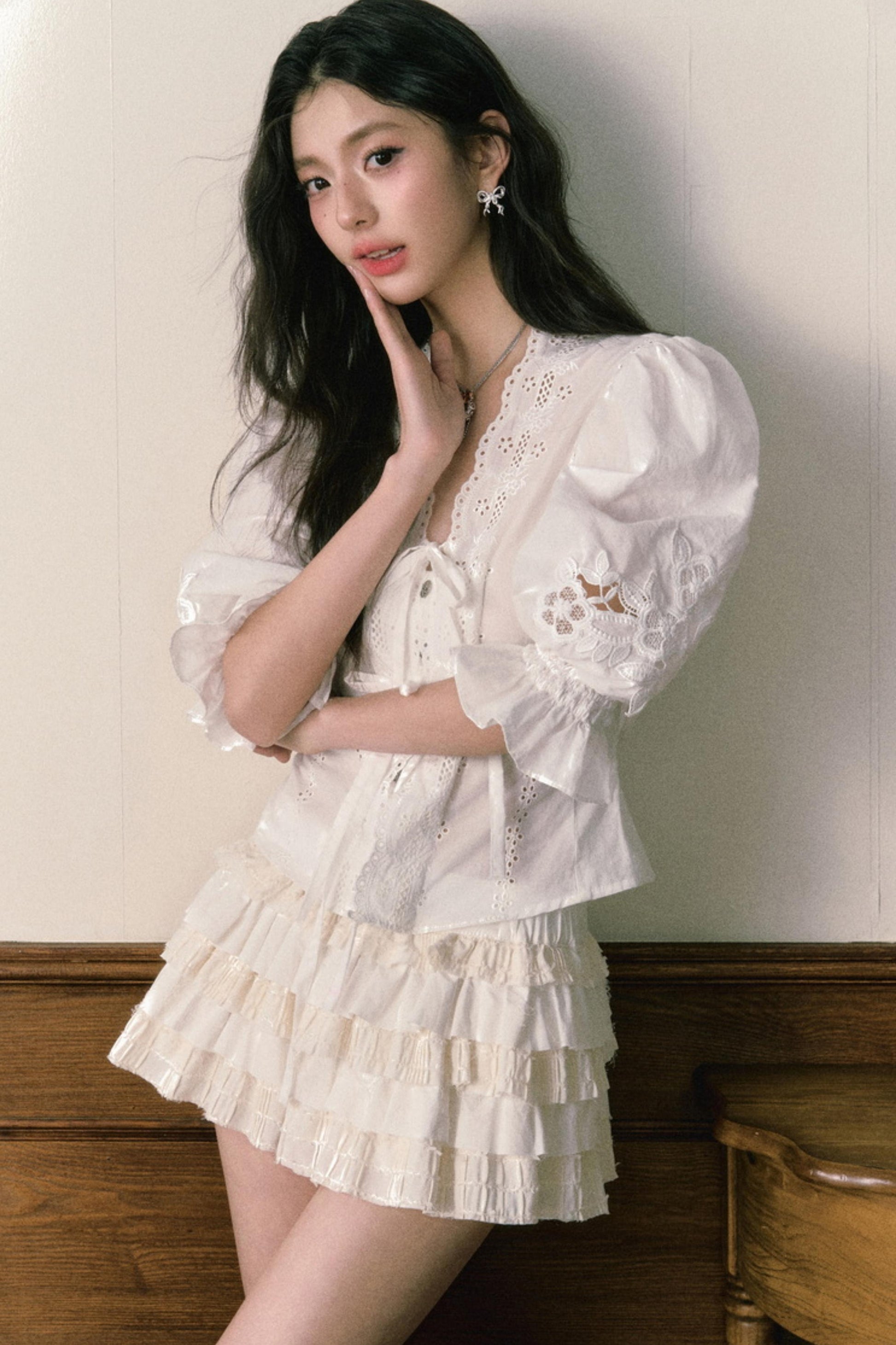 Bubble Sleeve Two Piece Cake Skirt Set-Up