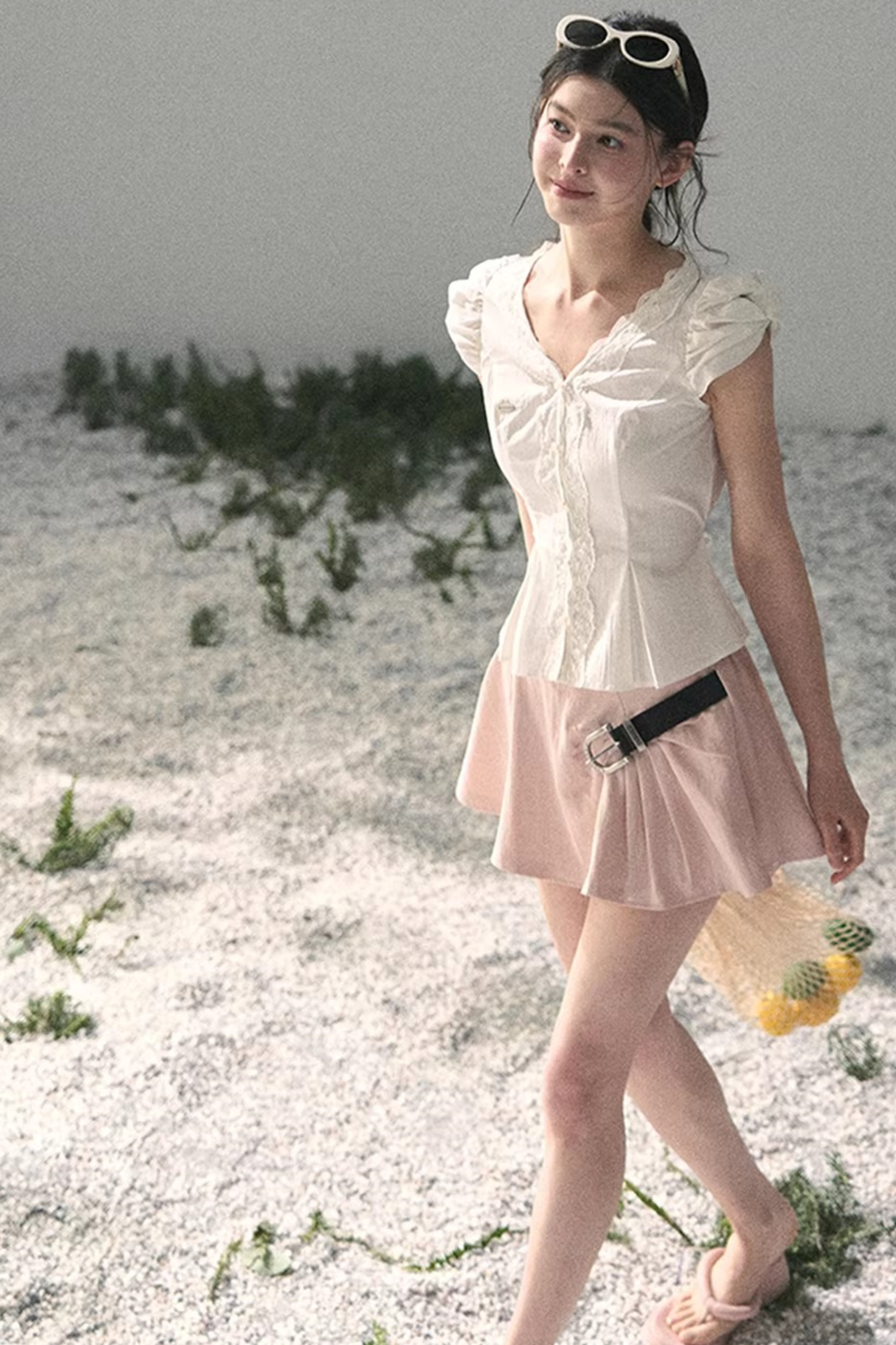 French V-Neck Lace Blouse