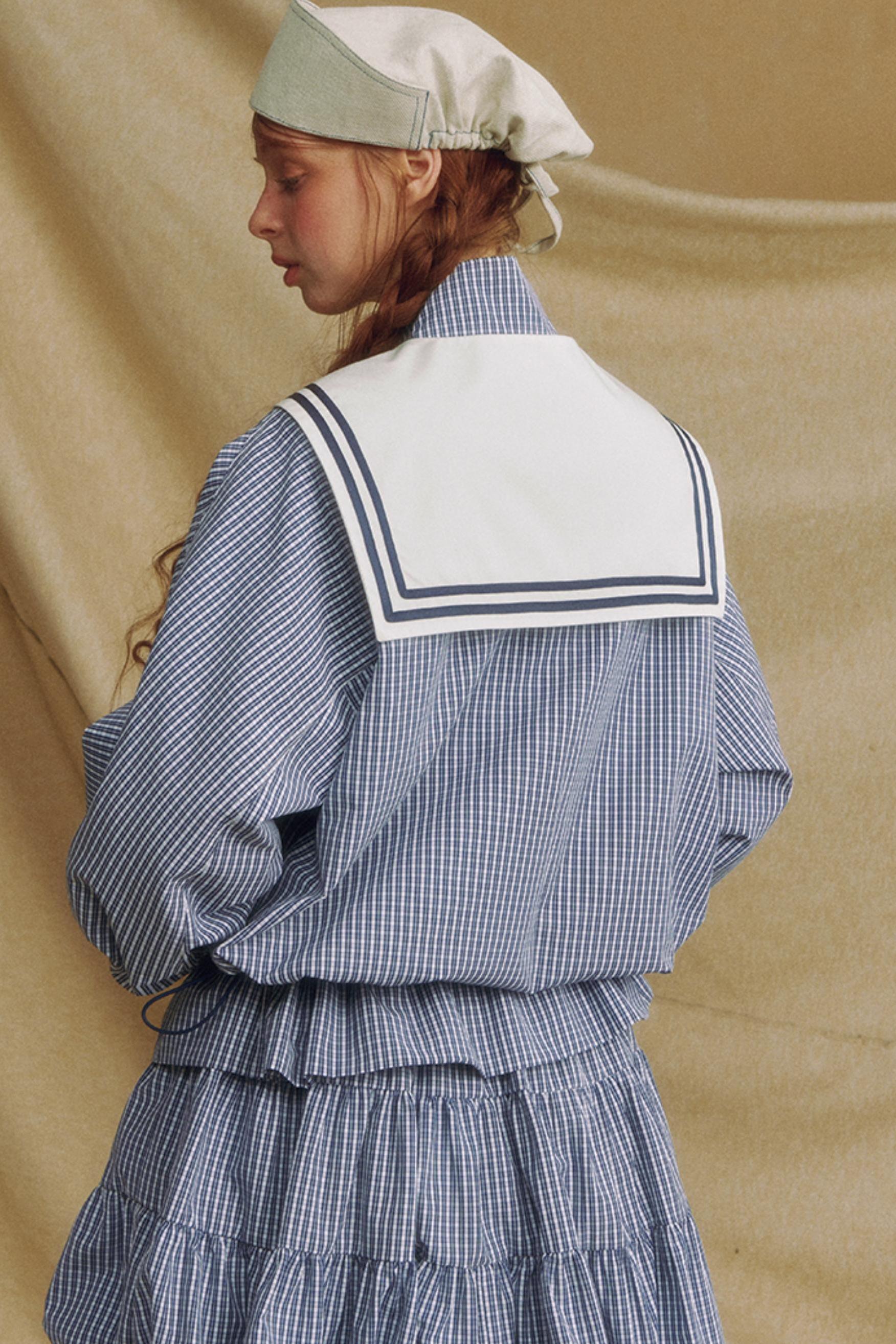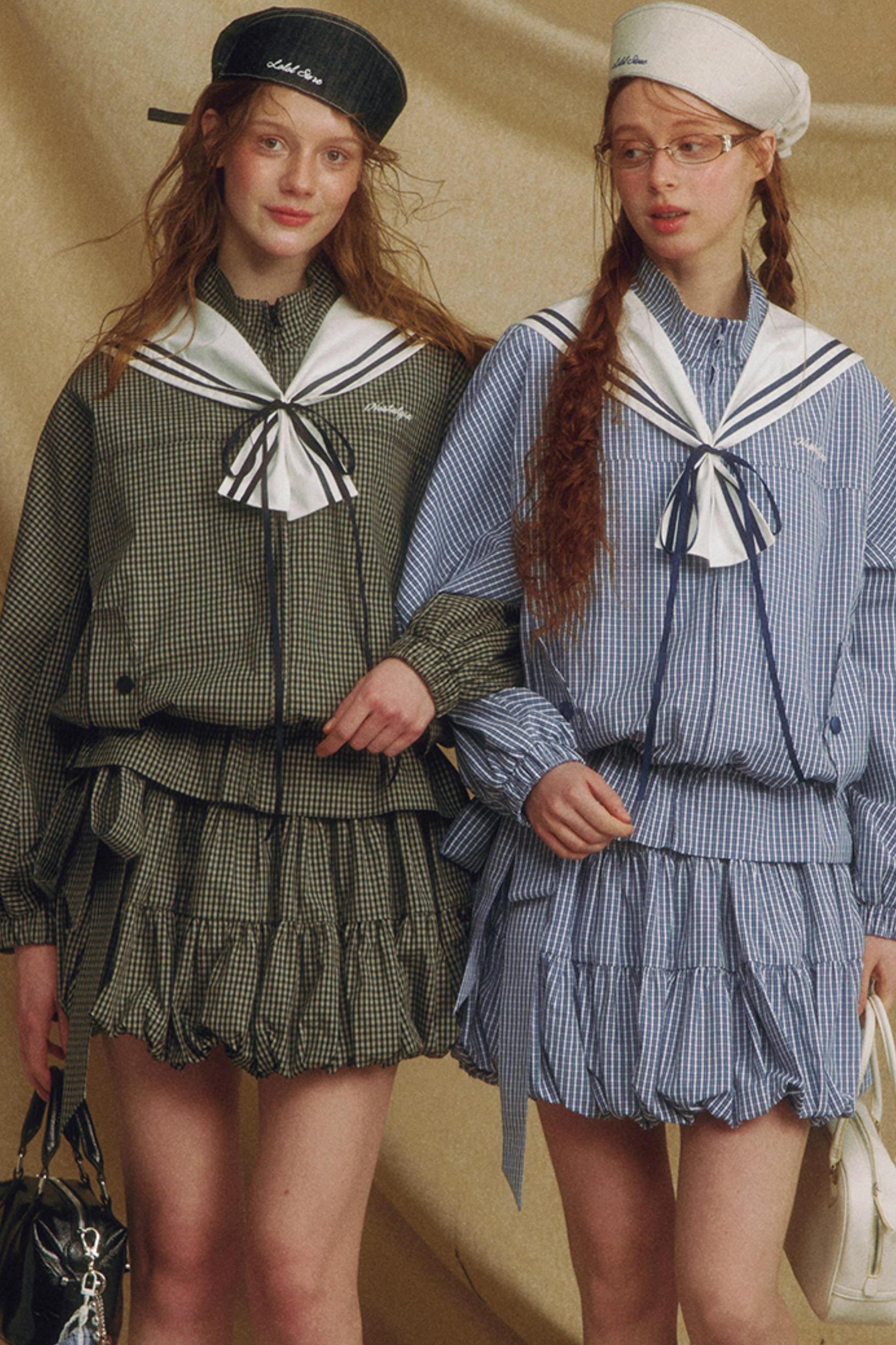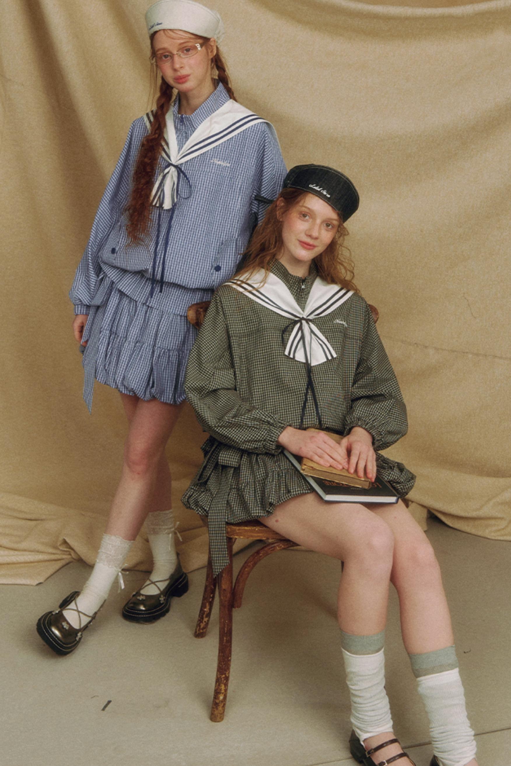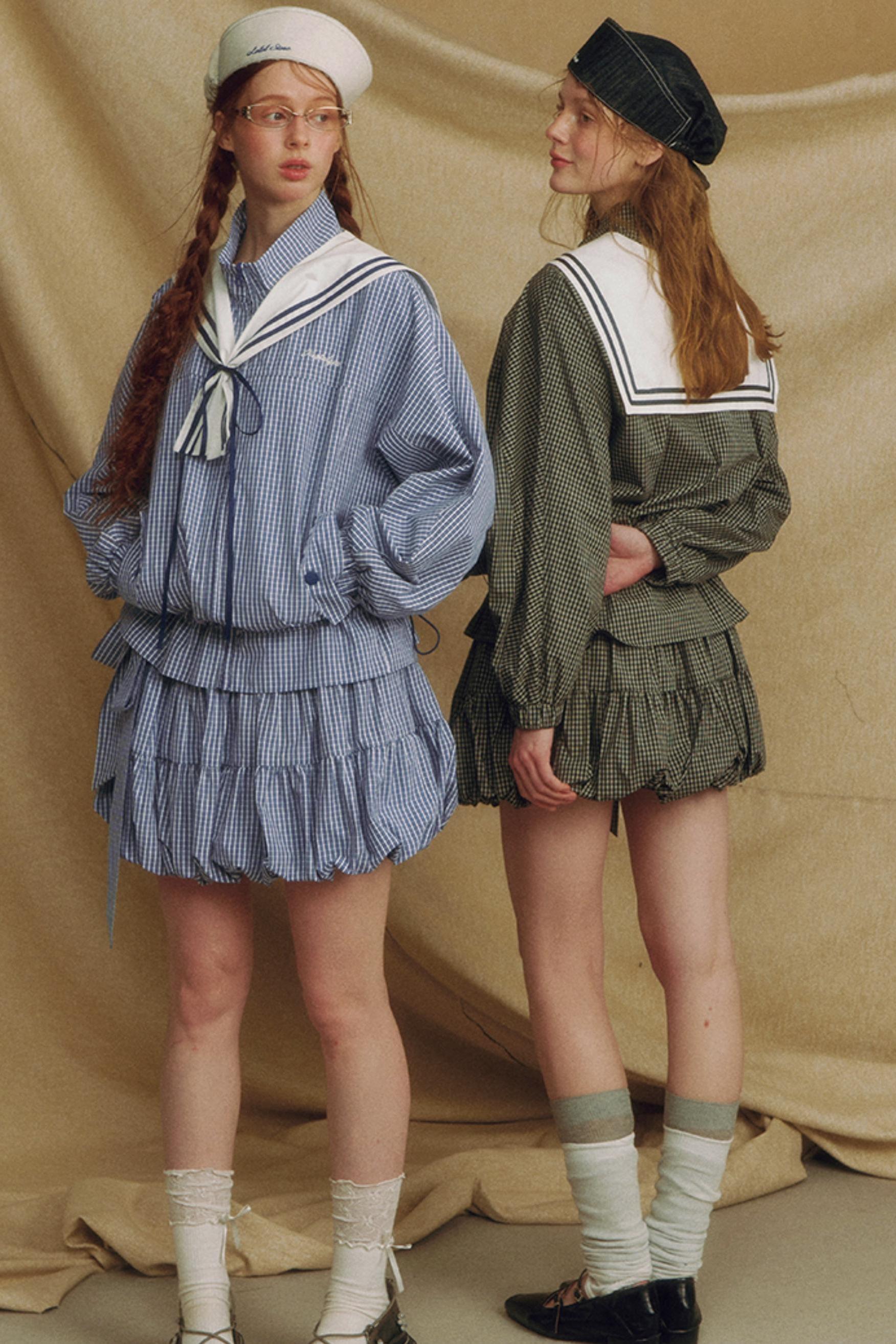 Navy Collar Plaid Jacket Set-Up