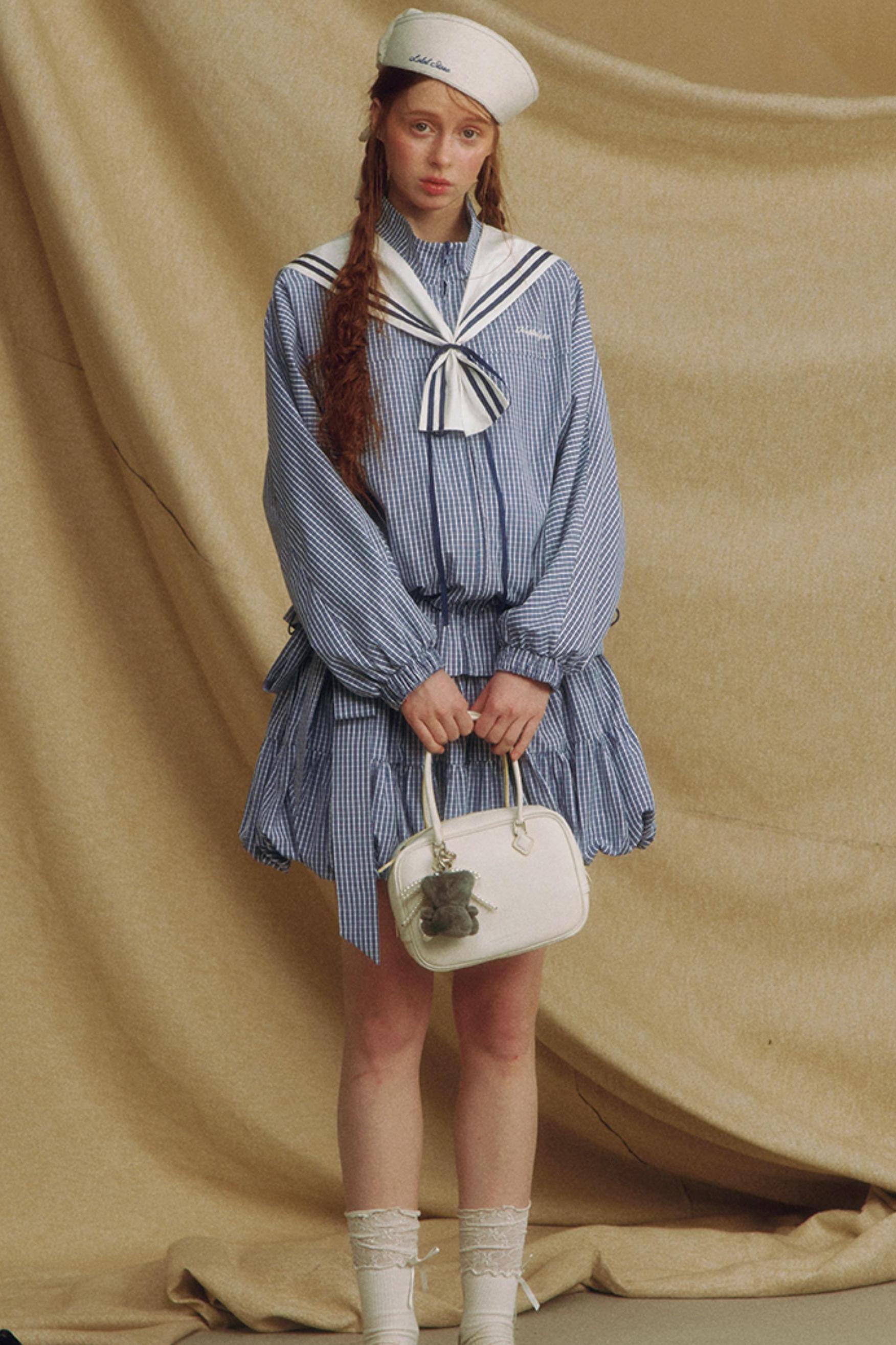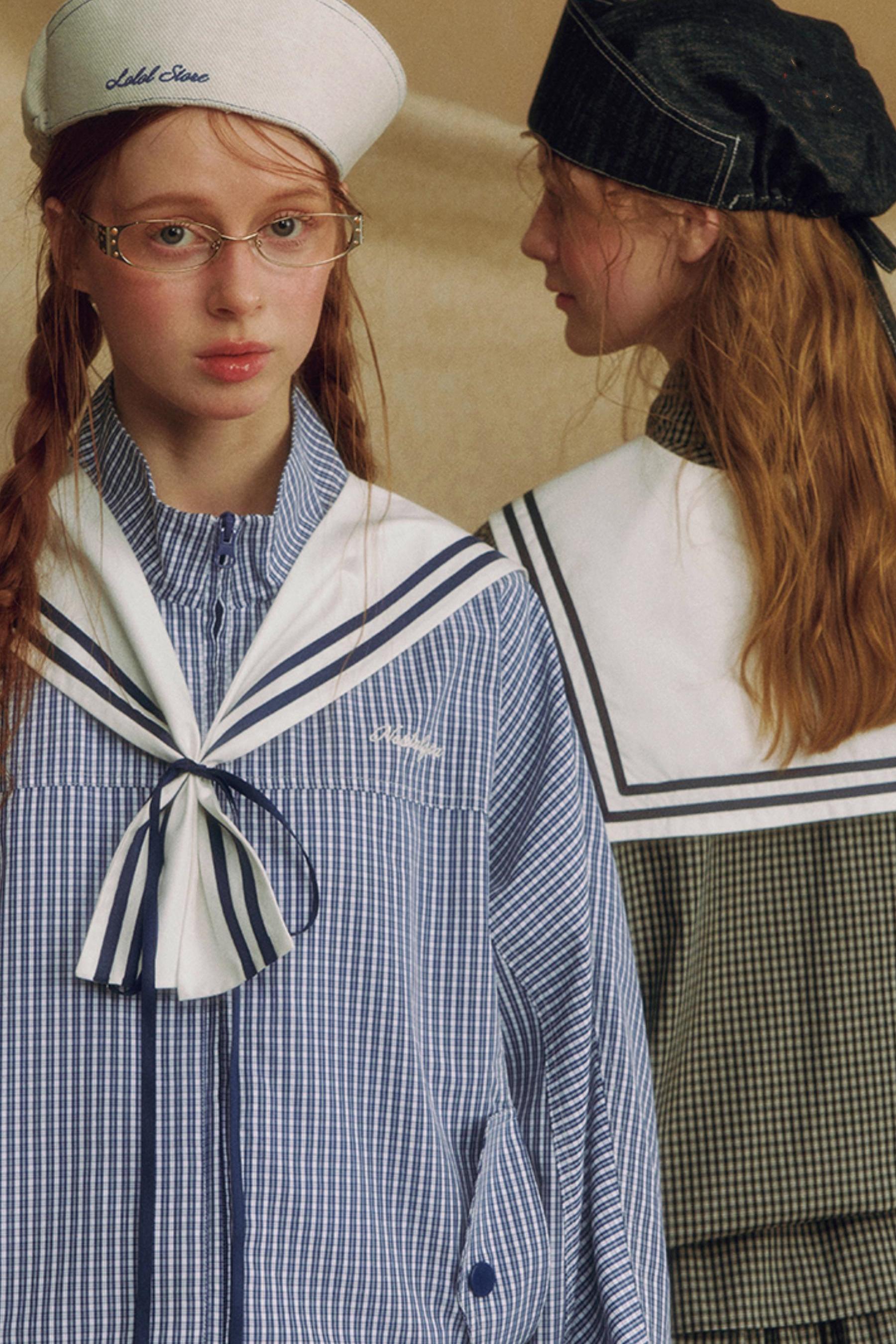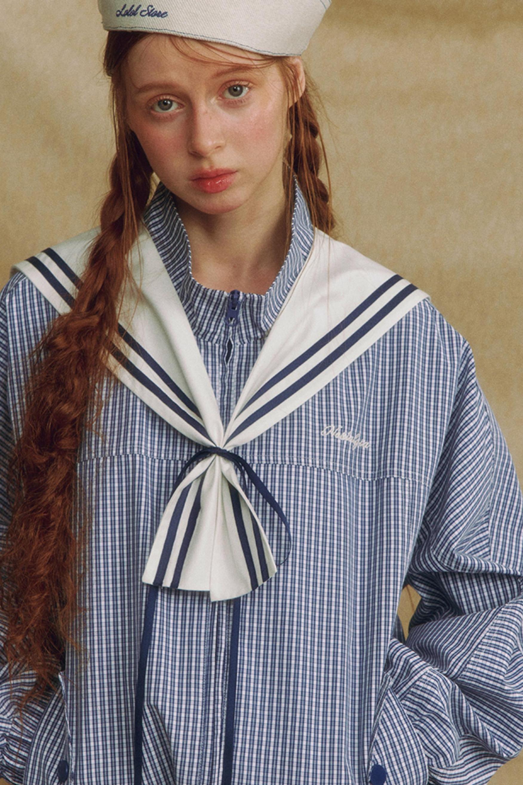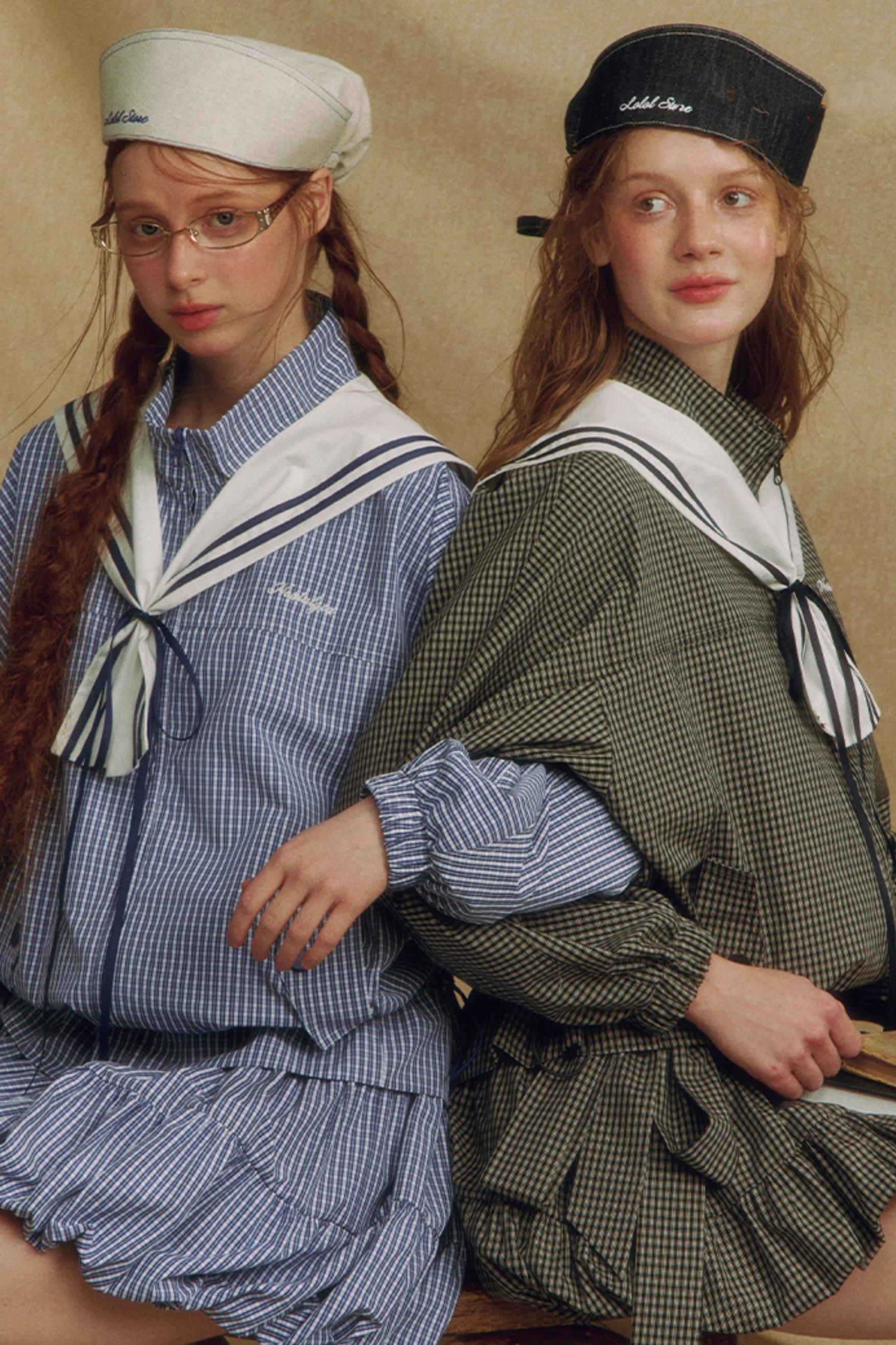 Navy Collar Plaid Jacket Set-Up