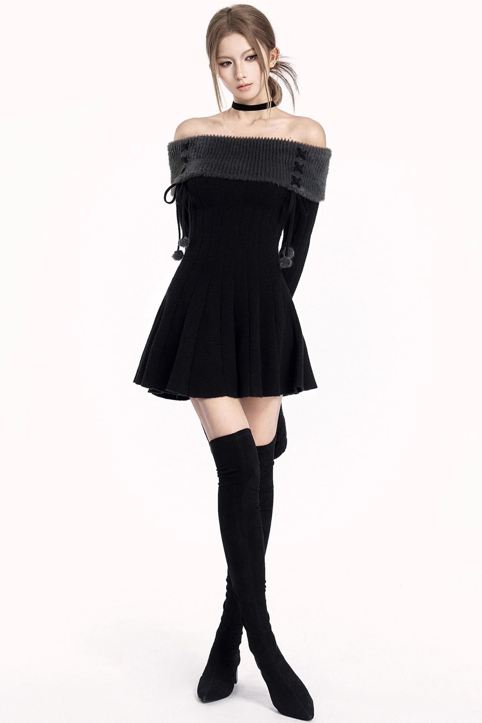 Off-Shoulder Winter Sweater Dress