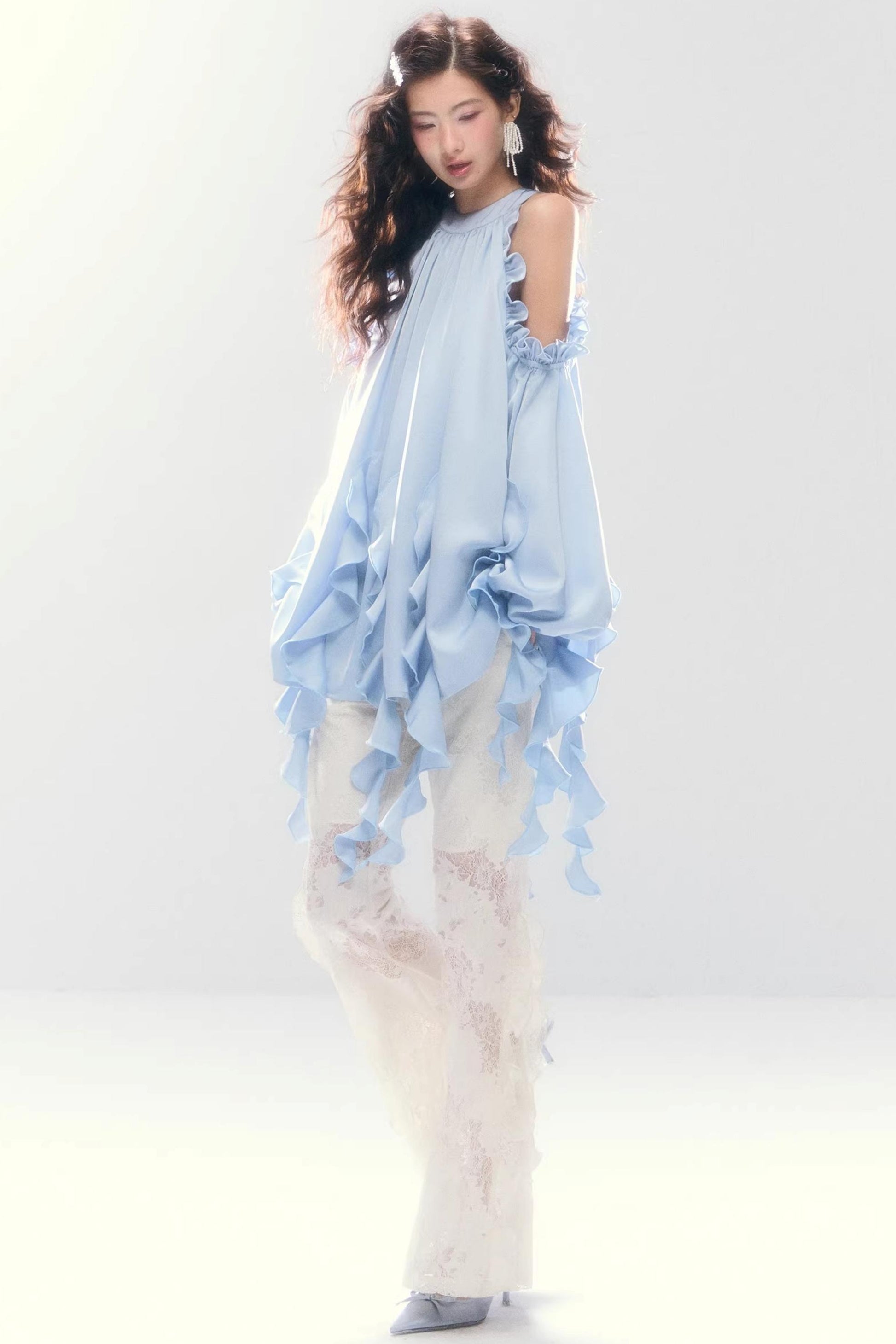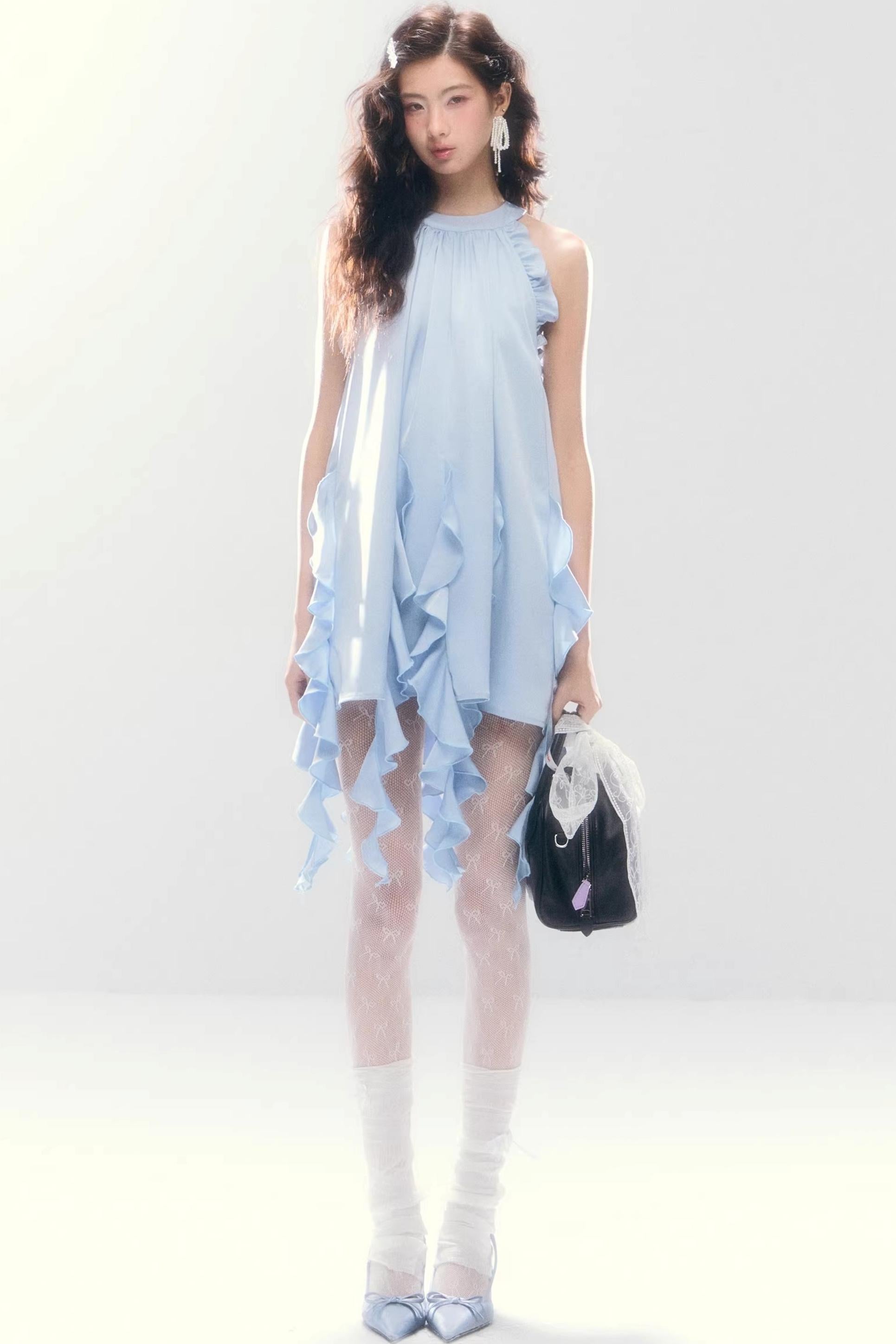 Satin Ruffled Off-Shoulder Dress