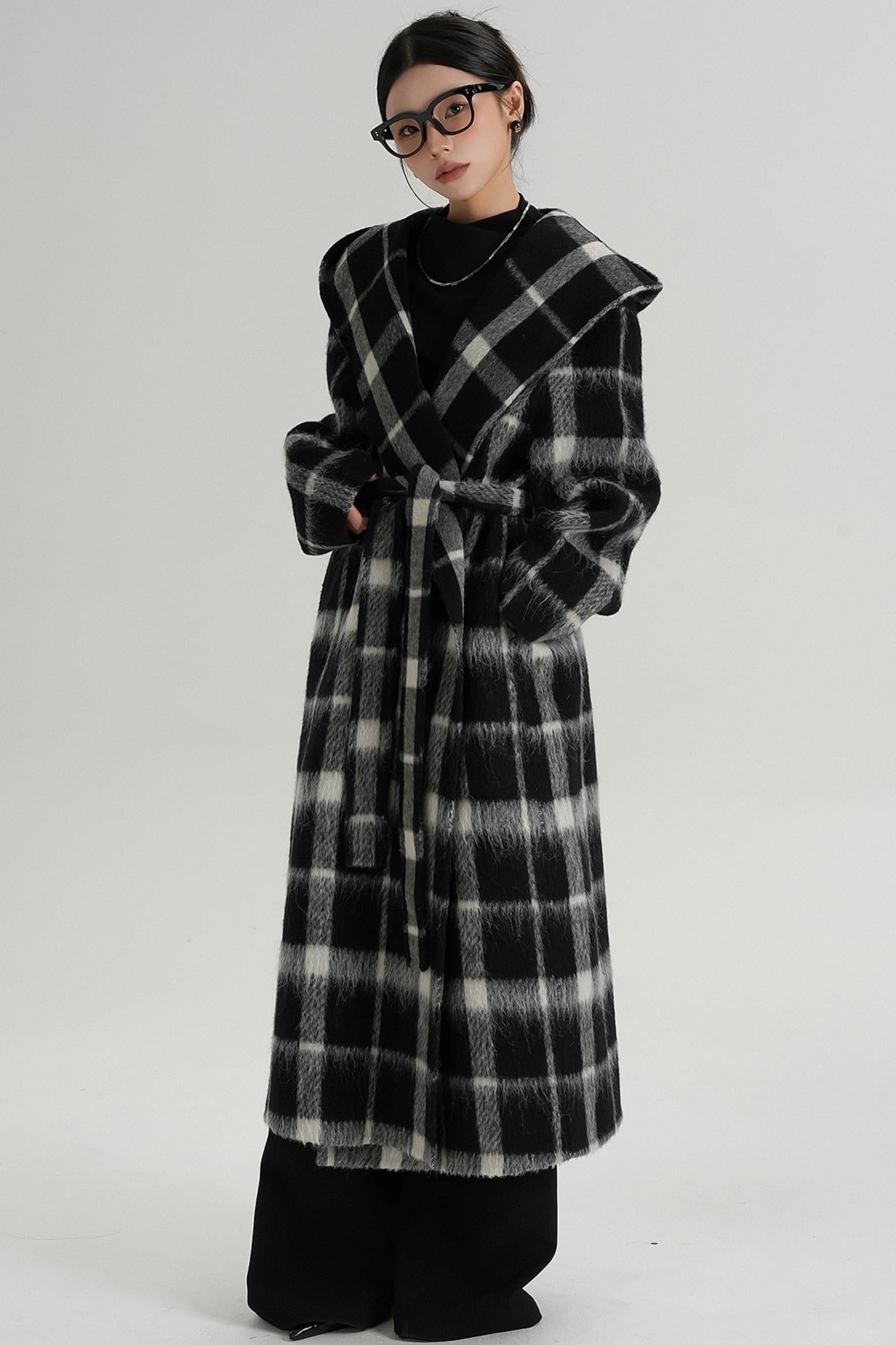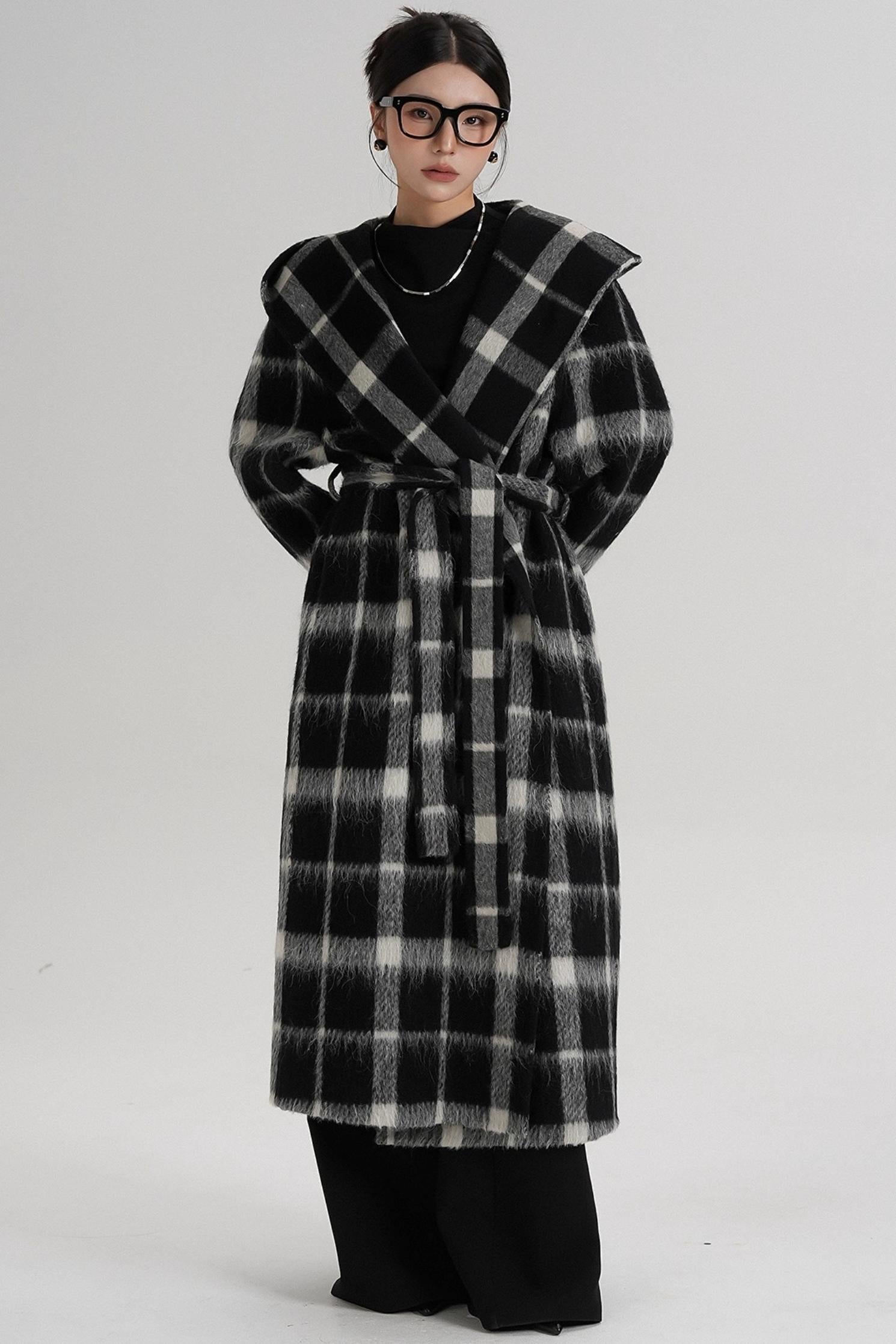 Plaid Alpaca Wool Coat