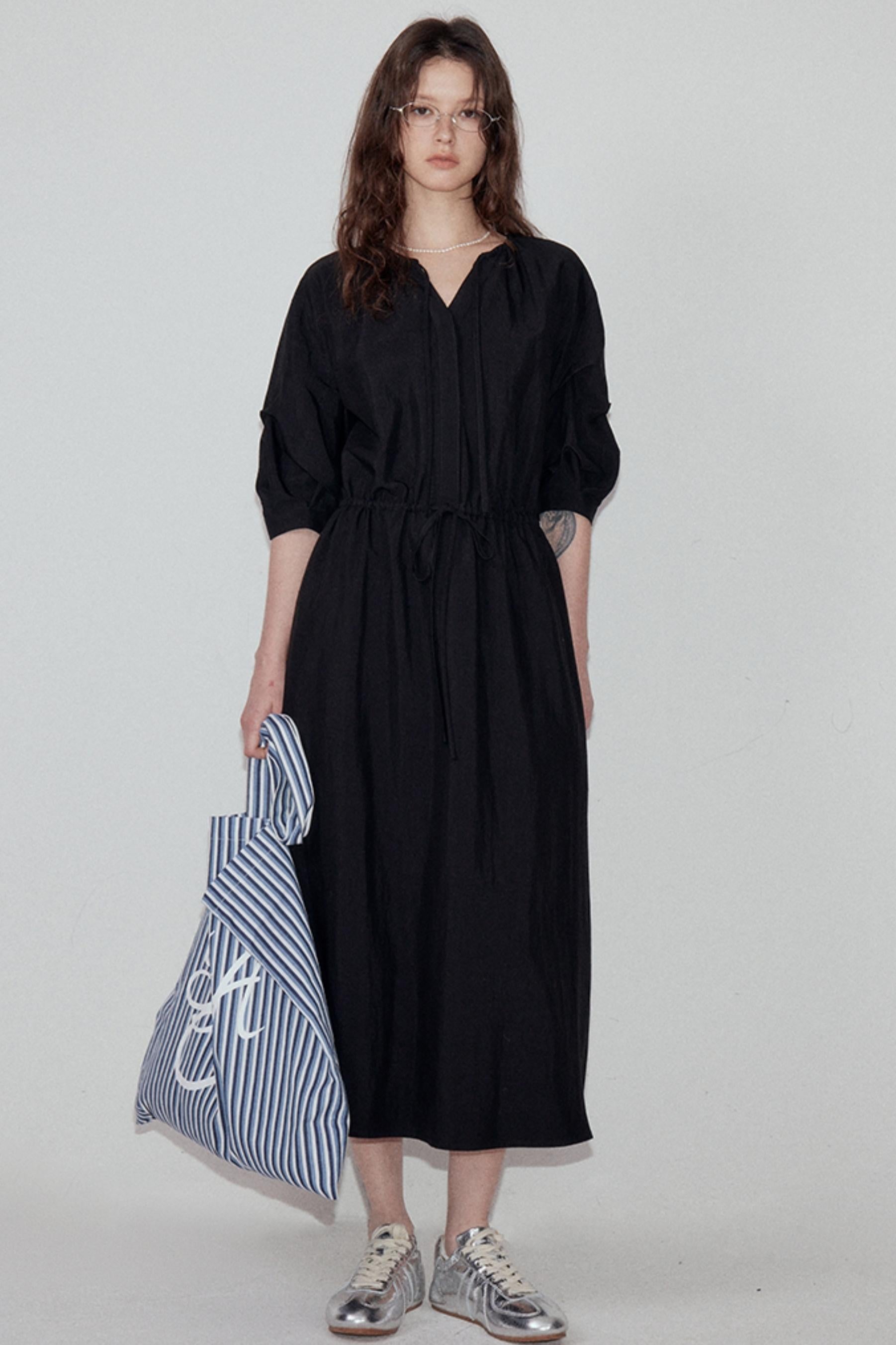 V-Neck Pleated Sleeve Dress