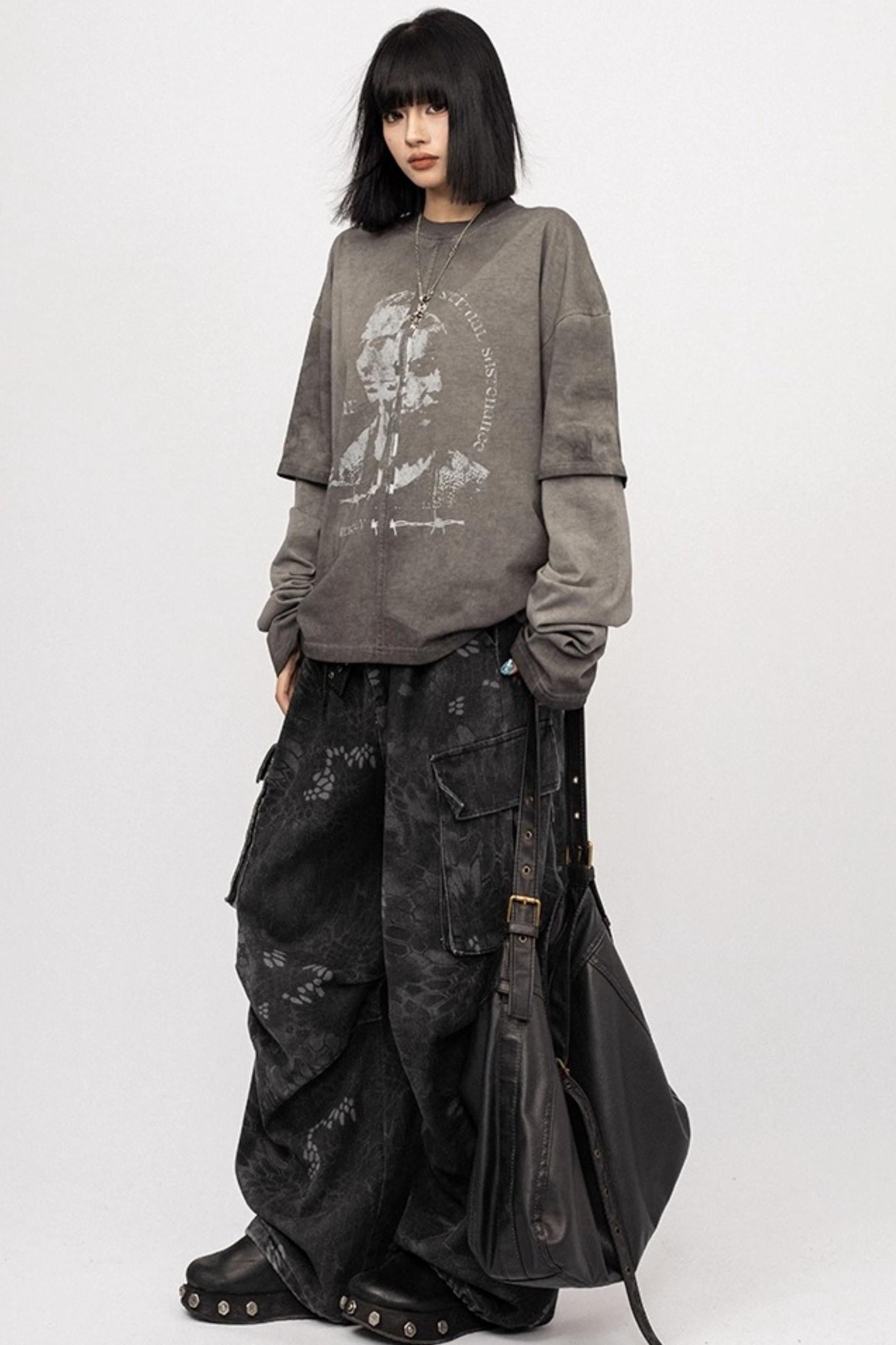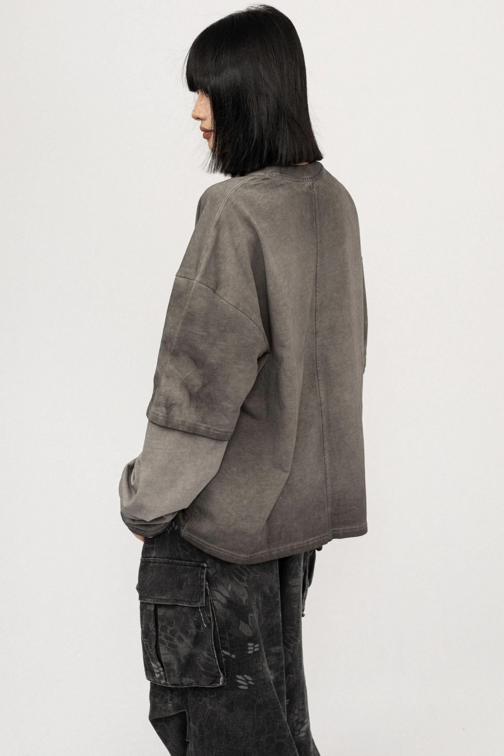 Vintage Distressed Gray Long Sleeve T-Shirt