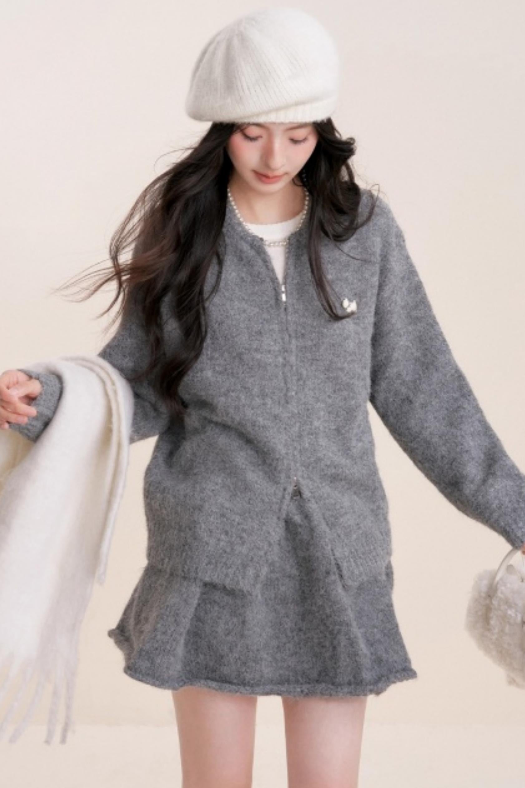Winter Gray Knitted Cardigan Set-Up