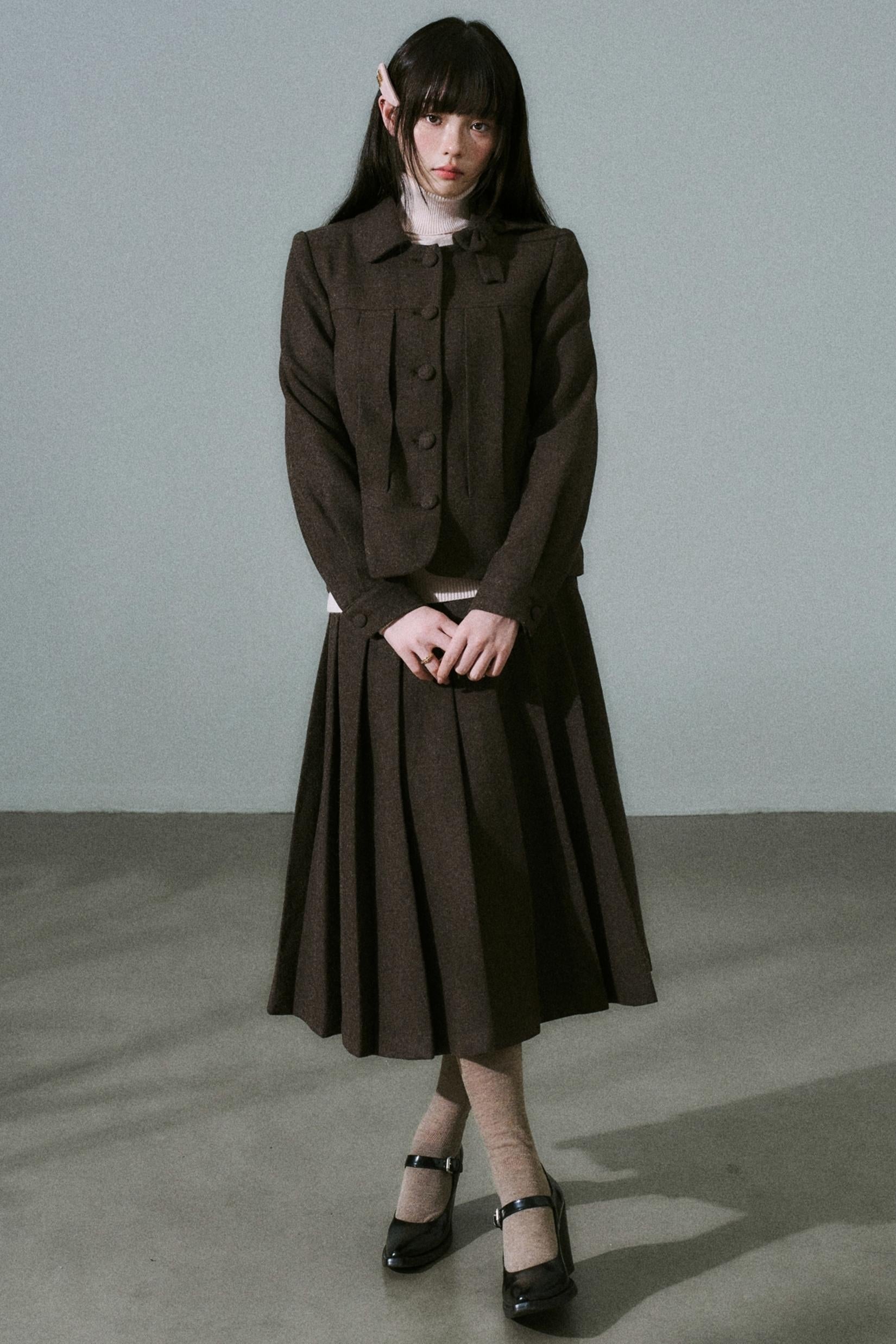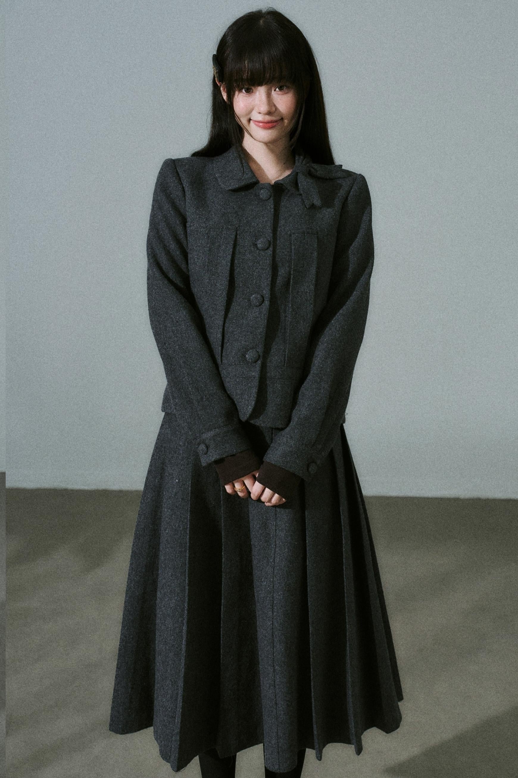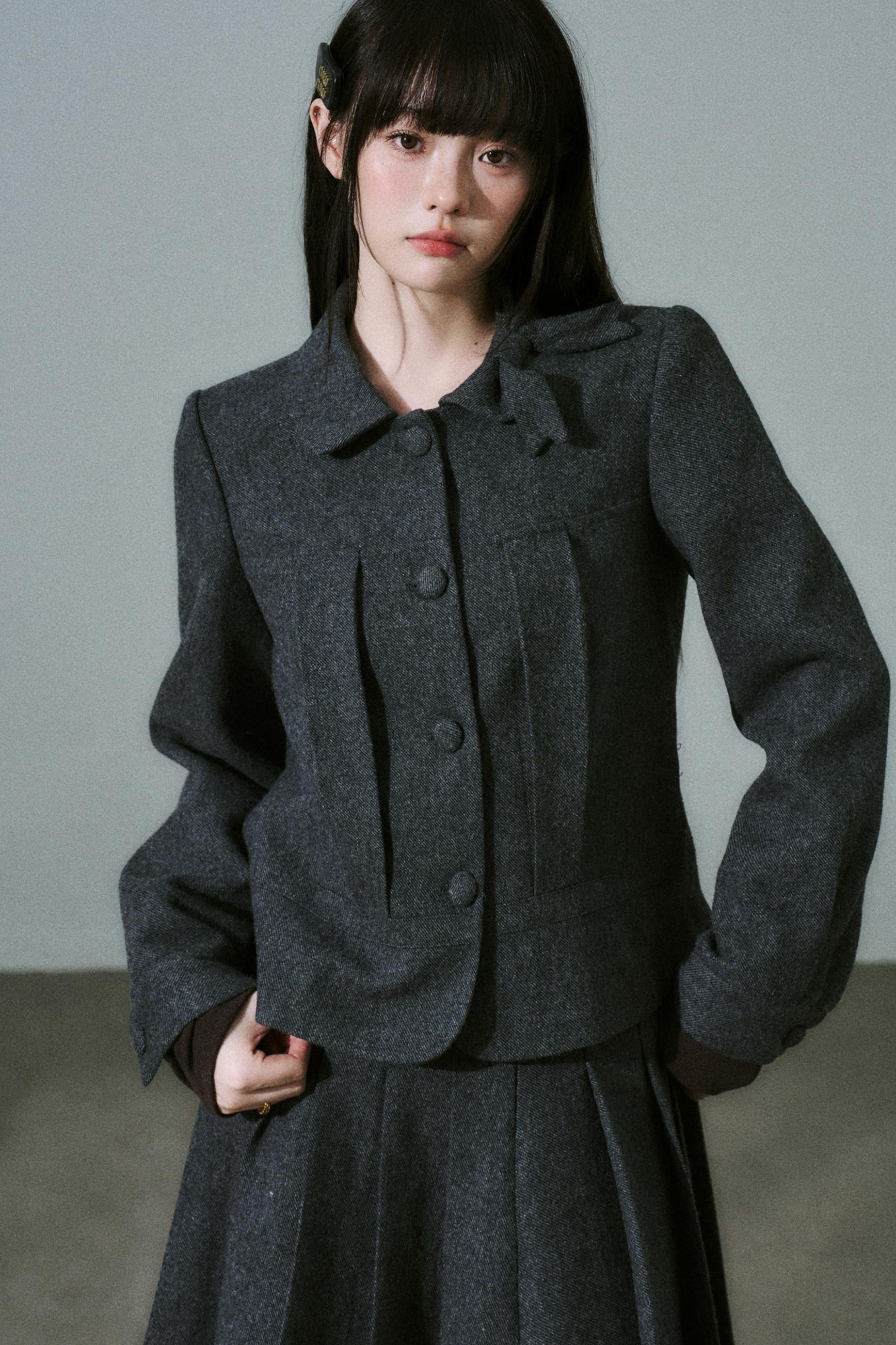 Wool Bow Tie Blazer Suit & Skirt Set-Up