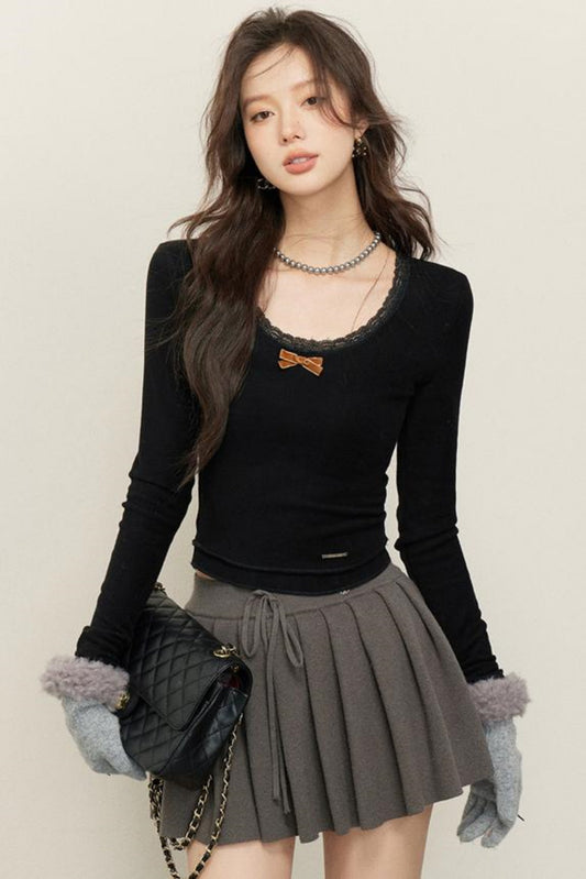 French Chain Sleeve Knit Top