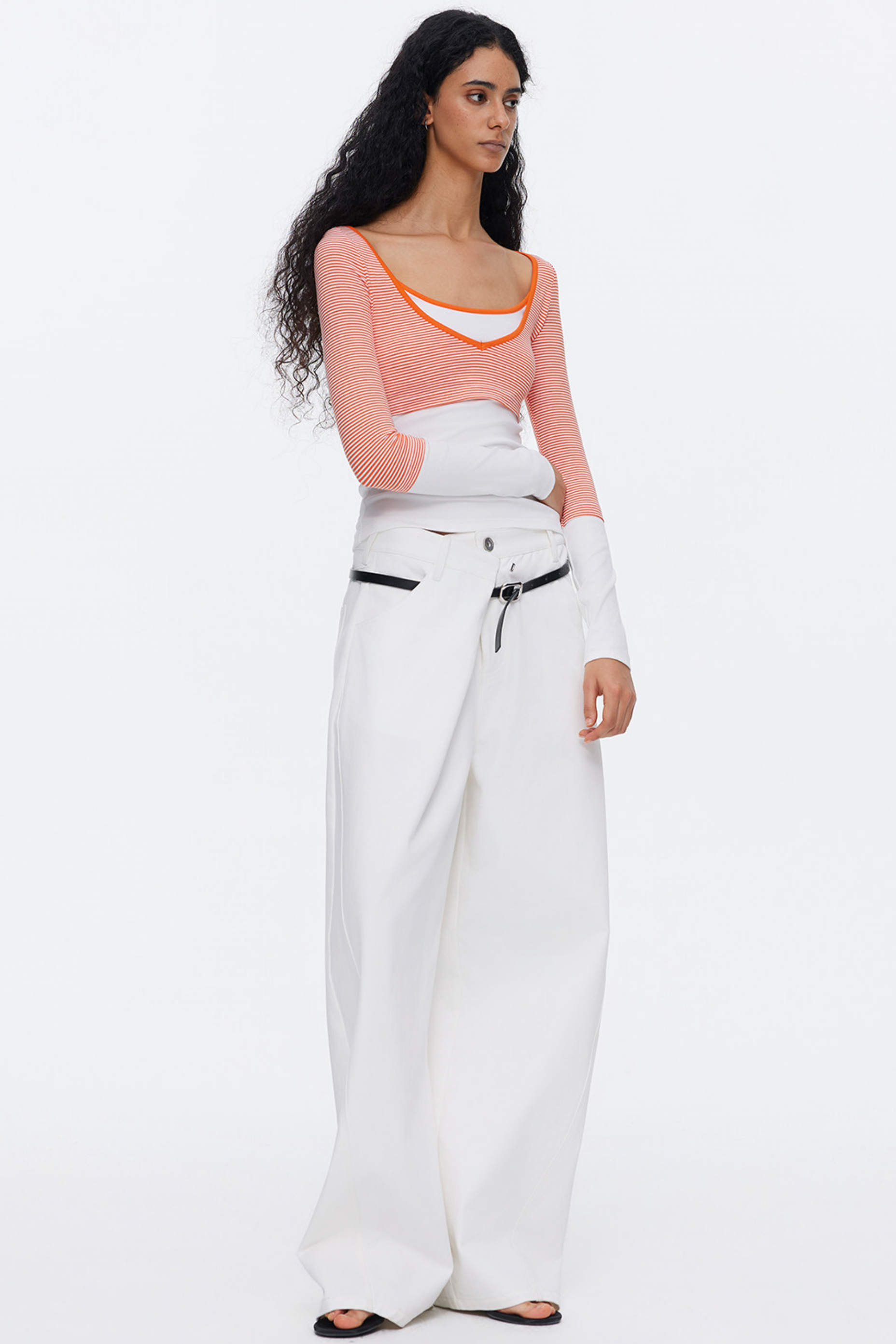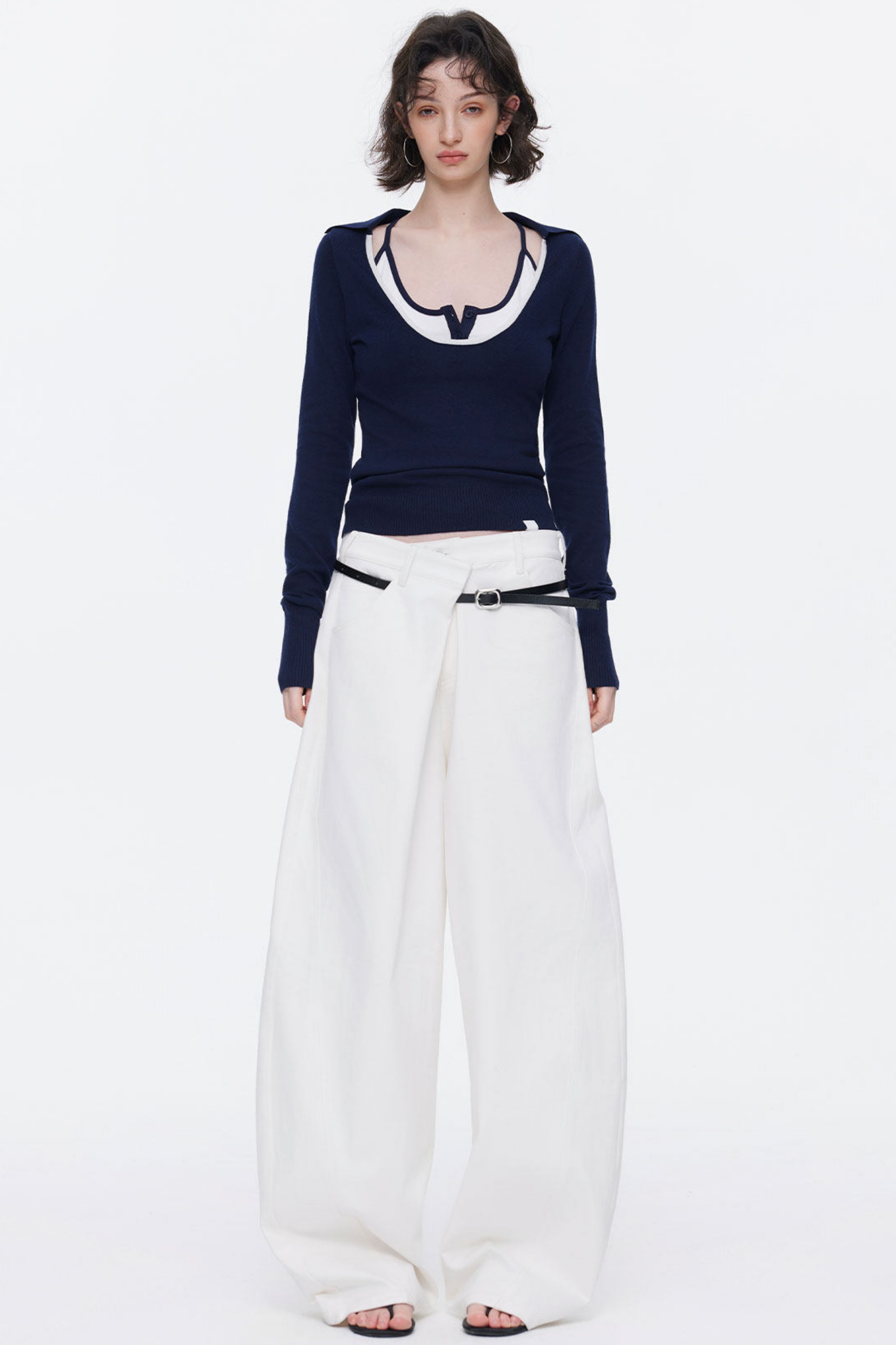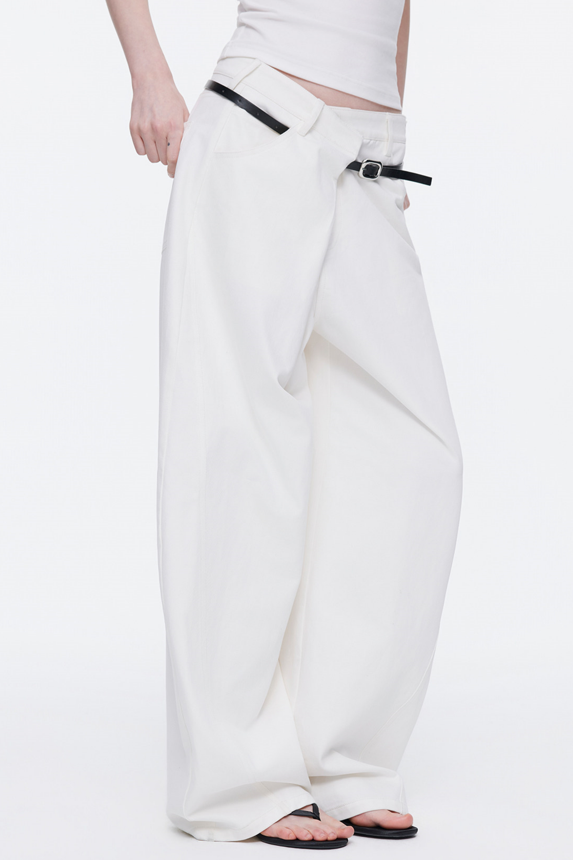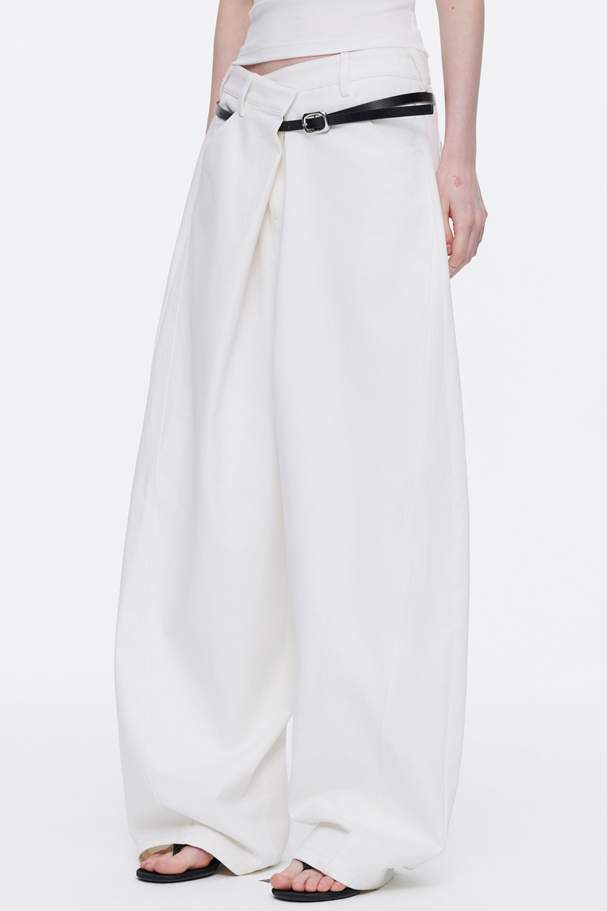 Asymmetrical Waistband Denim Pants
