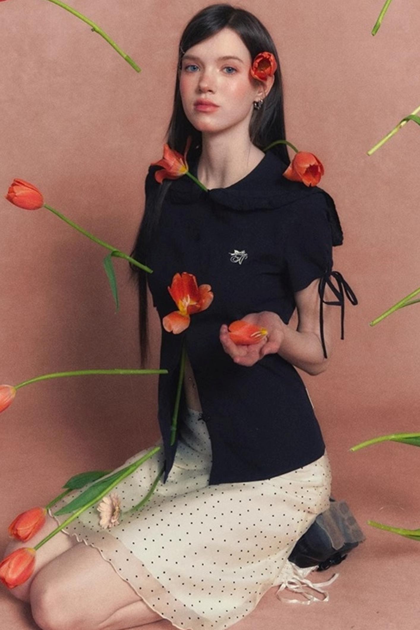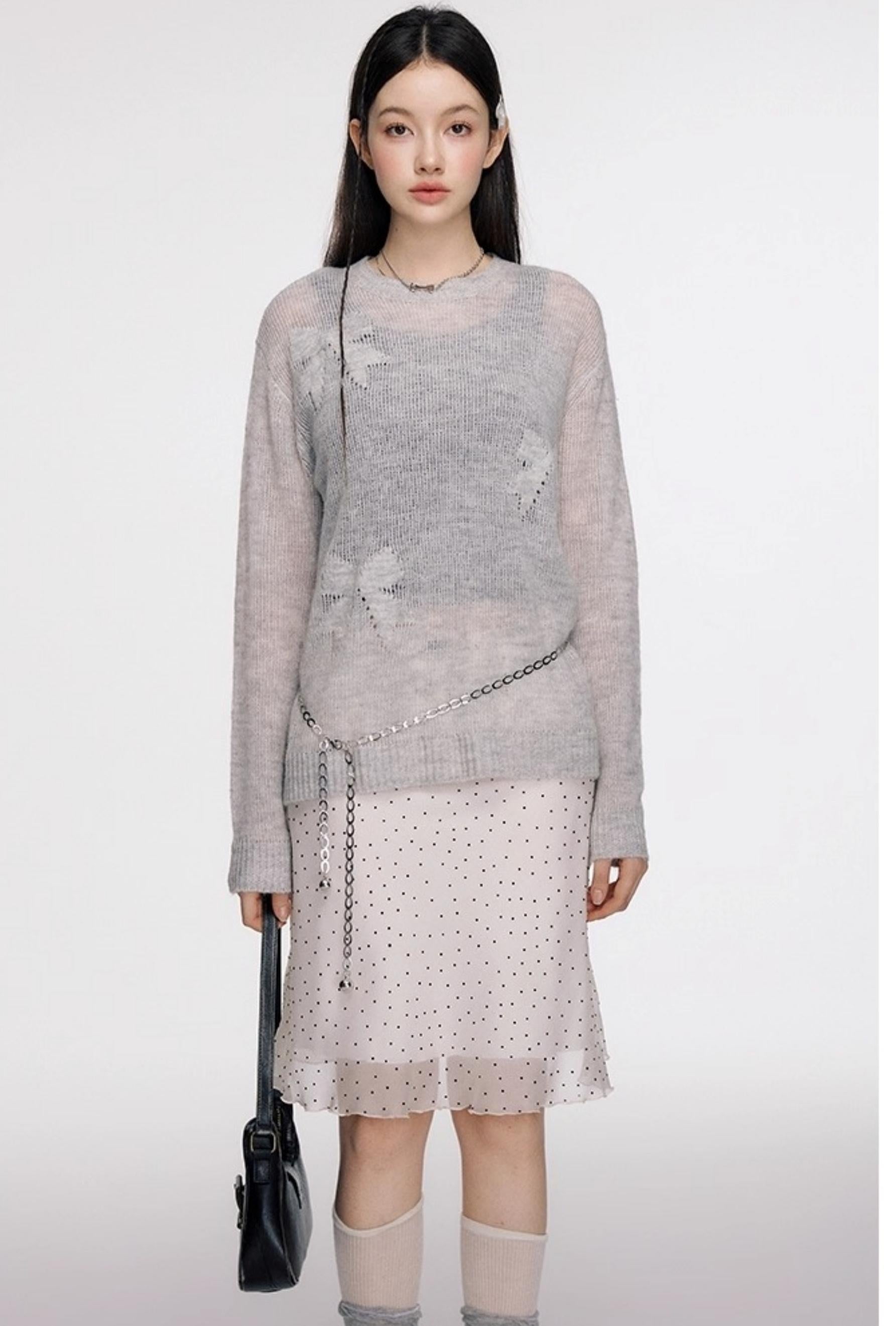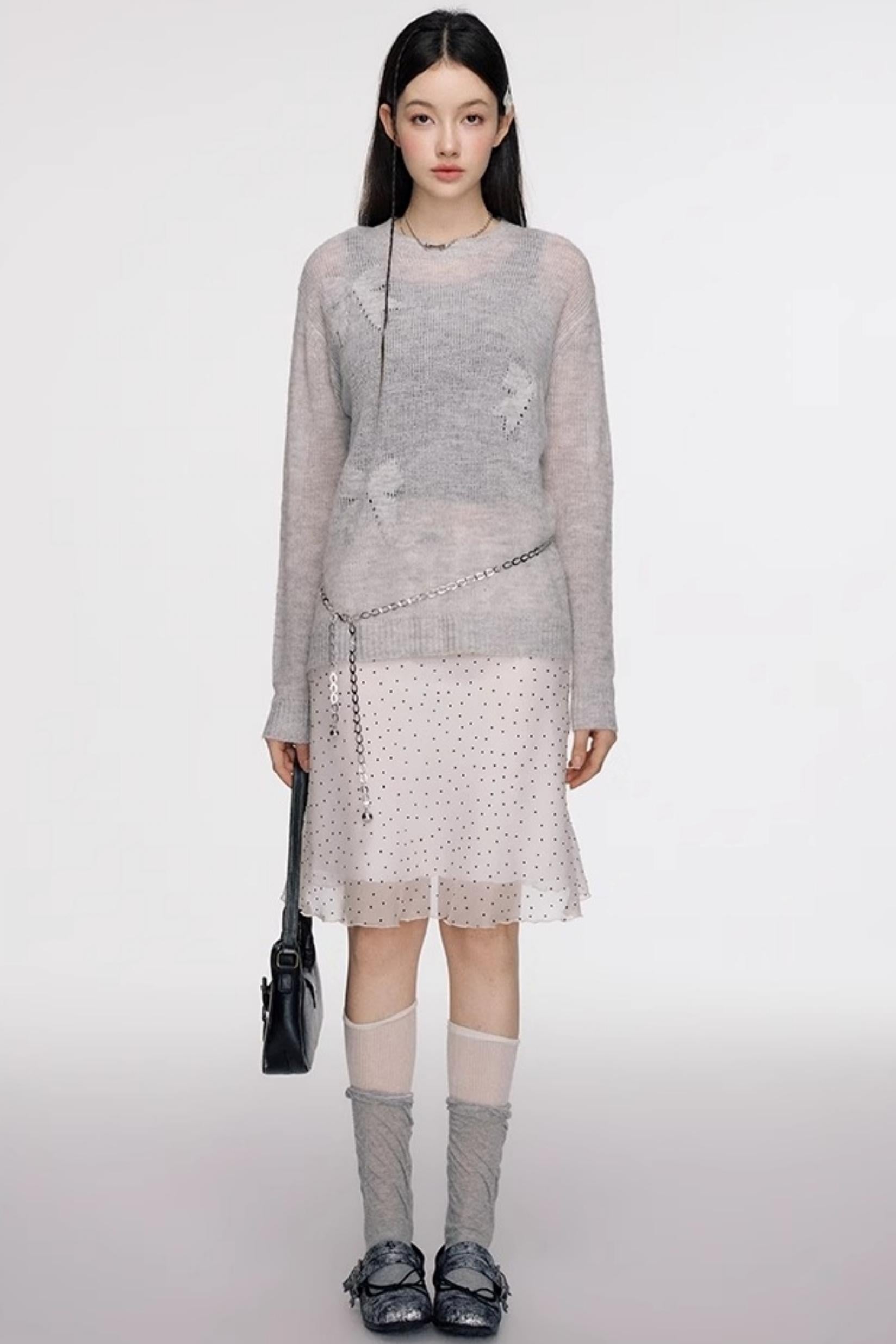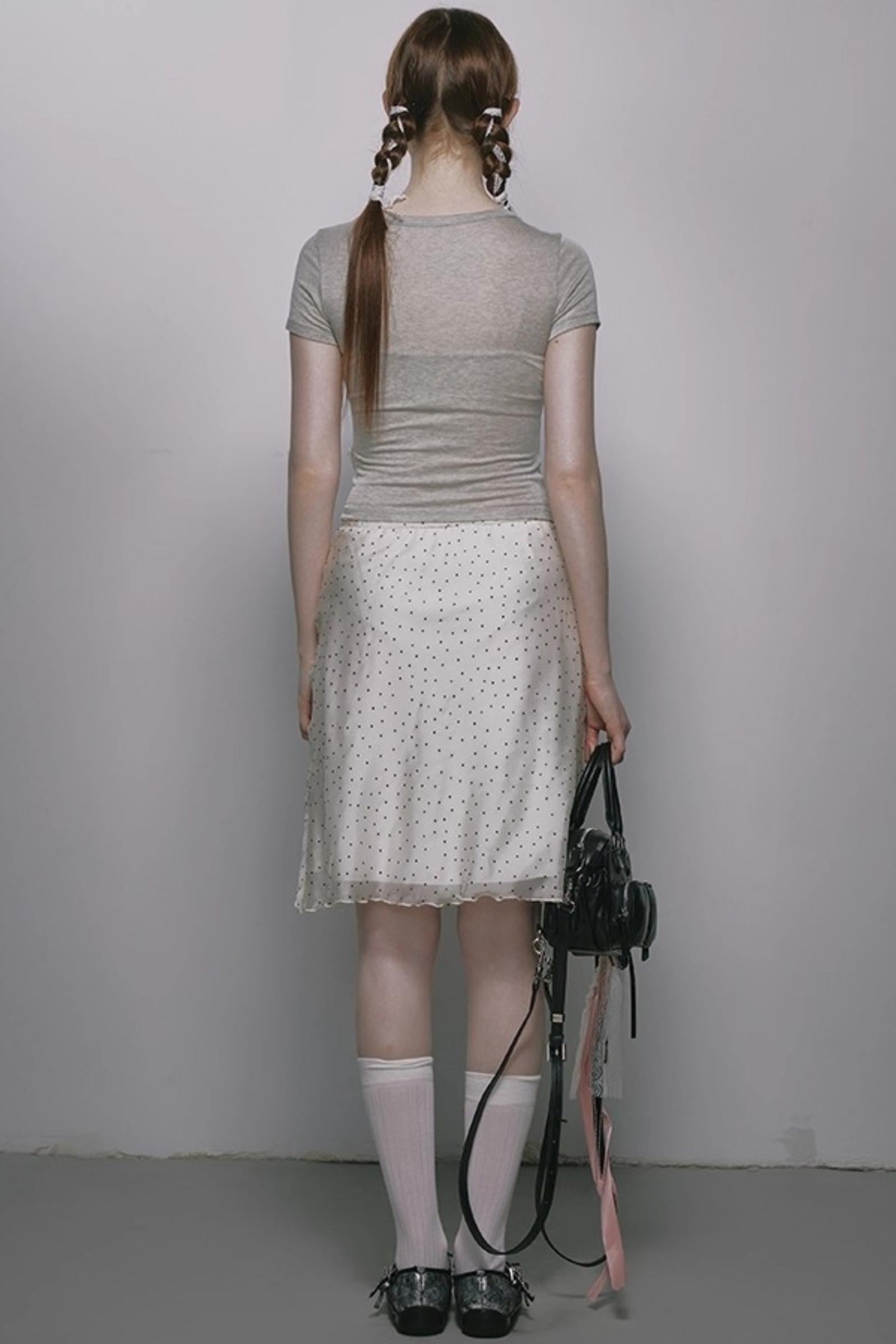 French Polka Dot A-Line Chiffon Skirt