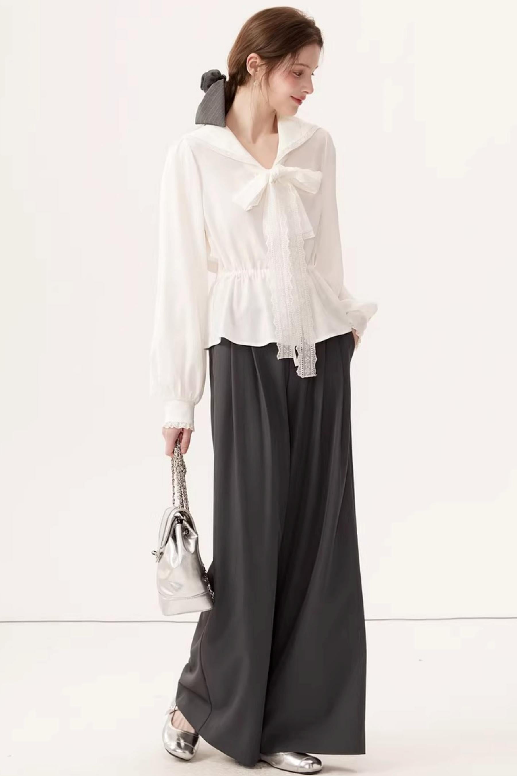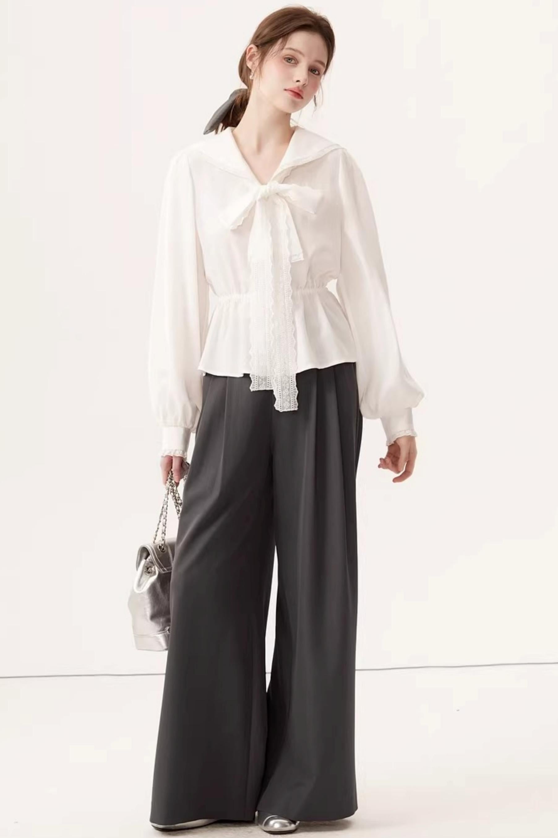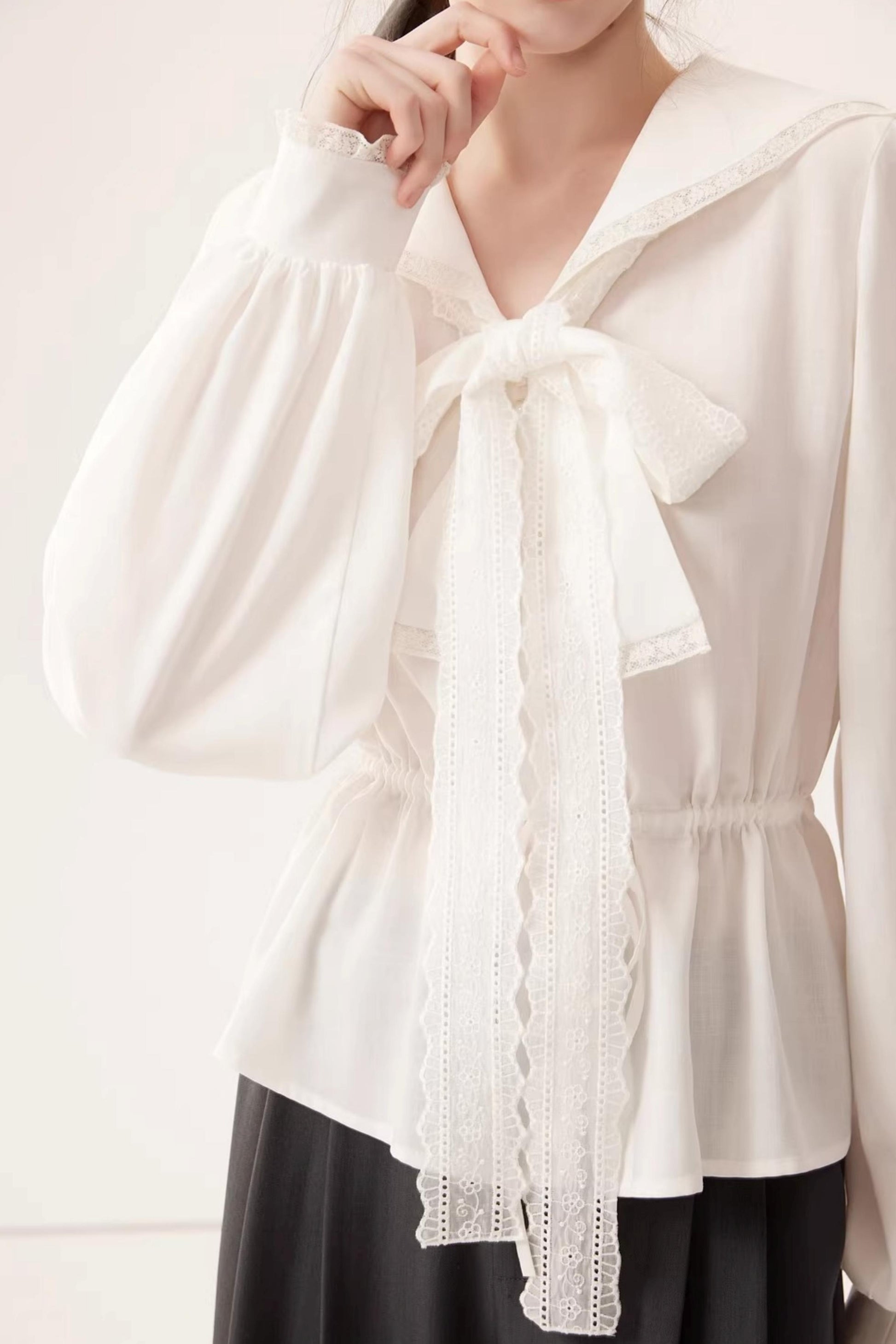 Lyocell Navy Collar Top