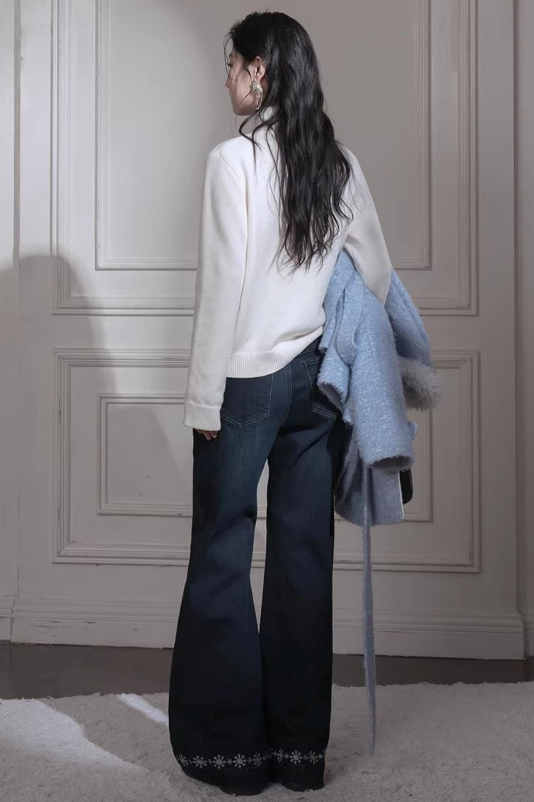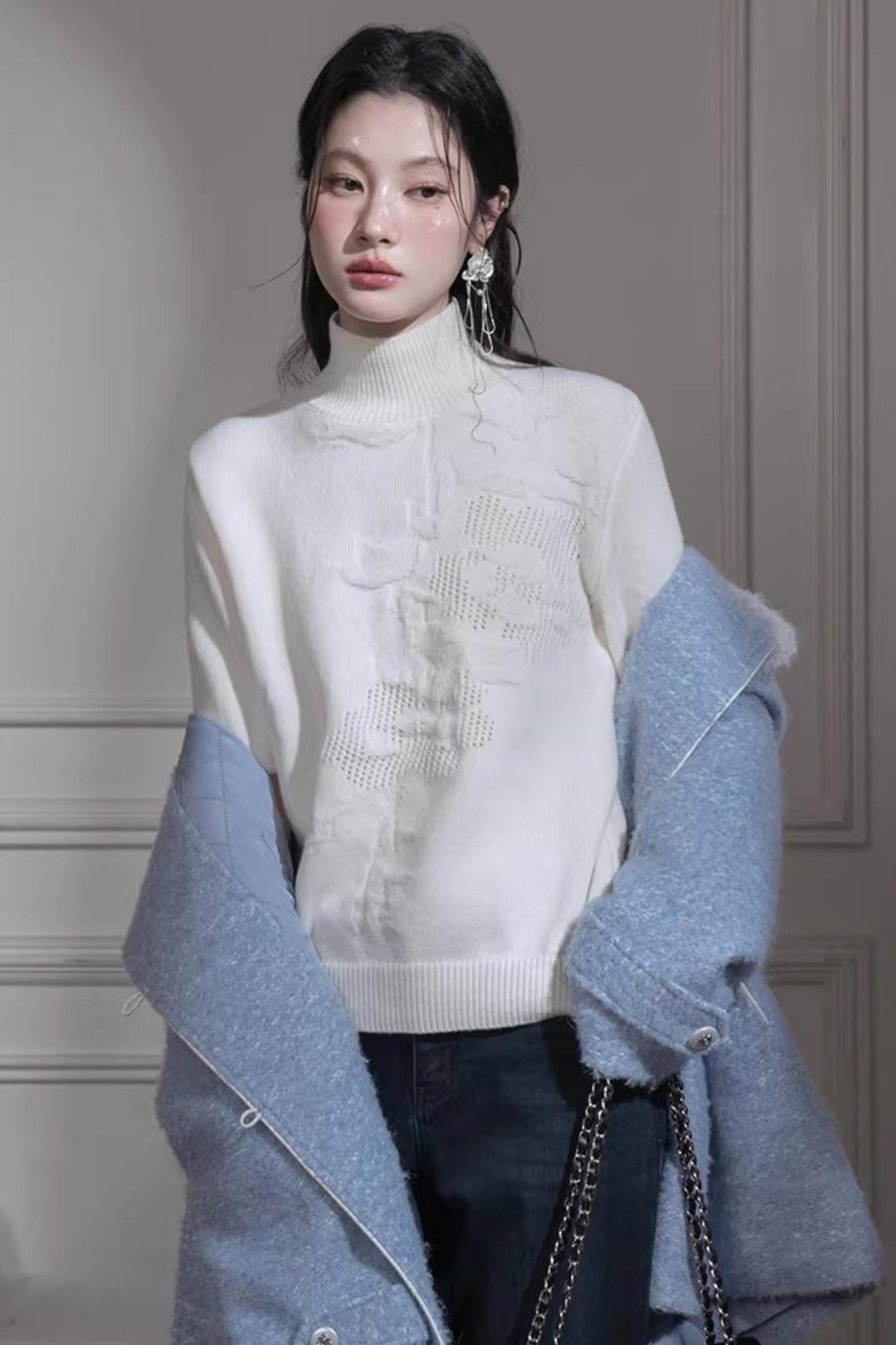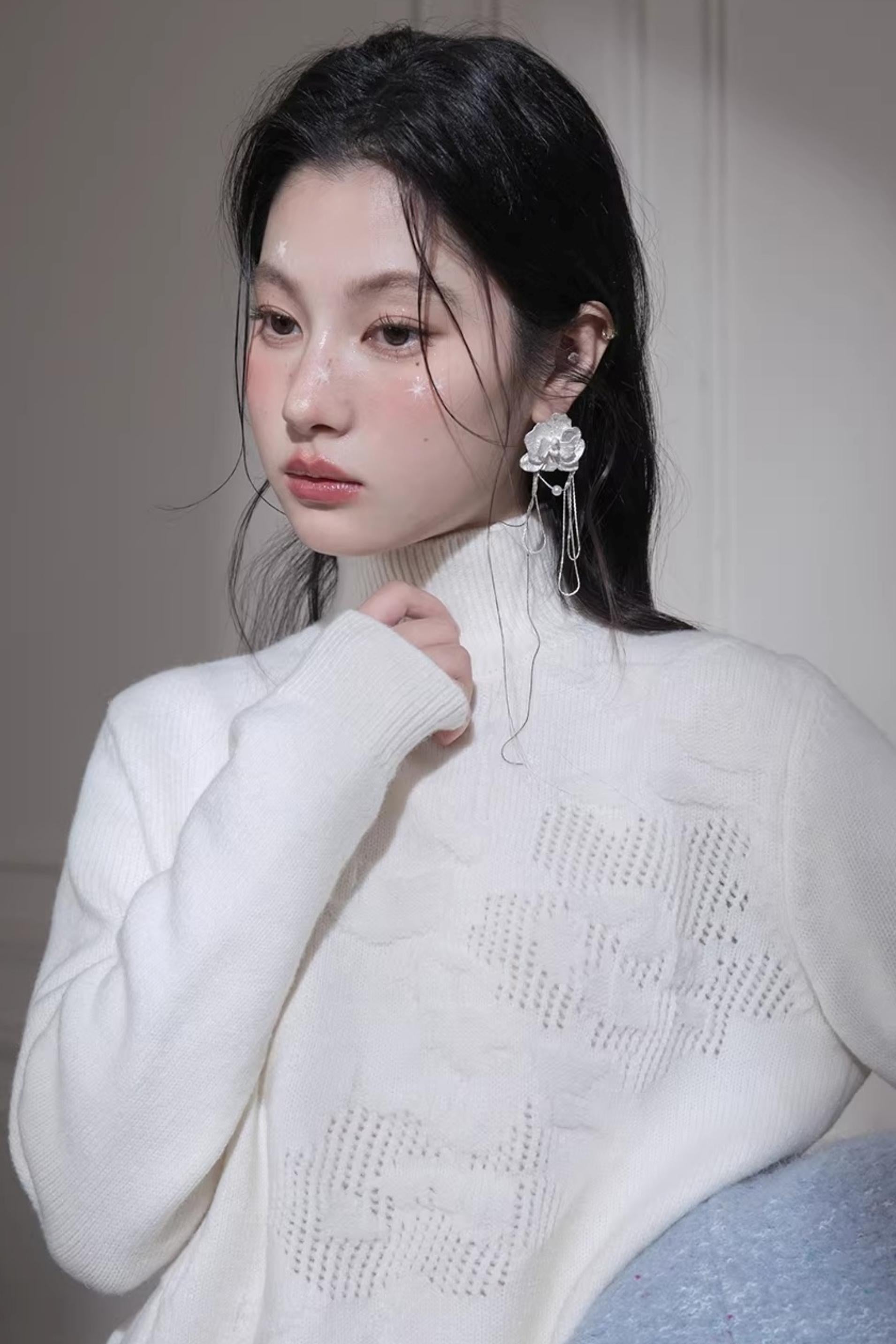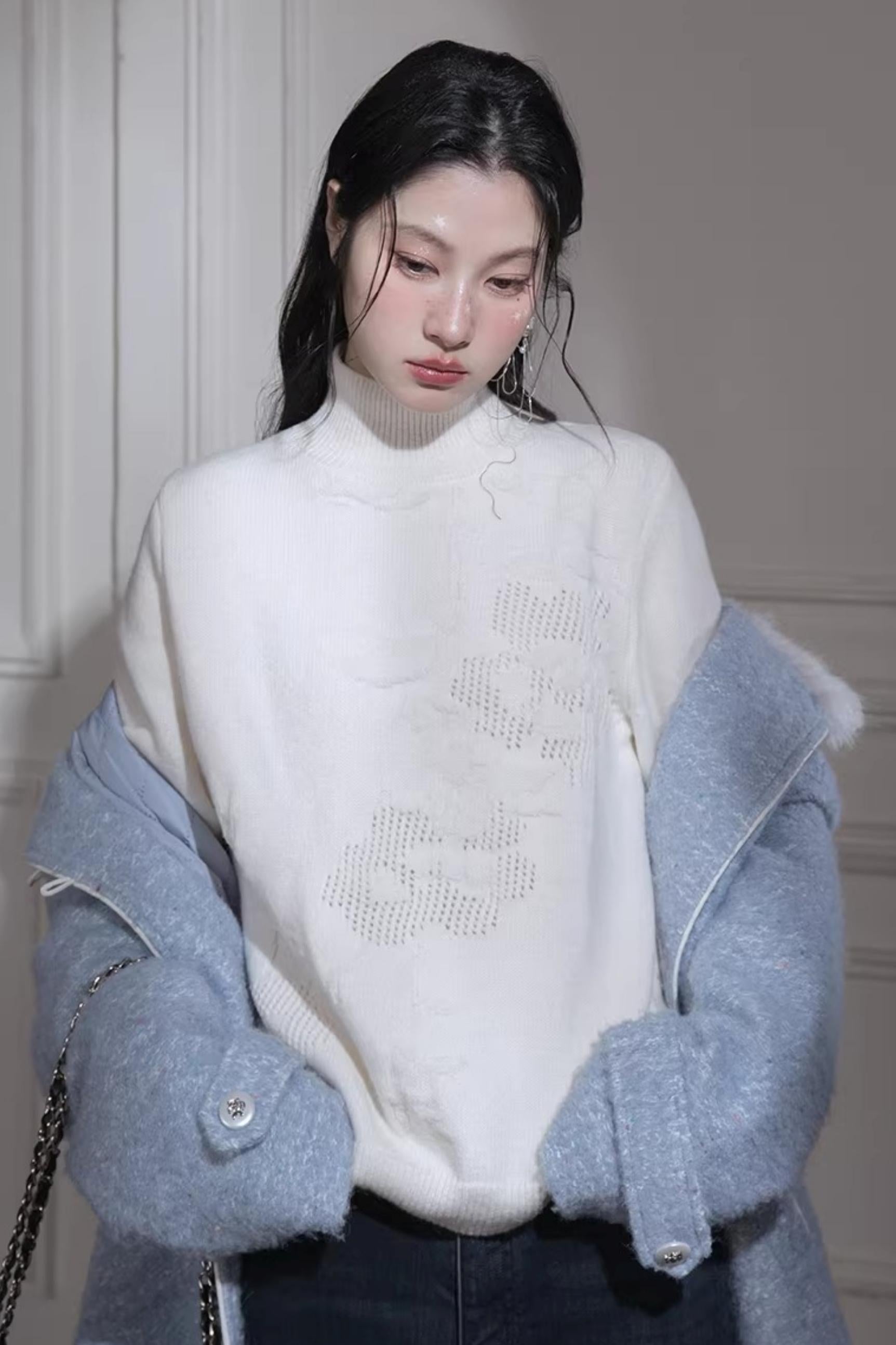 Milky White Floral Wool Sweater